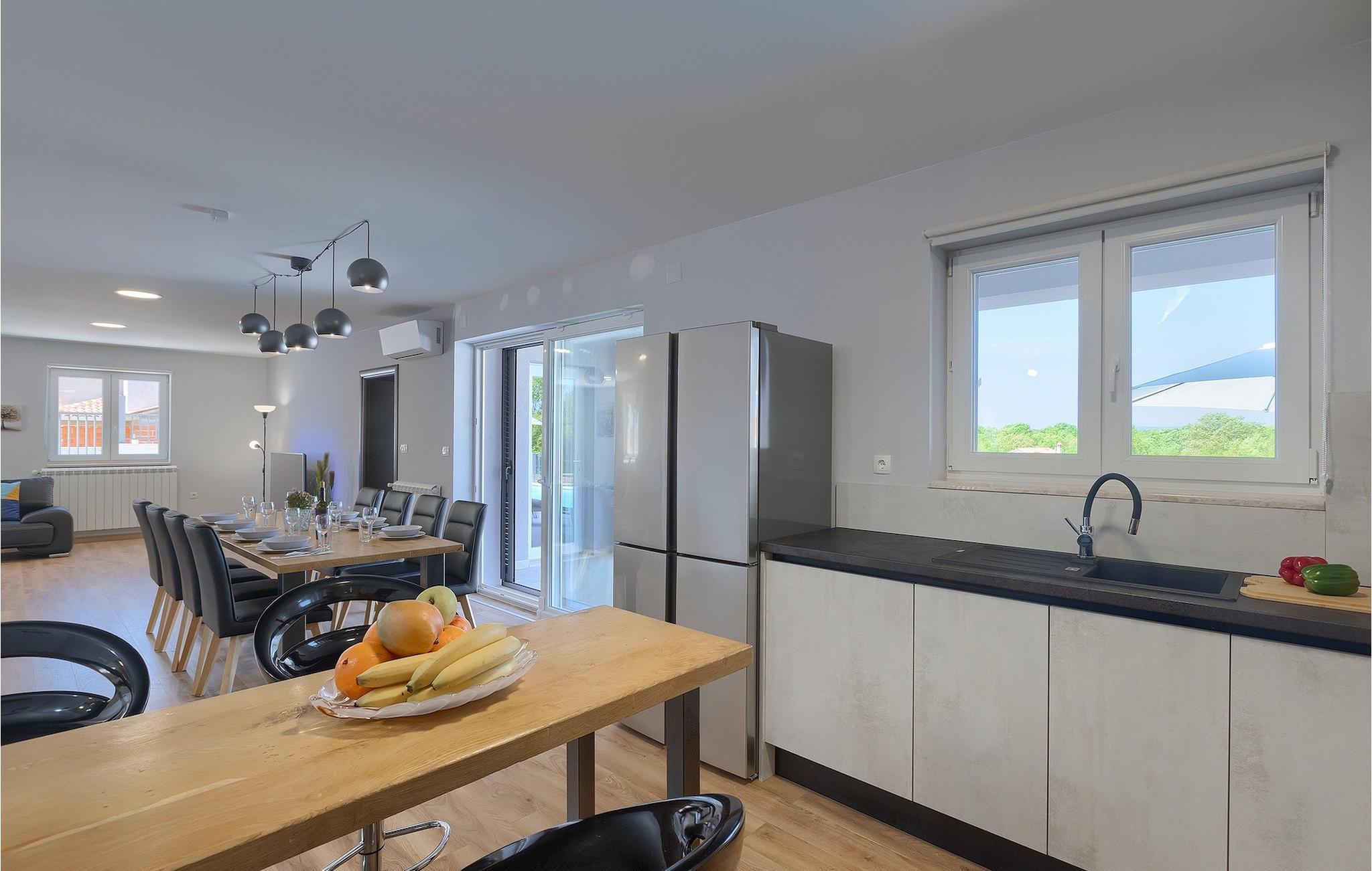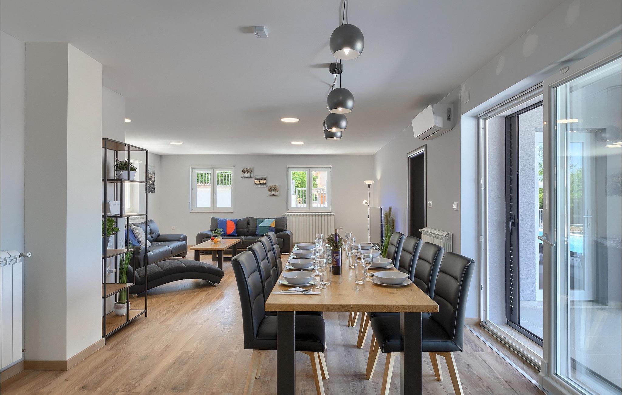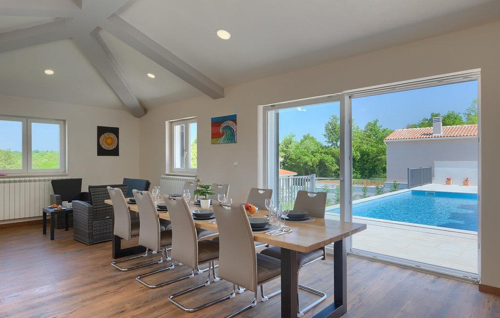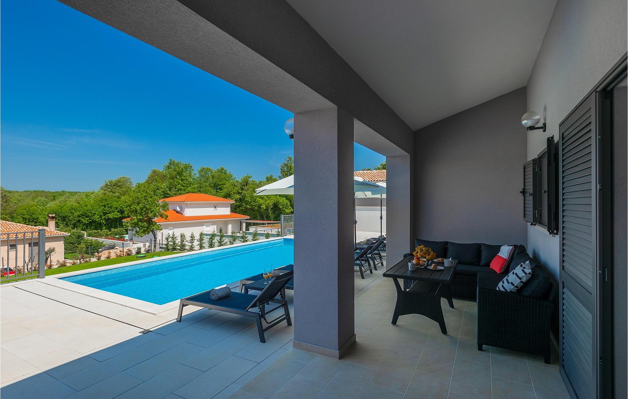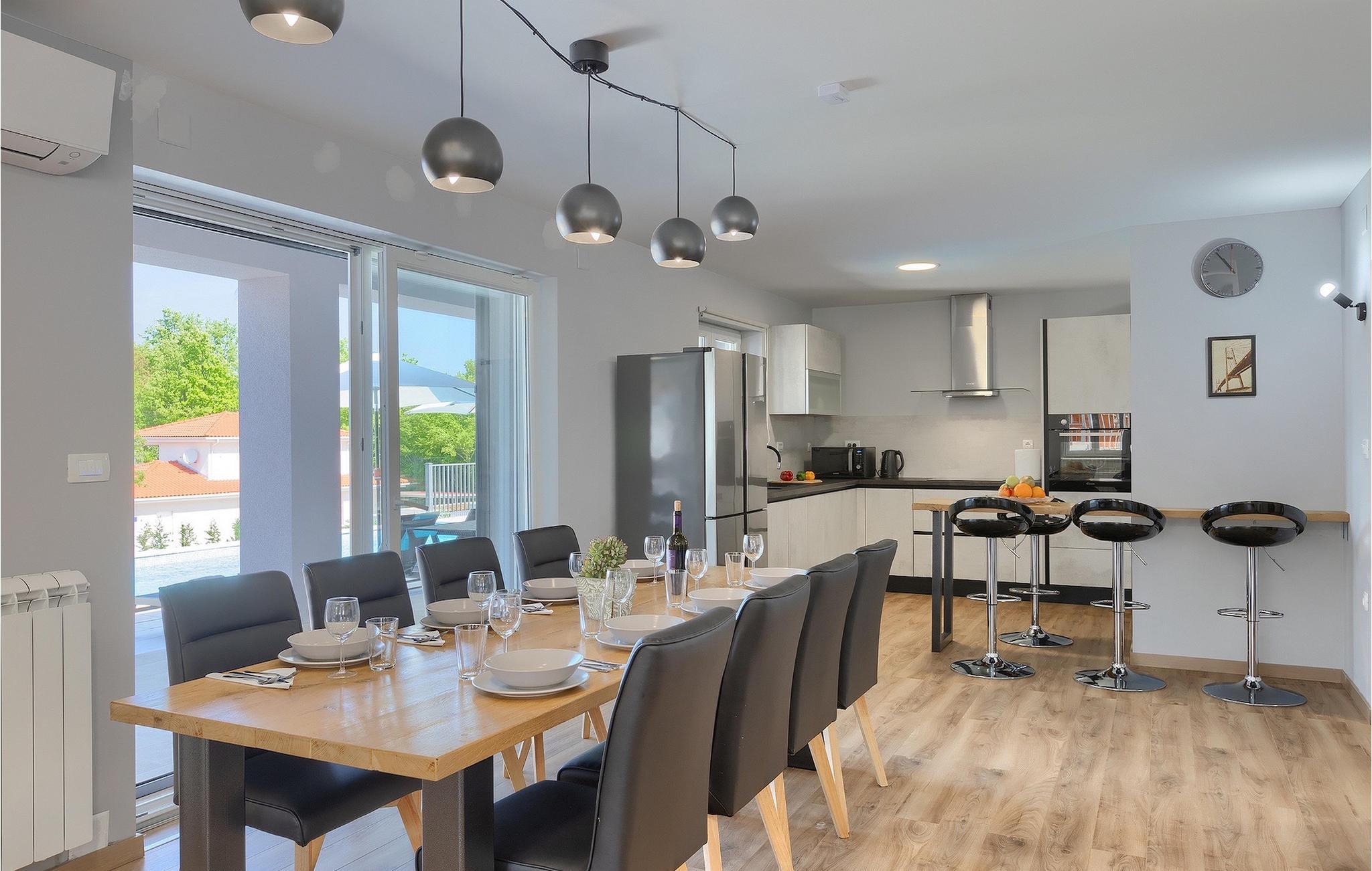 Villa Aurora Labin er beliggende i en rolig beliggenhed kun en kort køretur fra kystbyen Rabac. Denne smukke villa er omgivet af en stor have, som byder på et bordtennisbord samt en indbydende pool. Forfrisk dig selv med en dukkert i poolen eller slap af på de omkringliggende liggestole. Også til din rådighed er et separat rum med grill, spiseplads og fuldt udstyret køkken til at samles med dine kære og tilbringe uforglemmelige aftener. Benyt lejligheden til at tilberede lækre måltider ved grillen. Værelset har direkte adgang til poolområdet. Med sine 4 soveværelser kan den rumme i alt 10 personer, hvilket gør den ideel til en familieferie. Boligarealet er fordelt på to etager. På første sal er der et fuldt udstyret køkken, som er forbundet med stue og spisestue. Fra opholdsområdet er der direkte adgang til den overdækkede terrasse - det perfekte sted at få din morgenkaffe, mens du nyder udsigten over poolen. Her er også placeret to soveværelser. På anden sal er der yderligere to hyggelige soveværelser. Alle værelser har eget badeværelse, tv og aircondition. Bestil nu Villa Aurora Labin og tilbring en afslappende ferie, du fortjener!Villa Aurora Labin er beliggende i en rolig beliggenhed tæt på de små, men charmerende byer Labin og Rabac. Rabac er en lille fiskerby og en af de mest populære destinationer i Istrien. Stedet byder på mange smukke stenstrande med krystalklart hav. Udbuddet af udendørs sportsaktiviteter og vandsport er bredt. Gå langs strandpromenaden og smag istriske specialiteter i en af de mange restauranter. Labin er en lille bakkeby i den østlige del af Istrien. Denne charmerende middelalderby er kendt som en kunstnerby og byder på mange kunstgallerier langs de gamle stengader. Fra den gamle bydel i Labin kan du se Rabac og nyde havudsigten over Kvarnerbugten.