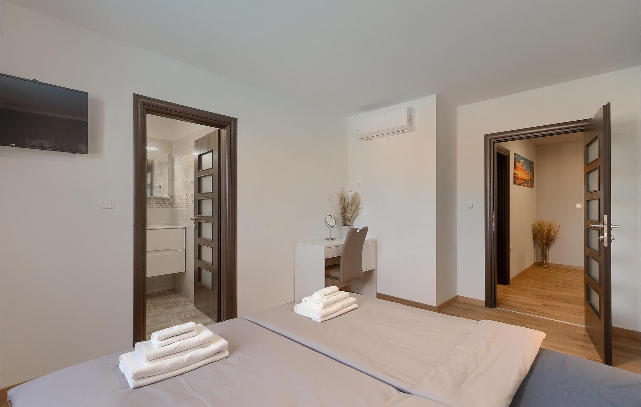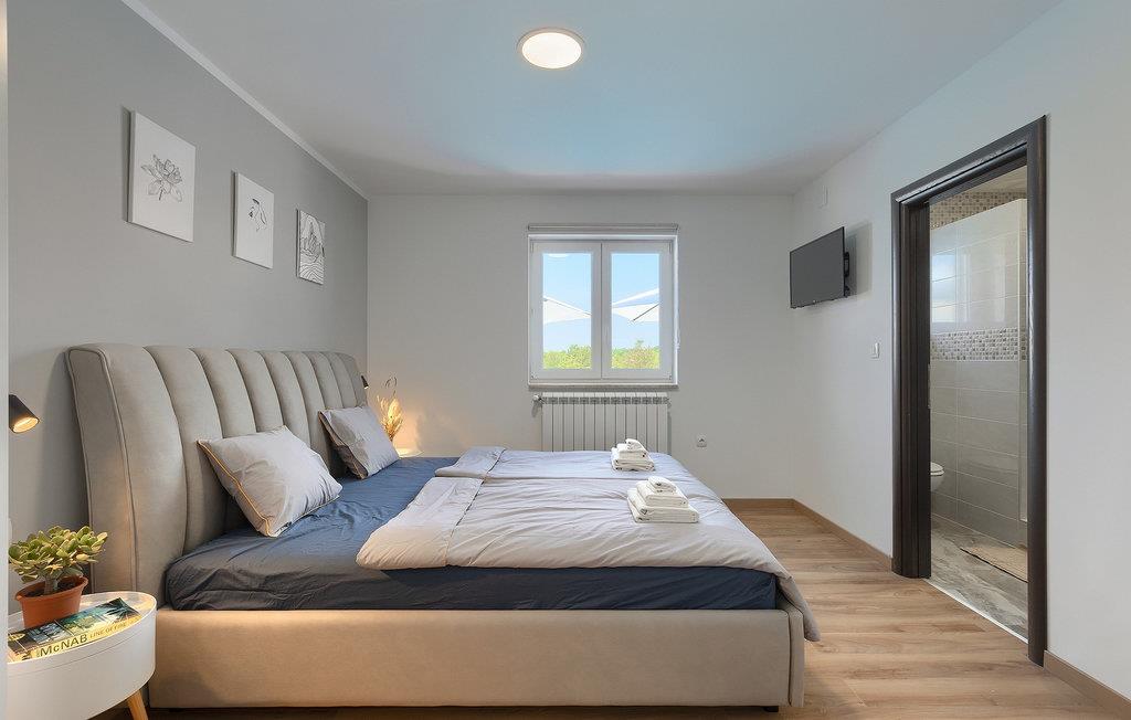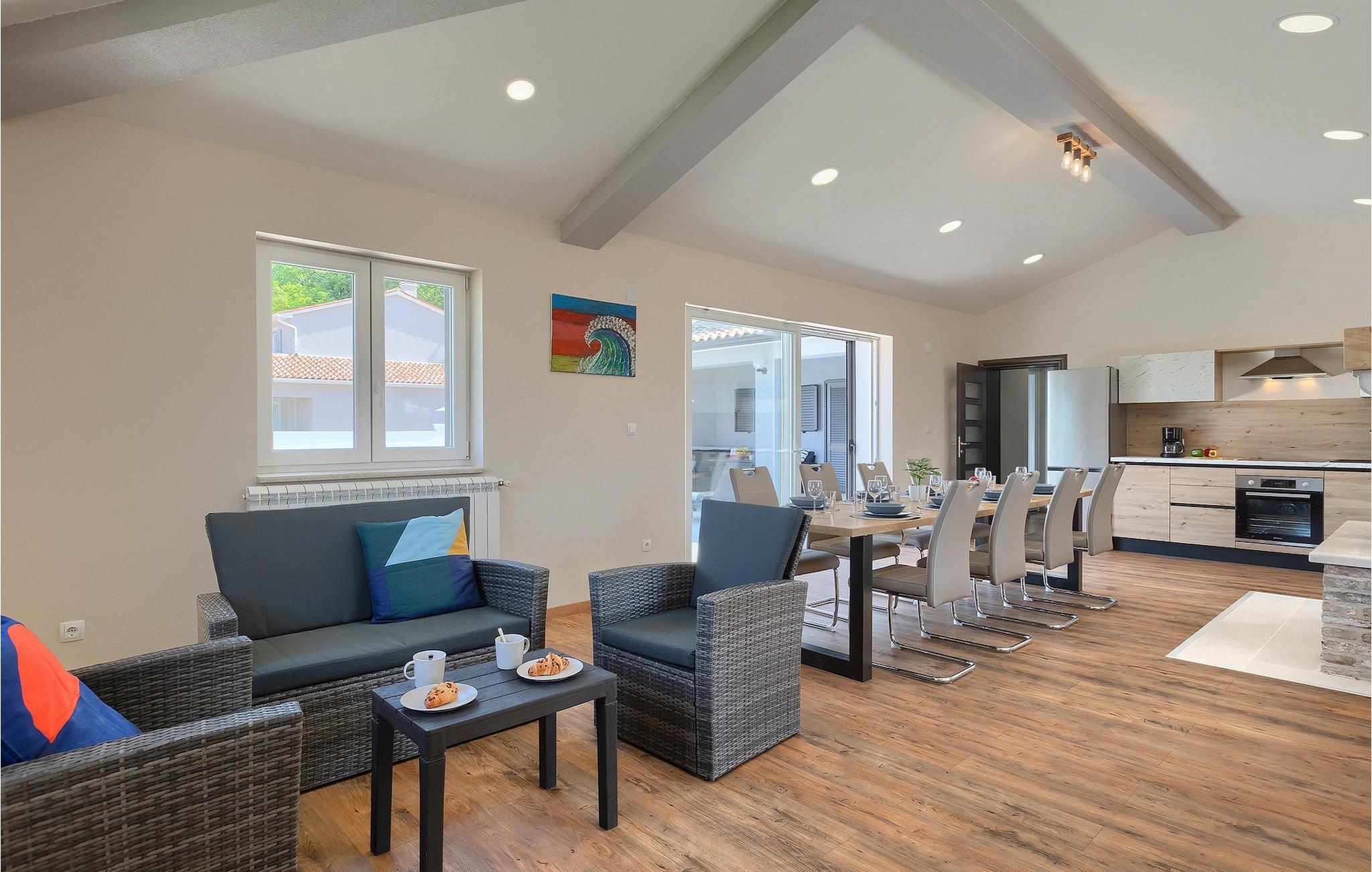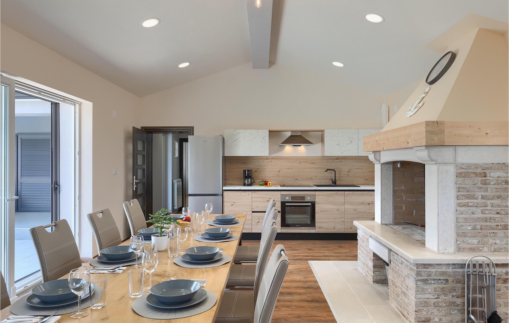 Villa Aurora Labin er beliggende i en rolig beliggenhed kun en kort køretur fra kystbyen Rabac. Denne smukke villa er omgivet af en stor have, som byder på et bordtennisbord samt en indbydende pool. Forfrisk dig selv med en dukkert i poolen eller slap af på de omkringliggende liggestole. Også til din rådighed er et separat rum med grill, spiseplads og fuldt udstyret køkken til at samles med dine kære og tilbringe uforglemmelige aftener. Benyt lejligheden til at tilberede lækre måltider ved grillen. Værelset har direkte adgang til poolområdet. Med sine 4 soveværelser kan den rumme i alt 10 personer, hvilket gør den ideel til en familieferie. Boligarealet er fordelt på to etager. På første sal er der et fuldt udstyret køkken, som er forbundet med stue og spisestue. Fra opholdsområdet er der direkte adgang til den overdækkede terrasse - det perfekte sted at få din morgenkaffe, mens du nyder udsigten over poolen. Her er også placeret to soveværelser. På anden sal er der yderligere to hyggelige soveværelser. Alle værelser har eget badeværelse, tv og aircondition. Bestil nu Villa Aurora Labin og tilbring en afslappende ferie, du fortjener!Villa Aurora Labin er beliggende i en rolig beliggenhed tæt på de små, men charmerende byer Labin og Rabac. Rabac er en lille fiskerby og en af de mest populære destinationer i Istrien. Stedet byder på mange smukke stenstrande med krystalklart hav. Udbuddet af udendørs sportsaktiviteter og vandsport er bredt. Gå langs strandpromenaden og smag istriske specialiteter i en af de mange restauranter. Labin er en lille bakkeby i den østlige del af Istrien. Denne charmerende middelalderby er kendt som en kunstnerby og byder på mange kunstgallerier langs de gamle stengader. Fra den gamle bydel i Labin kan du se Rabac og nyde havudsigten over Kvarnerbugten.