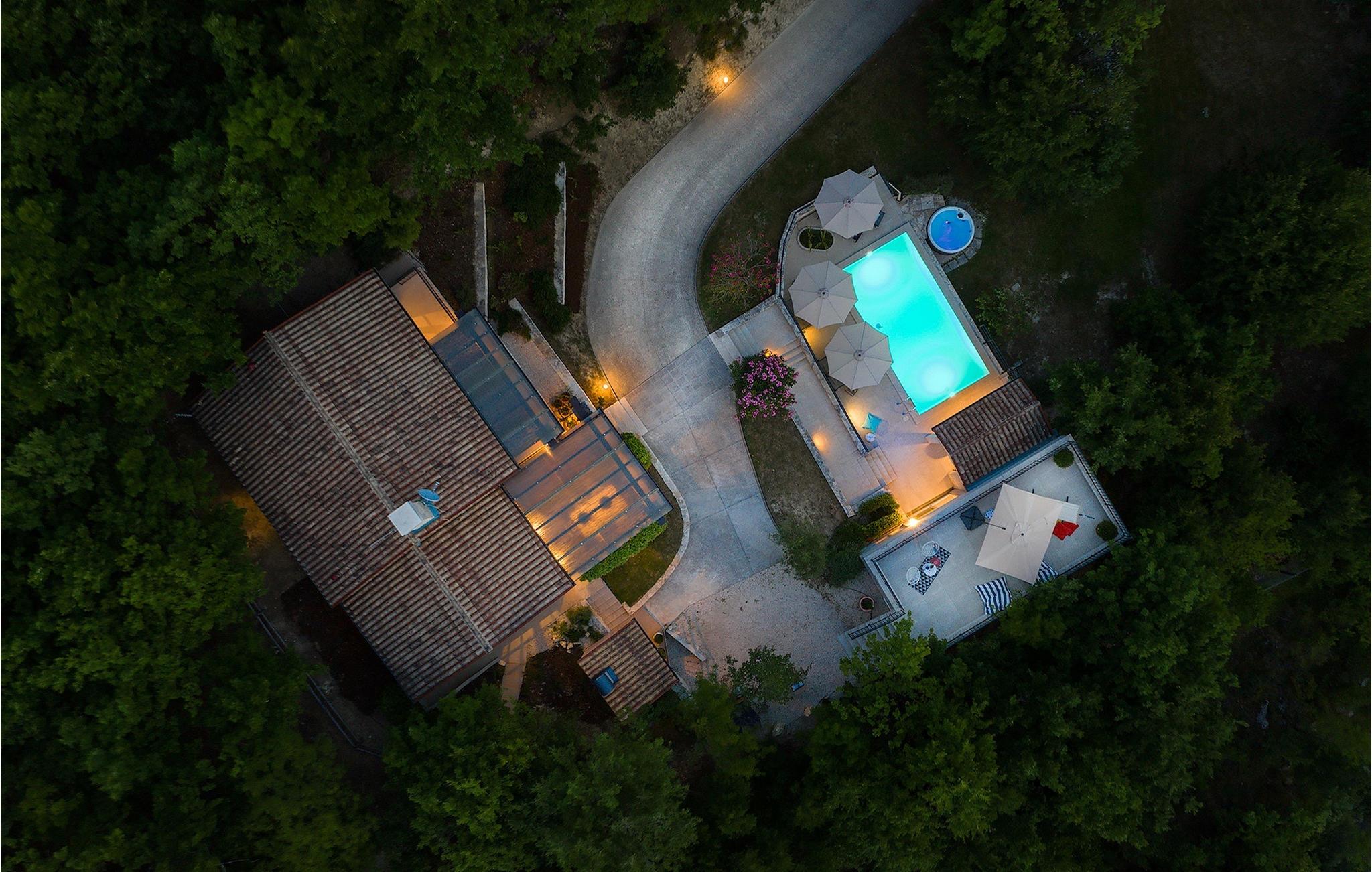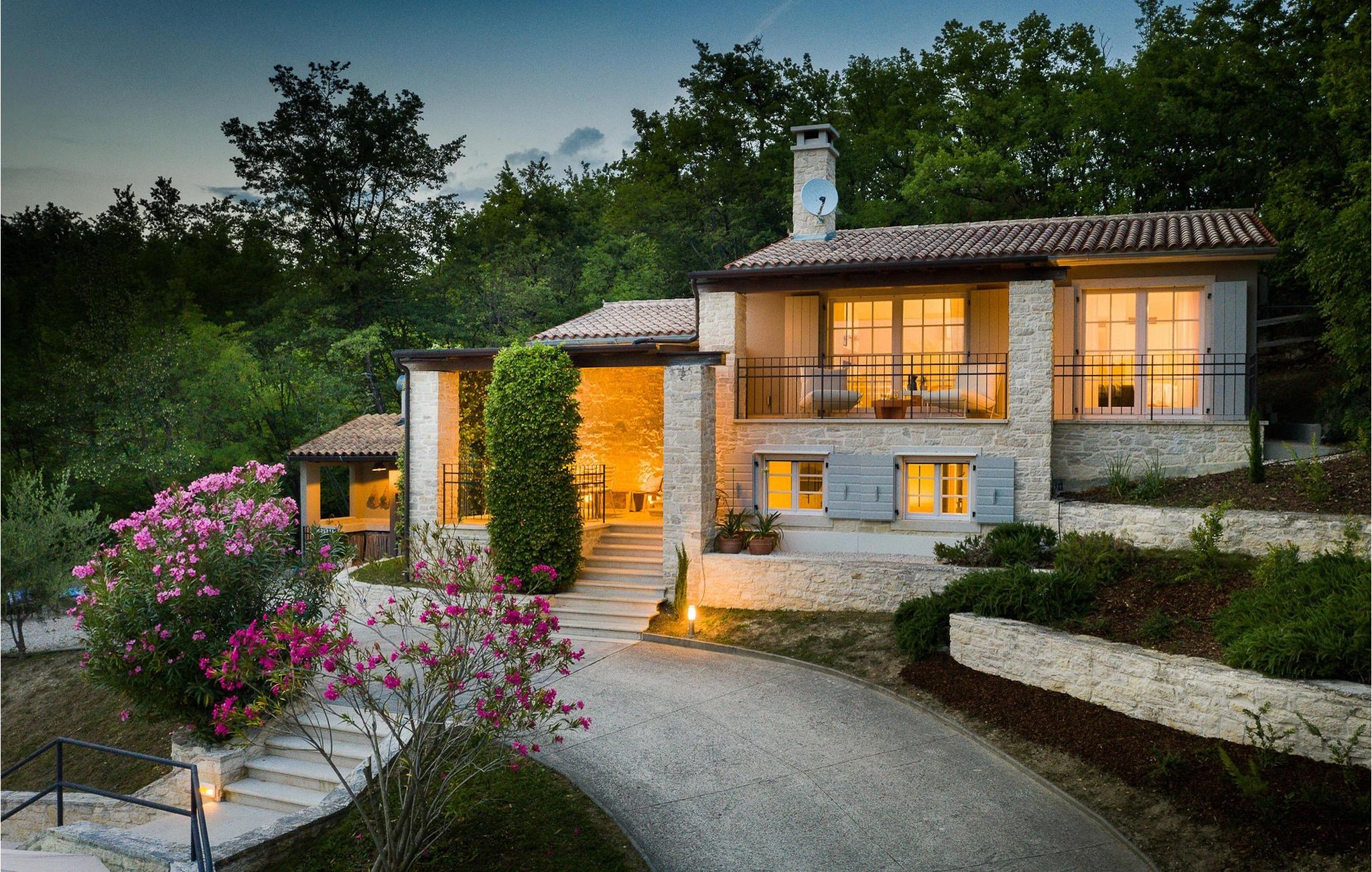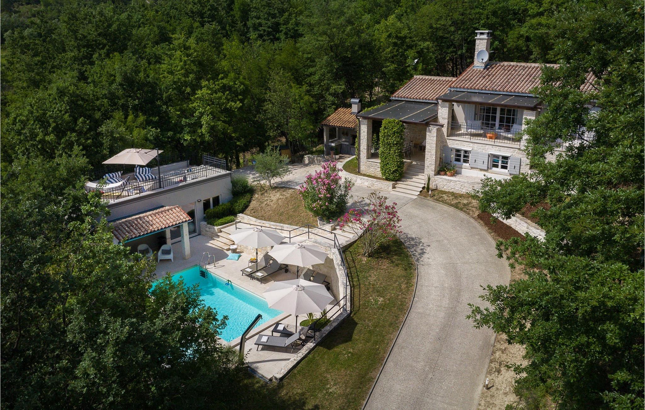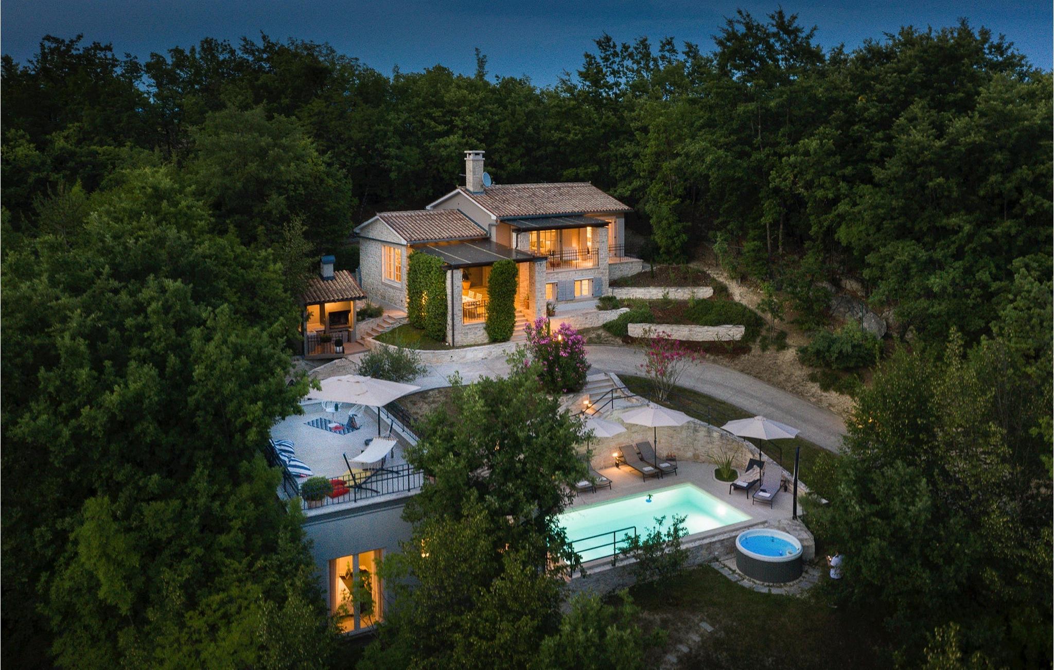 Den charmerende Villa Pican ligger i den fredelige udkant af den gamle bydel i Pican. Bygget i traditionel istrisk stil og beliggende på toppen af en bakke med smuk udsigt over bjergene, tilbyder Villa Pican en unik oplevelse af en afslappende og behagelig ferie. Det er ideelt for familier eller venner, der rejser sammen. Til din rådighed er 3 soveværelser, 3 badeværelser, stue med pejs, spiseplads, fuldt udstyret køkken og sauna. Da det er omgivet af skove, tilbyder Villa Pican fuldstændig privatliv og et stressfrit miljø. I den smukke have kan du slappe af ved siden af poolen, nyde den indbydende udendørs jacuzzi eller tilberede lækre måltider på grillen til dine familiemedlemmer eller venner. På ejendommen er der en indhegnet skov med 2 gæs og 26 hjorte som kan fodres - en unik oplevelse! Hele ejendommen er indhegnet og har privat parkering til 5 biler. Villa Pican har aircondition, Wi-Fi og tilbyder alt hvad du behøver for en perfekt ferie. Villa Pican ligger i den fredelige udkant af den gamle bydel i Pican, 25 minutters kørsel fra Rabac, et turisthotspot på den østlige del af Istrien-halvøen. Rabac-området er kendt for sine smukke strande. Villa Pican tilbyder fred og privatliv væk fra den hektiske by og turistmængden, og alligevel er velkendte istriske destinationer som Pula (60 km), Rovinj (45 km) og Porec (45 km) nemme at nå. Den smukke istriske natur og landskab med krystalklart hav, små historiske byer, vinmarker og olivenlunde kan også opdages på cykel. Gå ikke glip af at besøge de små byer i det centrale Istrien under dit ophold i Istrien. Det centrale Istrien er kendt for et landskab af små, maleriske middelalderbyer, som minder om Toscana eller Provence. Nyd de lokale specialiteter fra Istrien og Middelhavet i en af restauranterne, som ligger 5 km fra villaen.