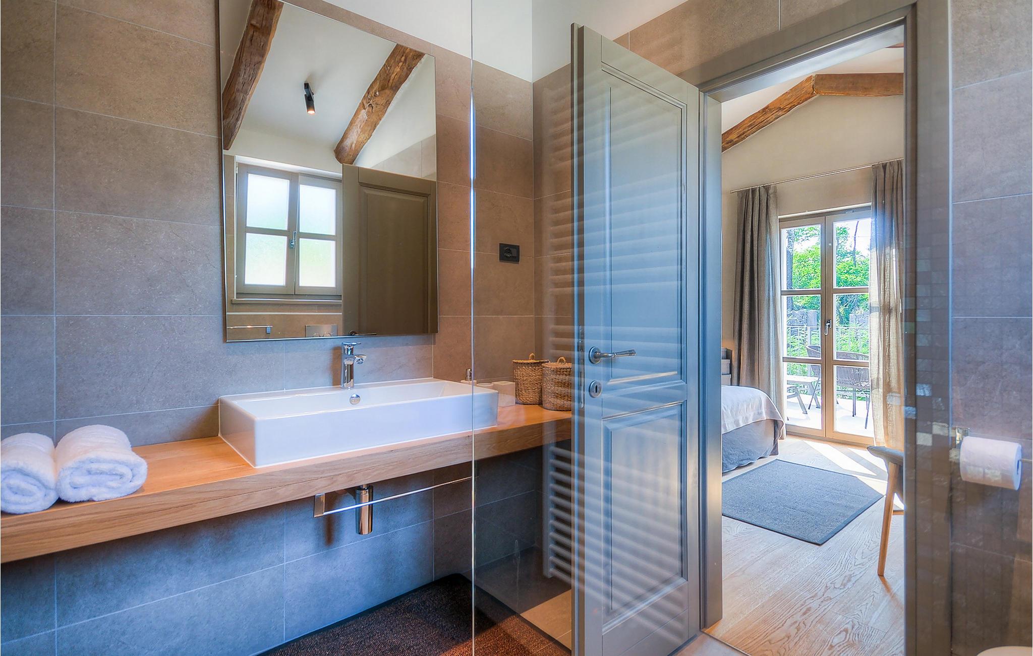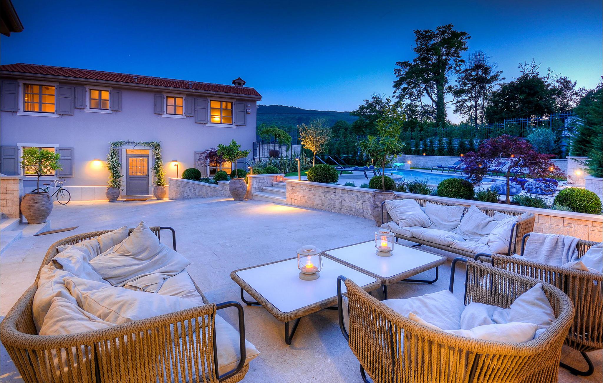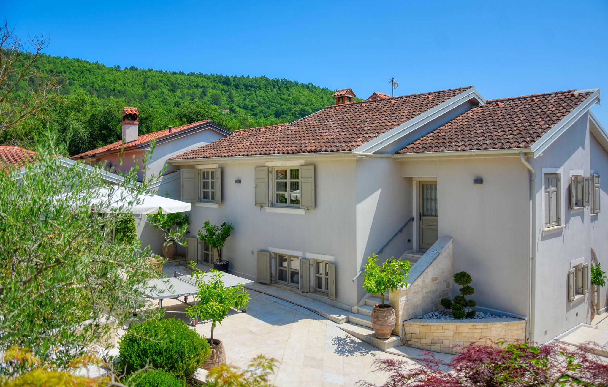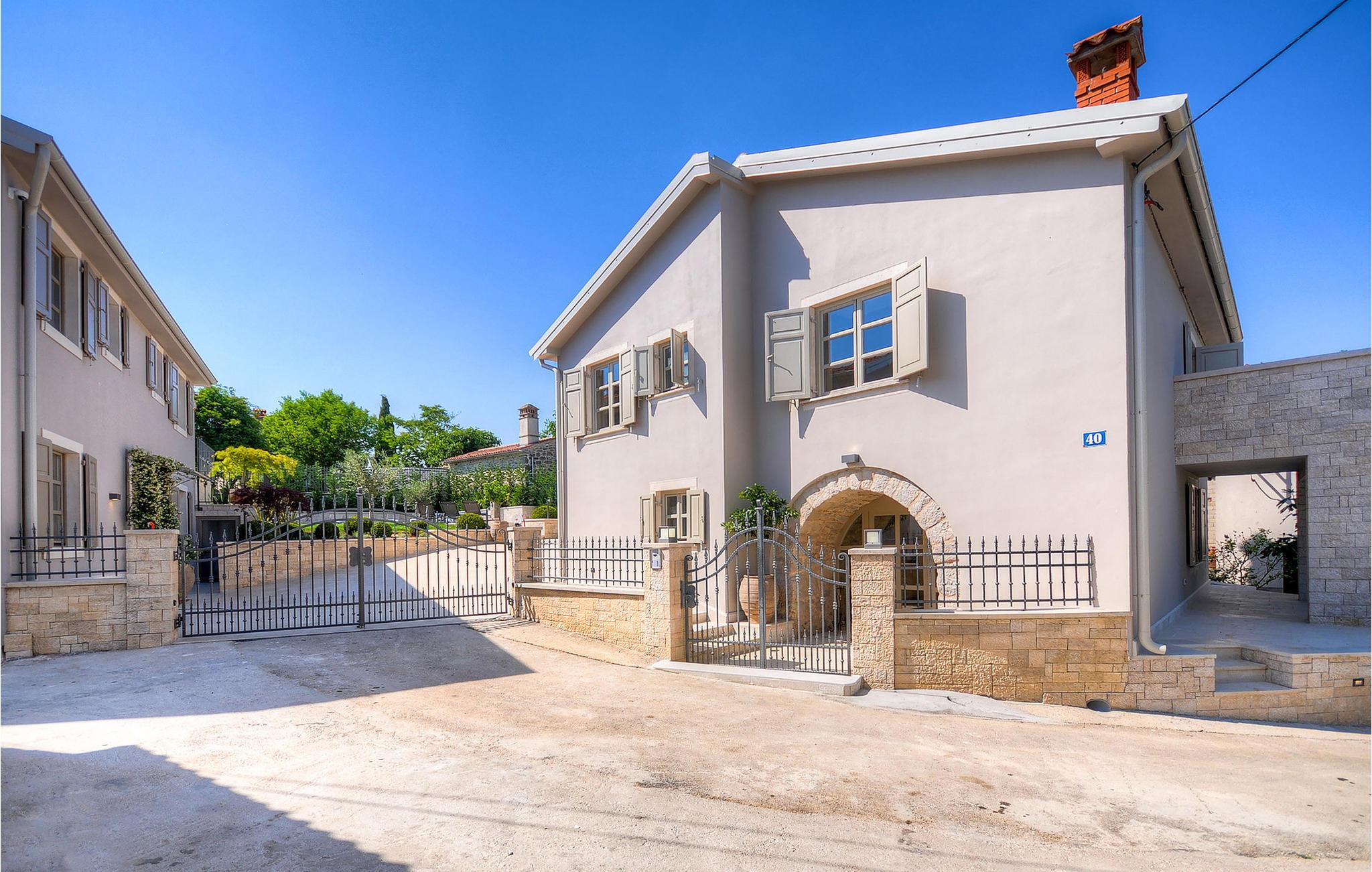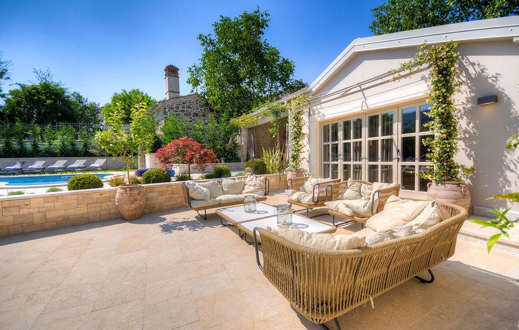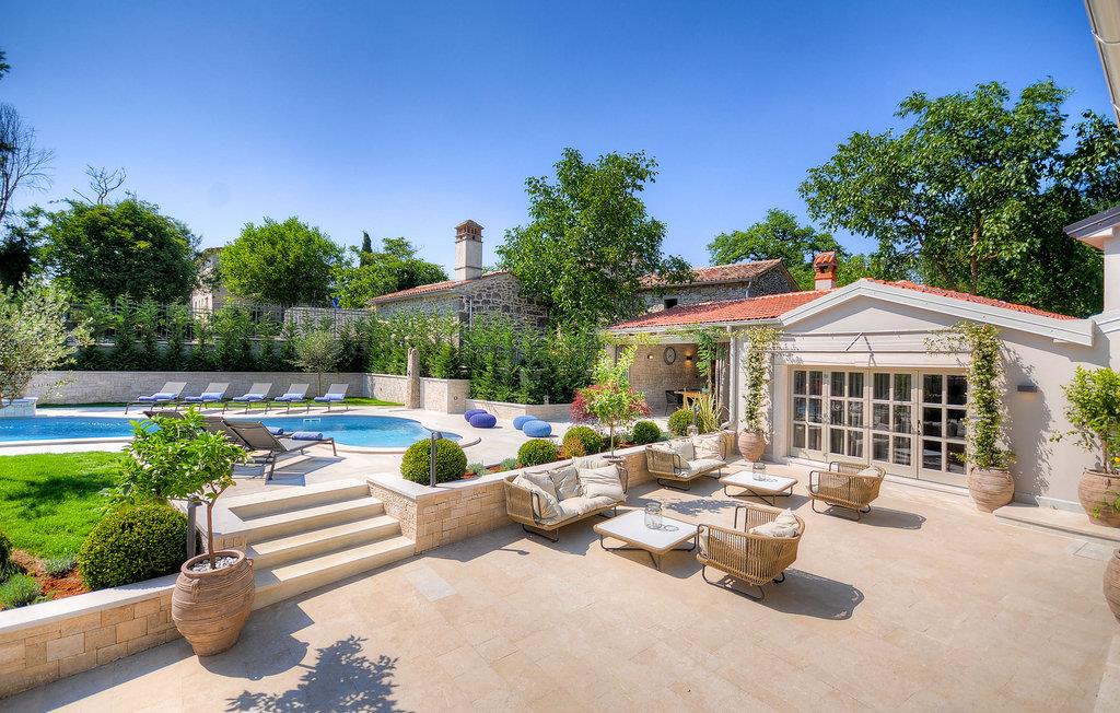 Denne ejendom er beliggende i en lille landsby i den centrale del af Istrien. Istrien er godt forbundet og har et fremragende og uoverfyldt vejsystem. Kysten med de store turistcentre er kun en kort køretur væk, ligesom Pula lufthavn. Den nærmeste strand ligger i Plomin luka omkring 16 km væk. Den Istriske halvø 'terra magica' ligger ved Adriaterhavet, som er det varme hav, der ligger tættest på Europas hjerte. Rabac, 'Kvarnerbugtens perle', ligger på den østlige del af halvøen. Mod vest er Pazin med dets fascinerende billede af middelalderborgen Pazin (Kaštel), beliggende over den 130 m lange klippe, hvor Pazincica-floden løber ud i Pazin-graven, inspirerede den berømte franske forfatter Jules Verne som ramme for en del af hans roman "Mathias Sandorf", udgivet i 1885. I dag er der en Jules Verne klub i Pazin, og hvert år i slutningen af juni arrangeres Jules Vernes Days.