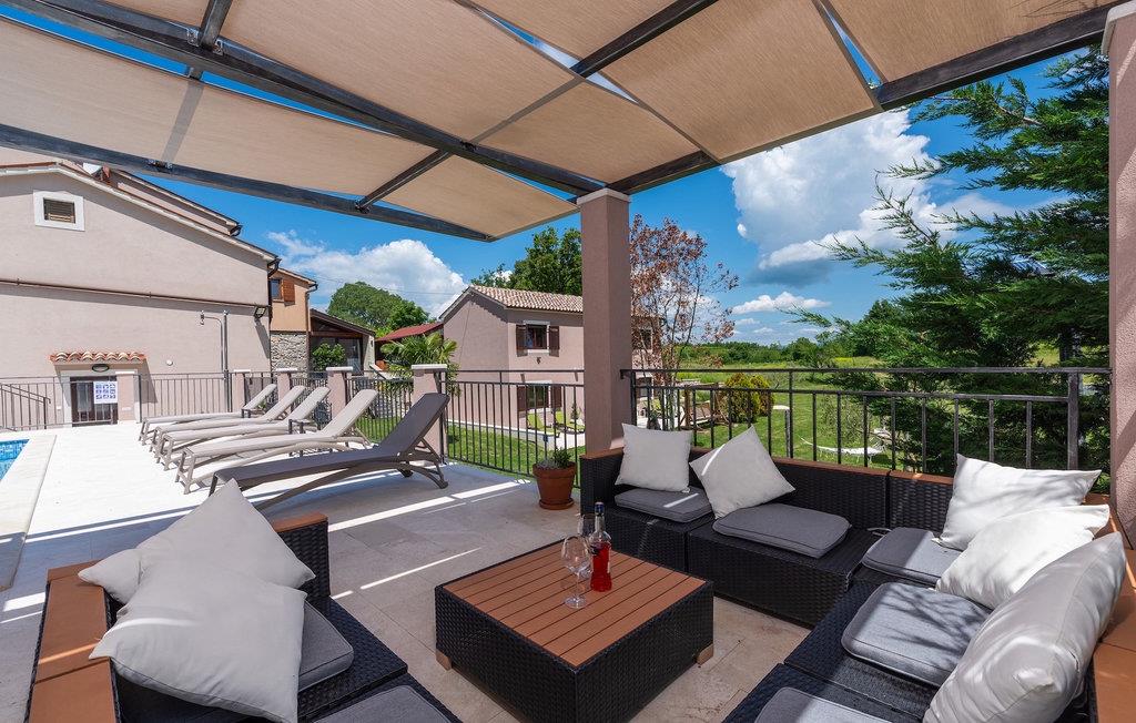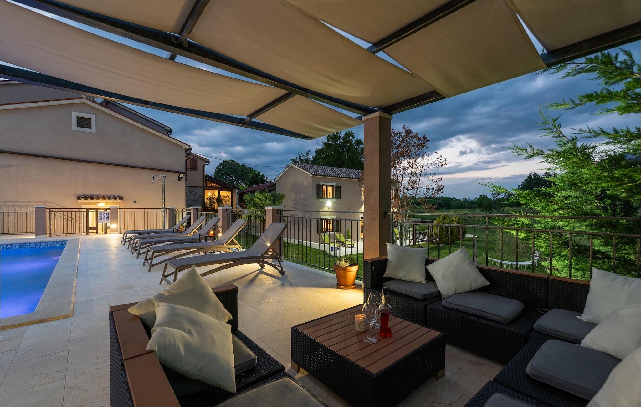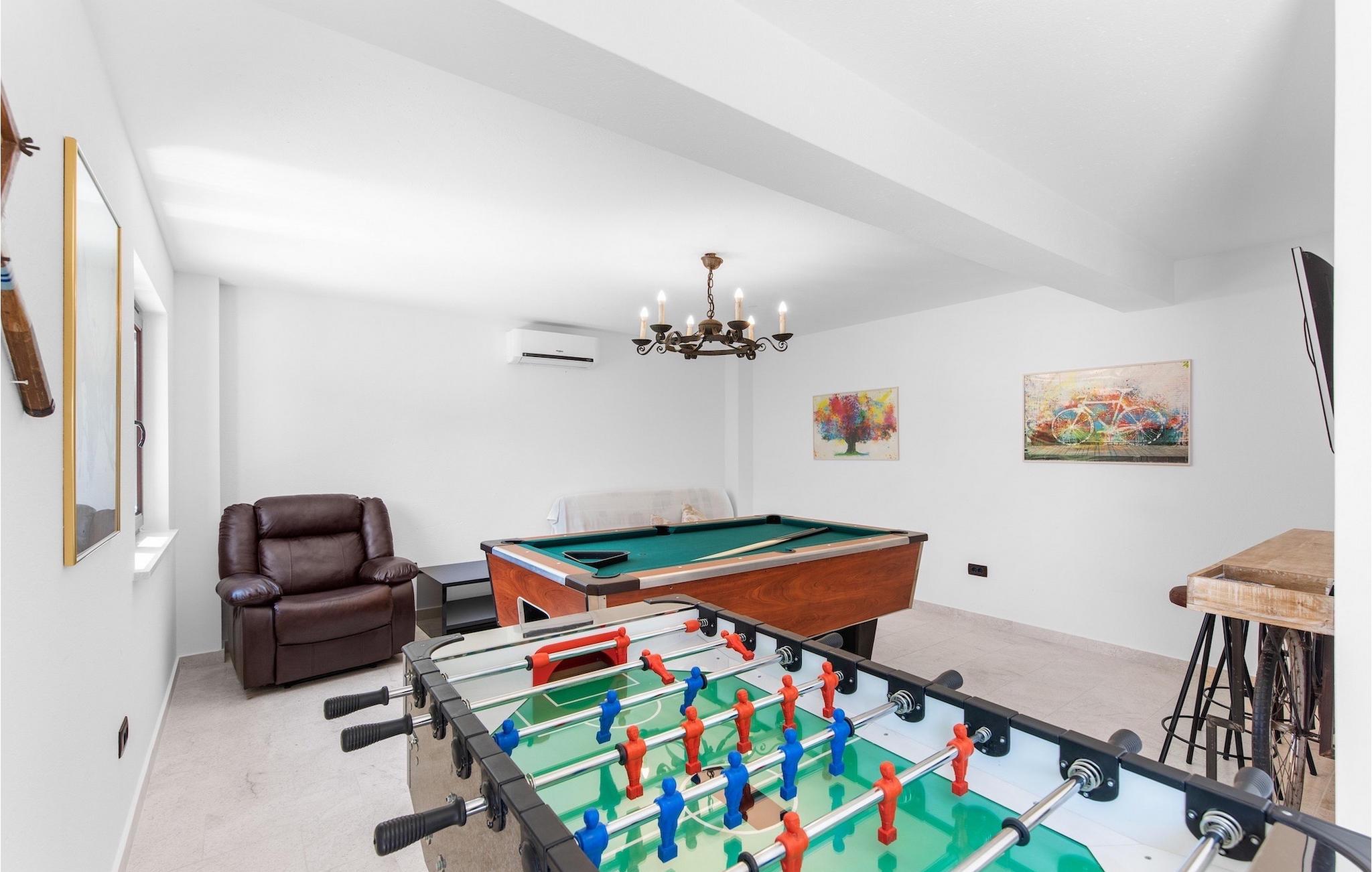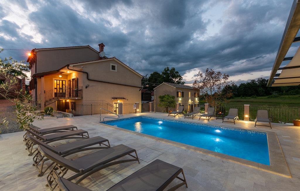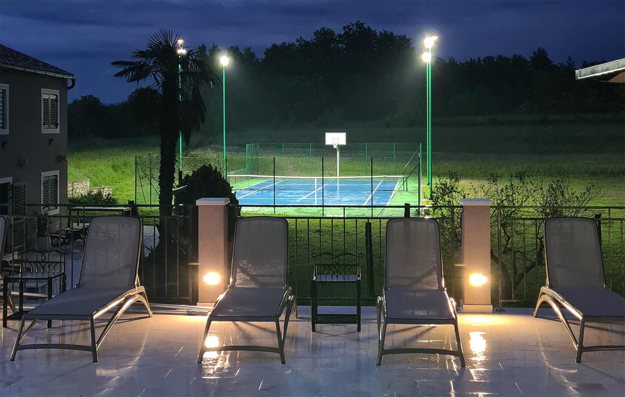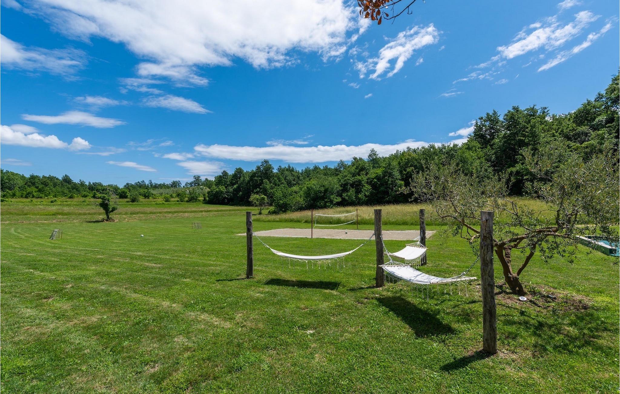 Charmerende Villa Vesna&Branka i hjertet af Istrien er et ideelt sted for din ferie. Det er omgivet af natur, beliggende på en stor grund med privat pool og forskellige aktiviteter for yderligere sjov. Villaen kan rumme op til 14 personer i et behageligt miljø. Det består af 6 soveværelser og ensuite badeværelser, der tilbyder komplet komfort for sine gæster. Villaen består faktisk af to bygninger, alle beliggende på en stor grund på 4500m2. I "hovedhuset" er der 4 soveværelser og i det "mindre hus" to soveværelser. Trapper fører fra haven til den dejlige lille terrasse, hvorfra du kommer ind i hovedstuen og fuldt udstyret køkken. To soveværelser ligger på øverste etage, mens 2 er placeret i nederste etage. Den nederste etage har en separat indgang og består af de 2 soveværelser og en ekstra stue med tekøkken, der tilbyder ekstra komfort og privatliv for gæsterne. Det "mindre hus" består af 2 etager. Stueetagen er faktisk et spillerum. Der vil du finde et poolbord, bordfodbold, PlayStation-konsol og teleskop. Et separat toilet er her. På øverste etage er der 2 stilfuldt indrettede soveværelser, hver naturligvis med eget badeværelse. Den smukke gårdhave er omgivet af træer og masser af grønt og byder på mange aktiviteter. Til din rådighed er bordtennis, mål til minifodbold og en hængende bowlingbane. En særlig funktion er en professionel beachvolleybane i rigtig størrelse, og I finder også en privat tennis- og basketballbane her!