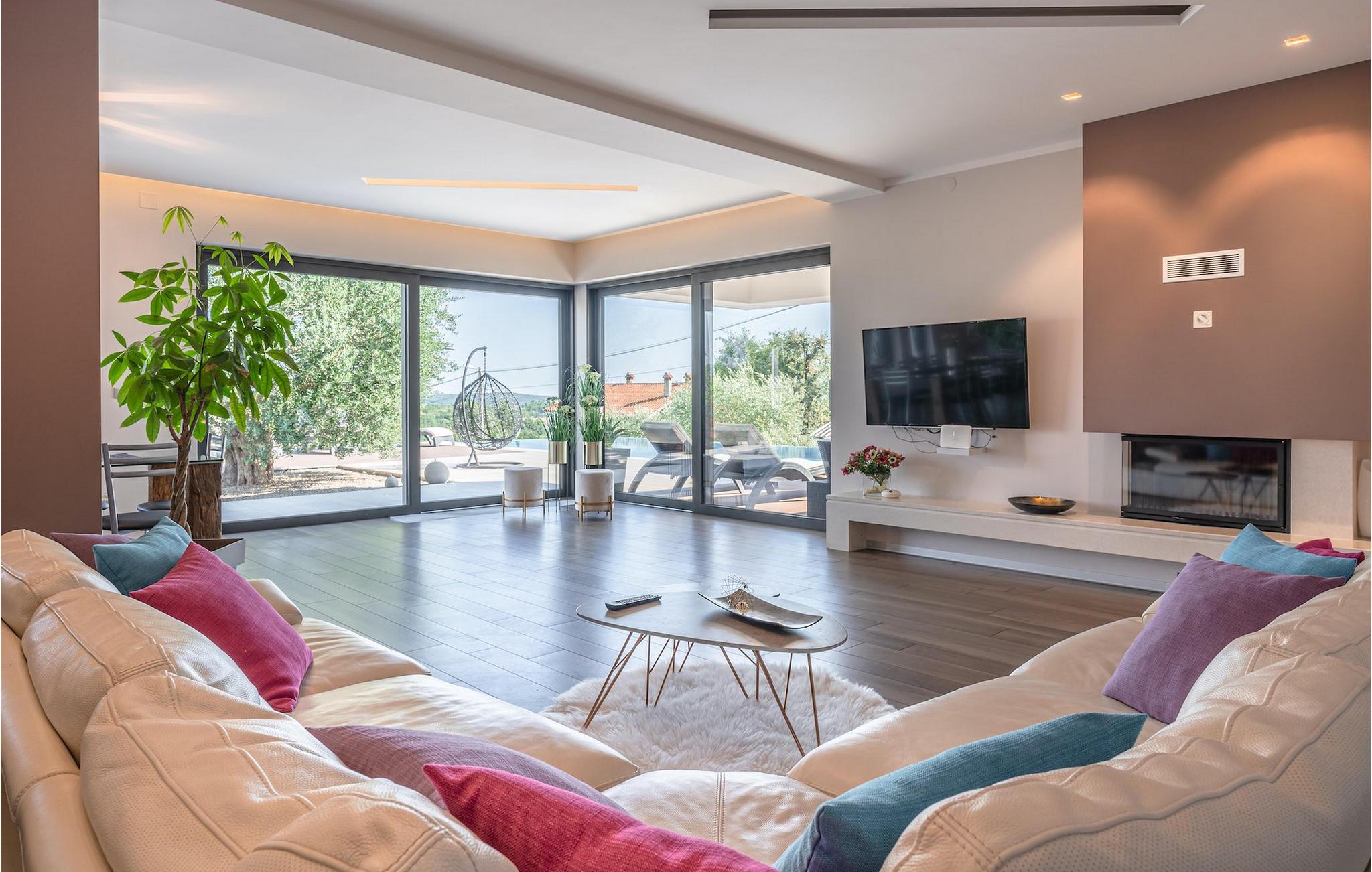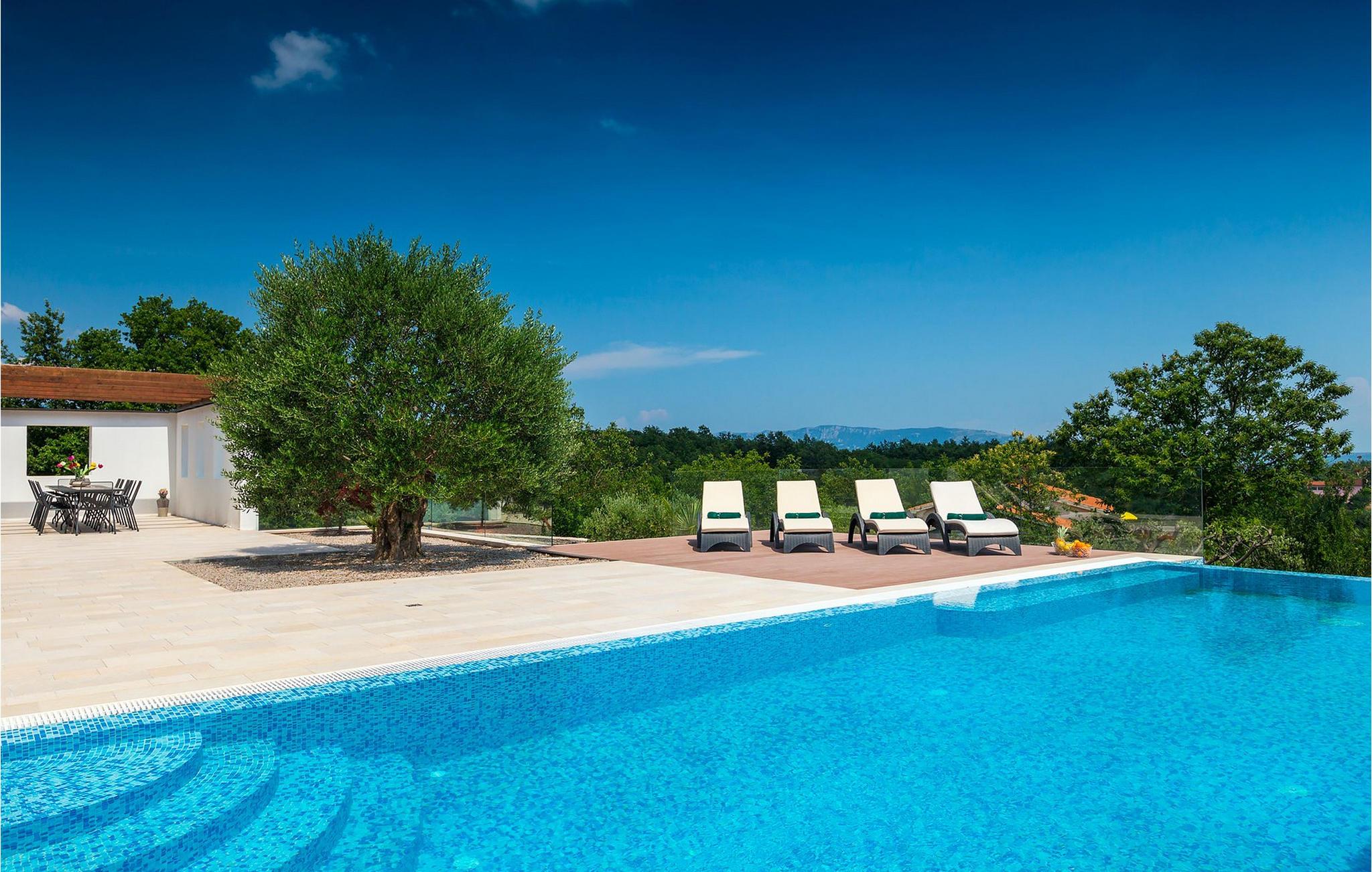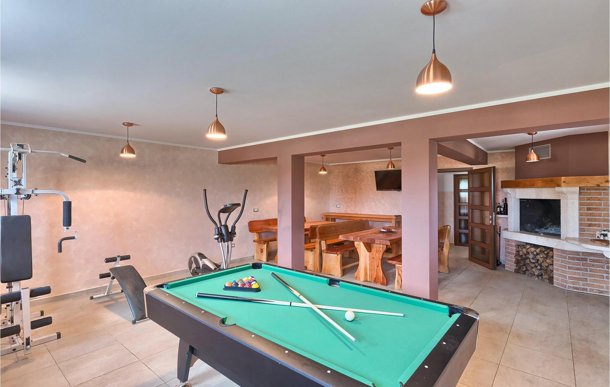 Hvis du drømmer om en afslappende ferie, mens du er omgivet af smuk, uberørt natur, kan Villa Pedena være præcis, hvad du har brug for. Samtidig ligger denne dejlige villa kun en kort køretur fra nærmeste strand. Villaen vil efterlade dig målløs, da der blev givet megen opmærksomhed til de mindste detaljer. Stueetagen har en åben planløsning og store, gallerilignende vinduer, der lukker meget lys ind hele dagen. Her finder du en rummelig stue samt et fuldt udstyret køkken. Med i alt 4 soveværelser og en sovesofa i et separat værelse kan villaen rumme op til 10 gæster. For at fuldende oplevelsen står et fitnessrum til din rådighed, hvor du også finder et poolbord og dart. Hvis du har lyst til at tilberede traditionelle måltider, er du velkommen til at prøve villaens indbyggede grill. Der er også en overdækket terrasse for dem, der kan lide at spise al fresco. Men hovedtræk ved denne charmerende villa er sandsynligvis den store swimmingpool, som kun er til din eksklusiv brug. Villaen i sig selv ligger på et isoleret og perfekt afslappende sted... så ideel, hvis du værdsætter privatliv og fred og ro.. Istrien er godt forbundet og har et fremragende og uoverfyldt vejsystem. Kysten med de store turistcentre er kun en kort køretur væk, ligesom Pula lufthavn. Den nærmeste strand ligger i Rabac ca. 18 km væk. Istrian