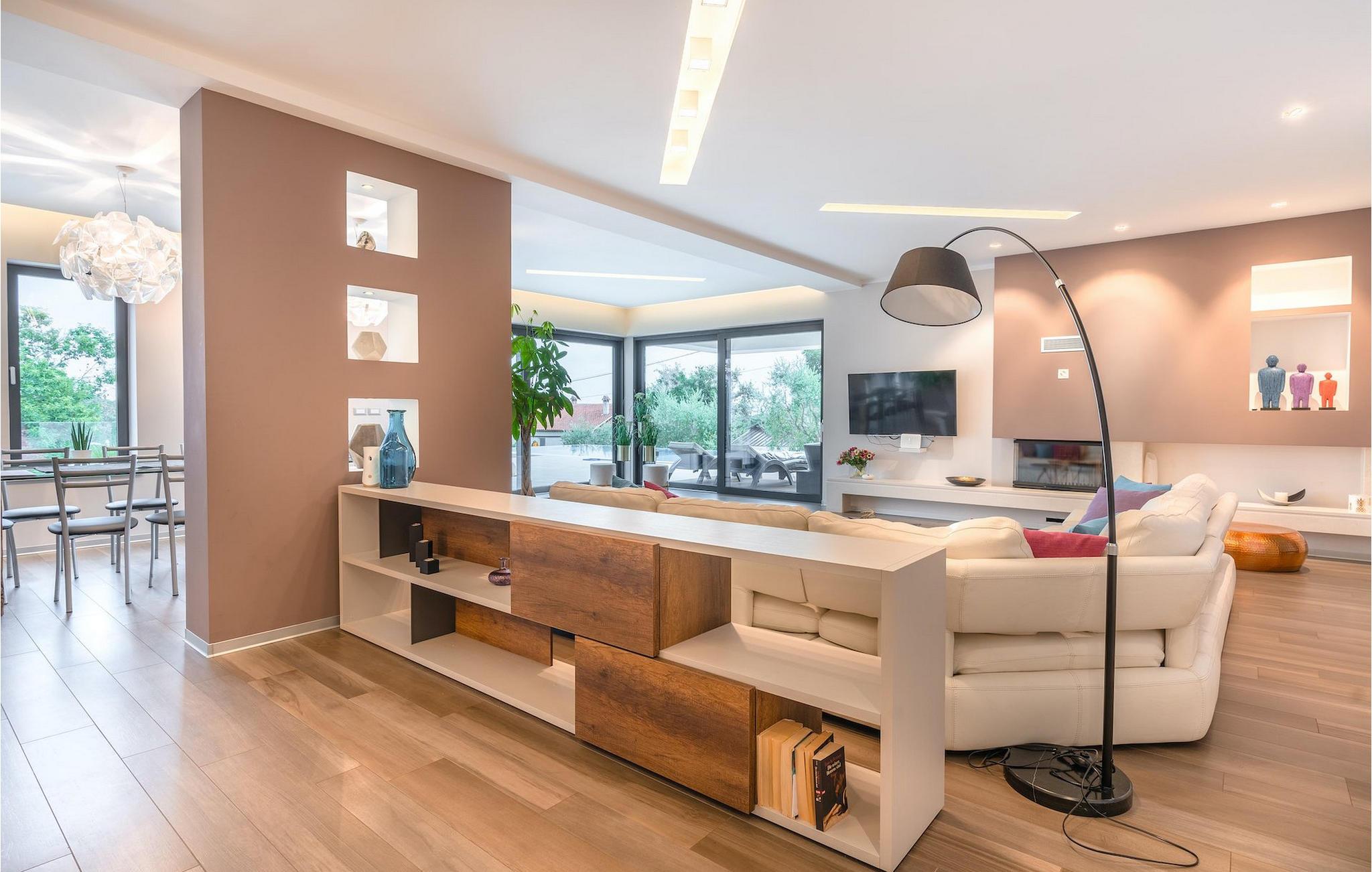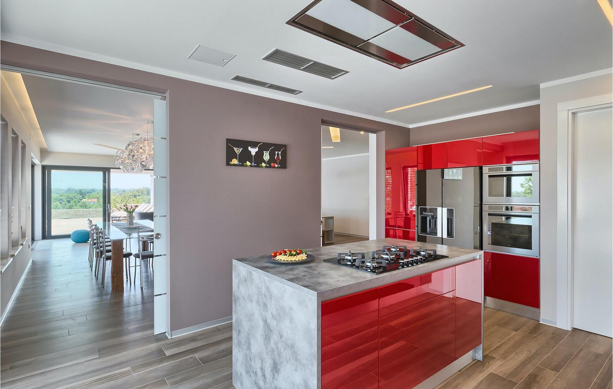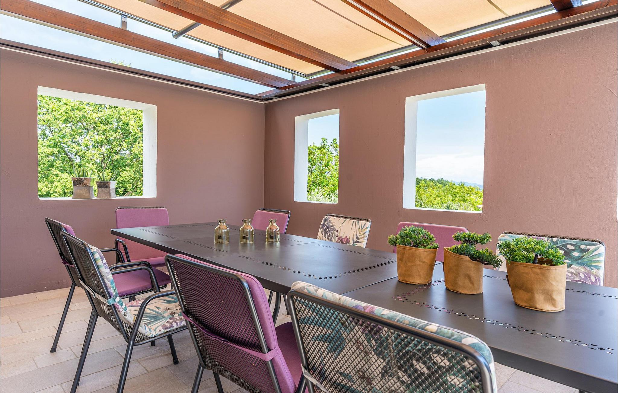 Hvis du drømmer om en afslappende ferie, mens du er omgivet af smuk, uberørt natur, kan Villa Pedena være præcis, hvad du har brug for. Samtidig ligger denne dejlige villa kun en kort køretur fra nærmeste strand. Villaen vil efterlade dig målløs, da der blev givet megen opmærksomhed til de mindste detaljer. Stueetagen har en åben planløsning og store, gallerilignende vinduer, der lukker meget lys ind hele dagen. Her finder du en rummelig stue samt et fuldt udstyret køkken. Med i alt 4 soveværelser og en sovesofa i et separat værelse kan villaen rumme op til 10 gæster. For at fuldende oplevelsen står et fitnessrum til din rådighed, hvor du også finder et poolbord og dart. Hvis du har lyst til at tilberede traditionelle måltider, er du velkommen til at prøve villaens indbyggede grill. Der er også en overdækket terrasse for dem, der kan lide at spise al fresco. Men hovedtræk ved denne charmerende villa er sandsynligvis den store swimmingpool, som kun er til din eksklusiv brug. Villaen i sig selv ligger på et isoleret og perfekt afslappende sted... så ideel, hvis du værdsætter privatliv og fred og ro.. Istrien er godt forbundet og har et fremragende og uoverfyldt vejsystem. Kysten med de store turistcentre er kun en kort køretur væk, ligesom Pula lufthavn. Den nærmeste strand ligger i Rabac ca. 18 km væk. Istrian