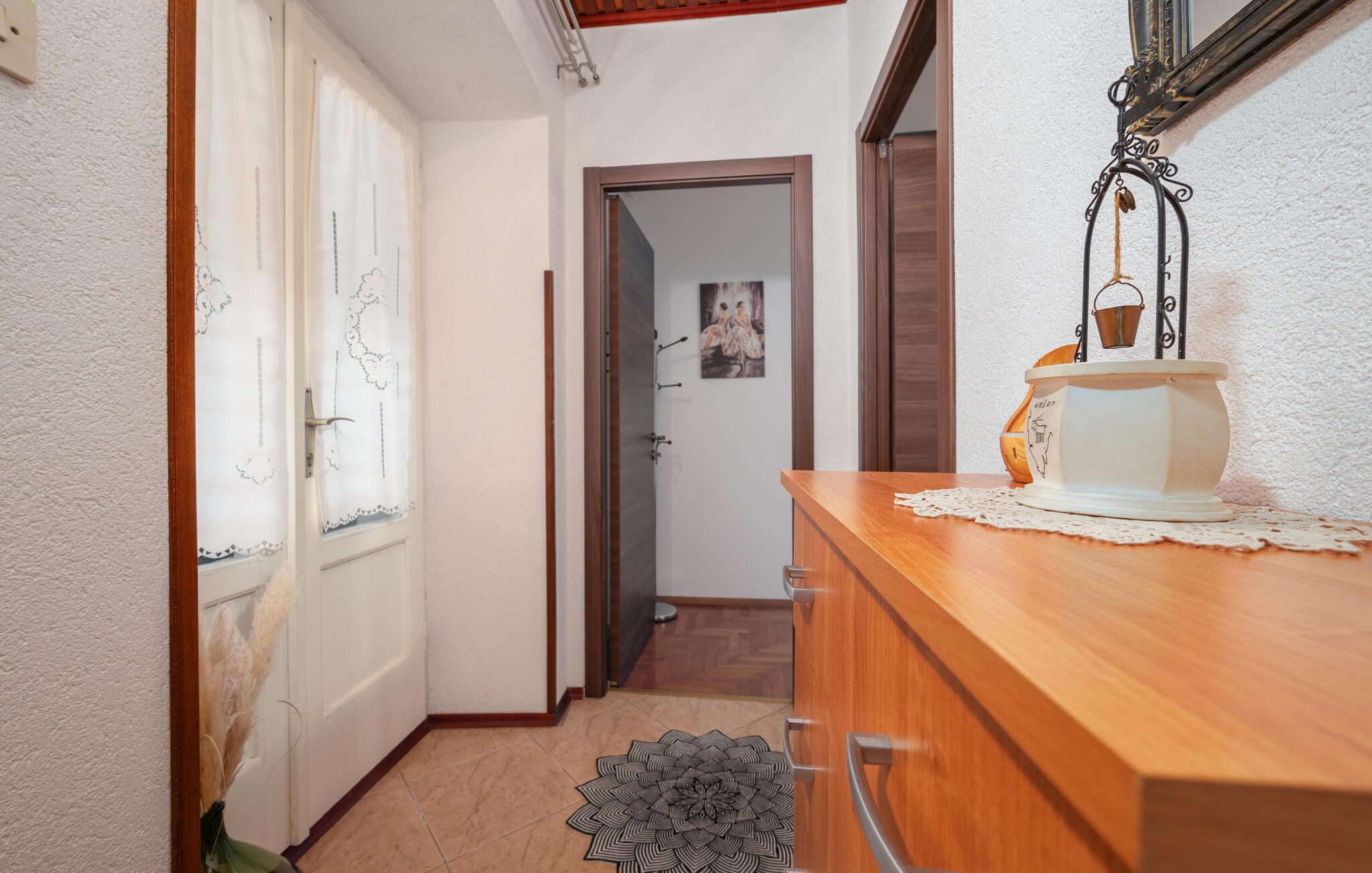 Huset ligger i rolige omgivelser i en lille landsby på østkysten af ??halvøen Istrien, og med sin gode indretning og rustikke udtryk får I her en perfekt base for en ferie spækket med oplevelser. På de varme dage, og de bliver mange, kan I nyde morgenkaffen og alle dagens måltider på den skønne terrasse med komfortable havemøbler og spisebord. Her kan I også tilberede nogle saftige bøffer om aftenen og skylle efter med et godt glas lokal vin. På de køligere dage kan I finde jer godt til rette i den behagelige sofa med en god film eller bræt- og kortspil, mens I lægger planer for de kommende dage.