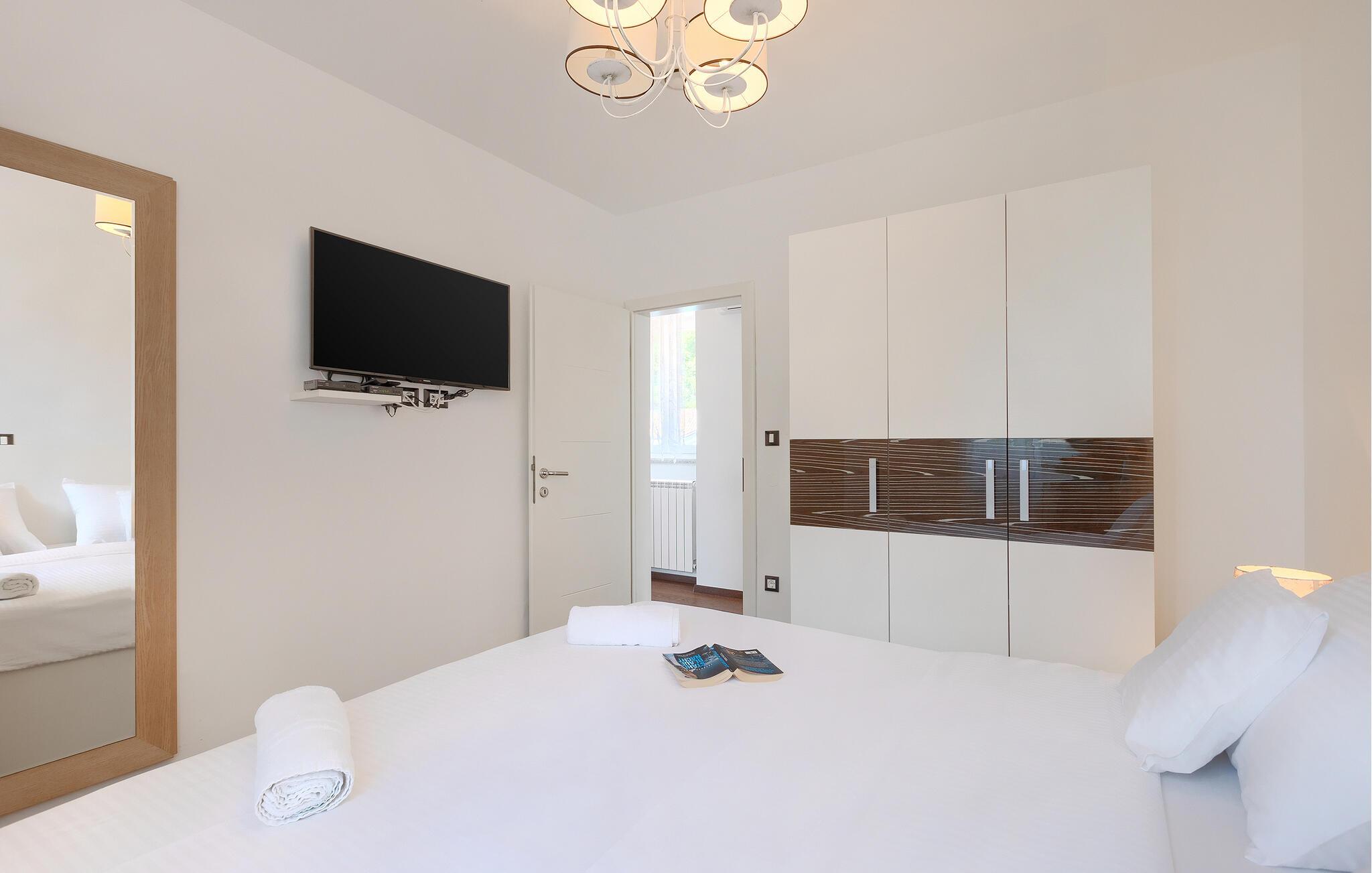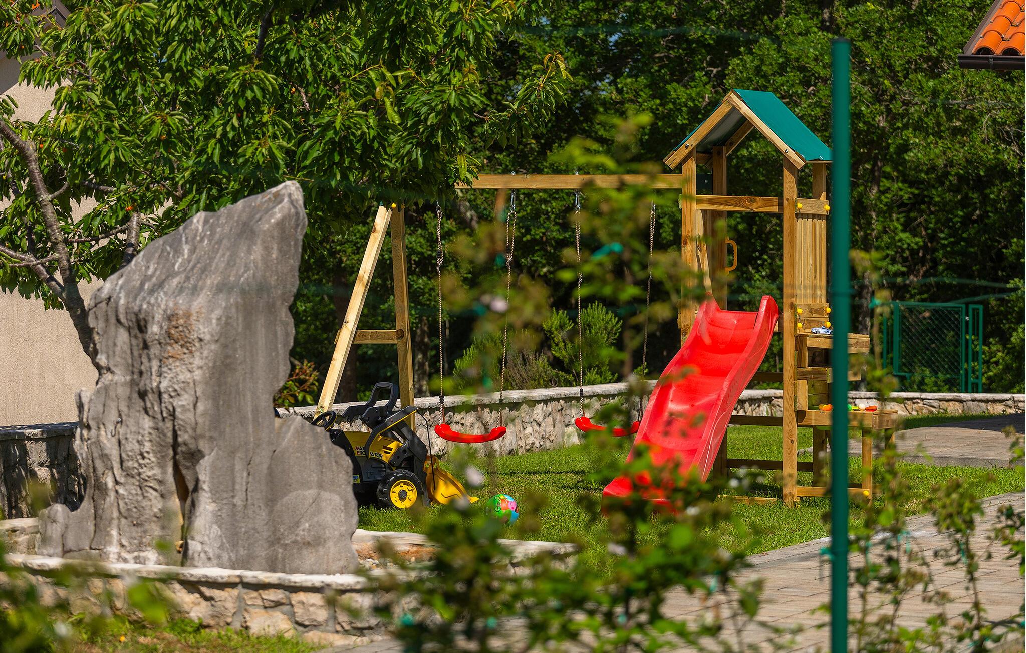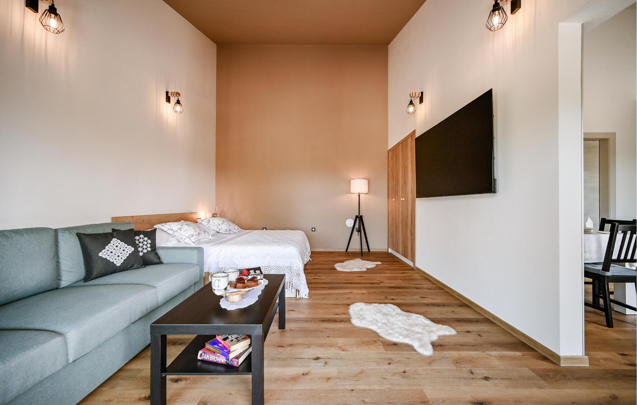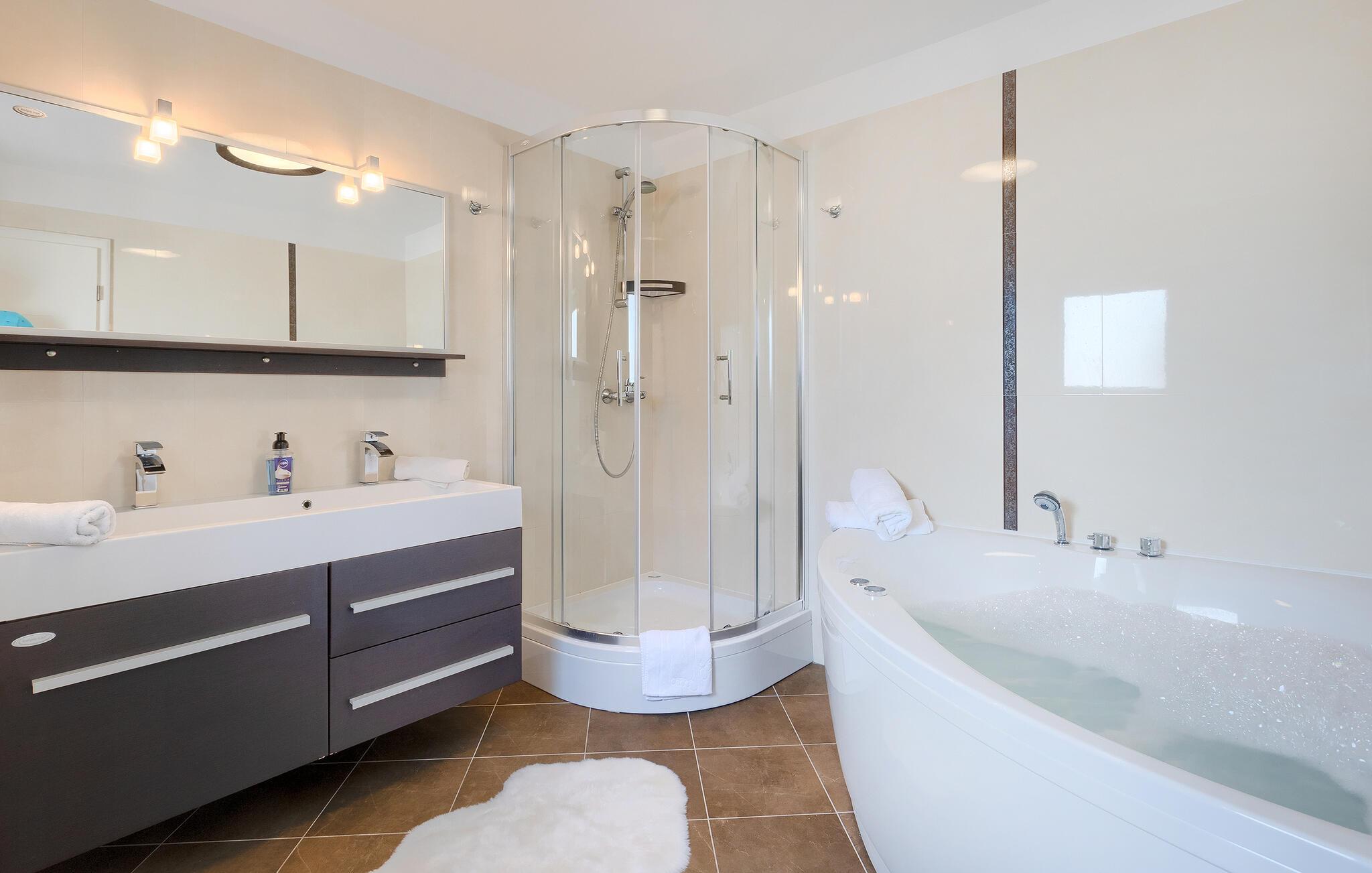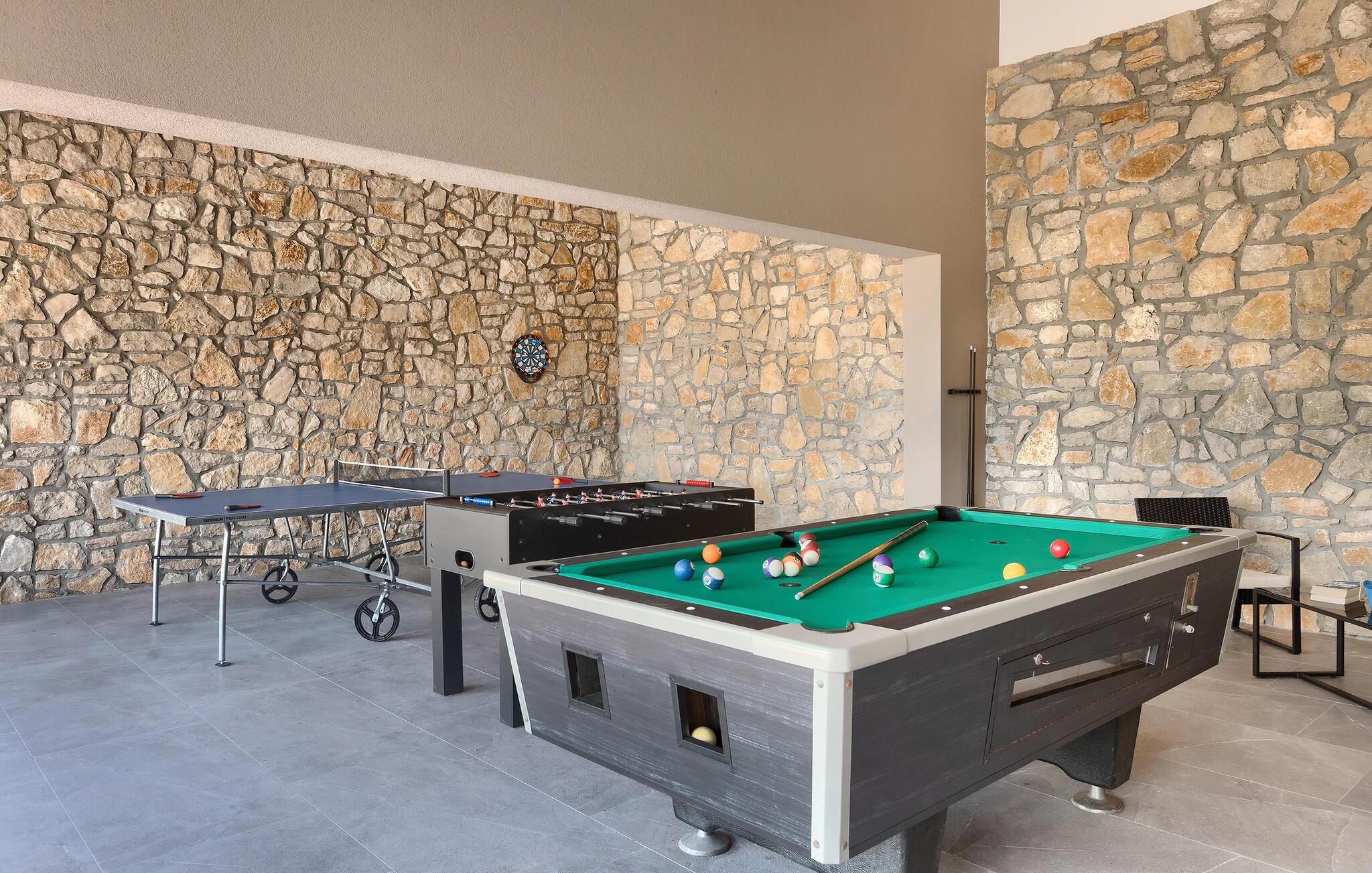 Villa Skavre er et magisk sted, hvor glæde, afslapning og lykke er garanteret. Det ligger på bakkerne nær Kvarner-kysten med en fantastisk udsigt over det omkringliggende landskab. Ejerne har en lille hjortefarm i nærheden af villaen, hvilket vil være en vidunderlig oplevelse for enhver gæst, der tilbringer deres tid der, da man kan svømme i poolen og nyde udsigten til dyrene, der frit løber rundt. En ægte stressaflastning for enhver naturelsker! Villaen har 3 soveværelser, hver med dobbeltsenge, 3 badeværelser og en elegant og moderne opholdsstue med 3 fuldt udstyret køkkener og en hyggelig stue. Her finder I en ekstra soveplads - en komfortabel sovesofa, passende til 2 gæster. Og hvis en del af jeres gruppe har brug for lidt hvile, mens den anden ønsker at tilbringe en lang nat med at nyde kroatiske specialiteter, har ejeren endda sørget for denne lille detalje. Lige ved siden af hovedhuset ligger et mindre hus bestående af et underholdningsrum med pizzaovn og et toilet.