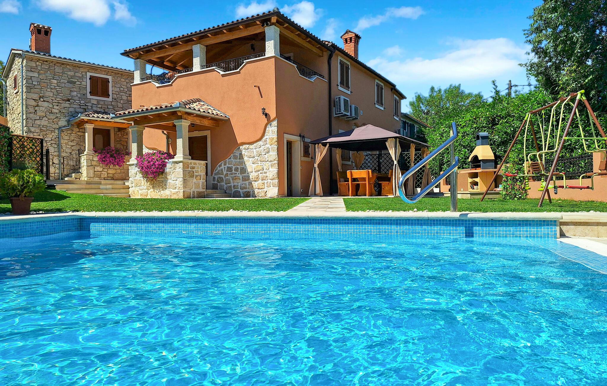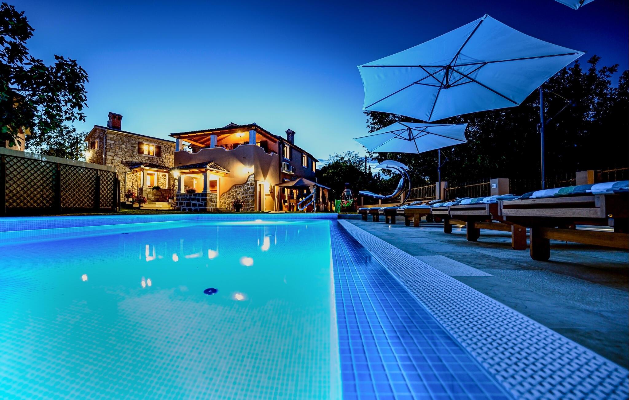 Denne charmerende villa, beliggende i den rolige landsby Potpican i Istrien, tilbyder en drømmende og afslappende ferie i 4 smagfuldt indrettede soveværelser. Villaen består af to separate huse - det dobbelte hovedhus og en mindre fritliggende lejlighed lige ved siden af. Villaen er omgivet af en smukt plejet have med en privat oplyst pool som højdepunkt, mens der også blev givet særlig opmærksomhed til de yngste gæster med en legeplads til mindre børn. Med den opmærksomhed på detaljer, som ejerne lægger i at restaurere denne villa, vil det være svært at vælge, om du hellere vil bruge din tid i det rummelige, klimatiserede indendørs område eller slappe af ved siden af den private pool og nyde en forfriskende drink.