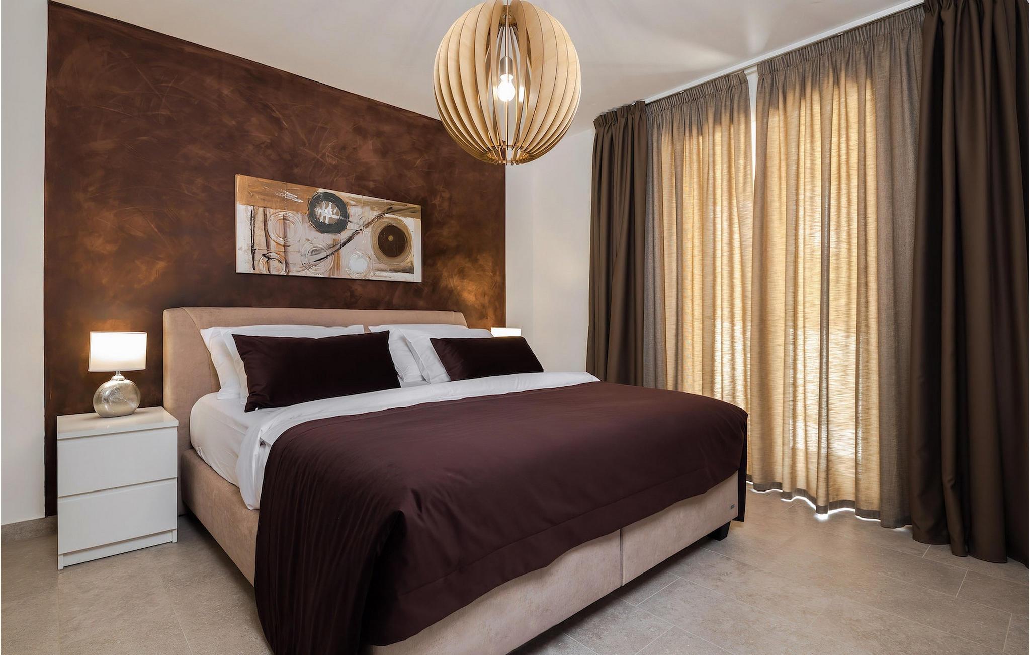 Men kom venligst ind! Interiøret i den to-etagers villa er meget smagfuldt og moderne indrettet. Naturfarver samt træ- og stenelementer skaber en fantastisk sammenhæng til miljøet og giver dig en hjemlig følelse. Den åbne stue med køkken og spiseplads udgør villaens fokus, men to komfortable soveværelser og 2 moderne badeværelser med bruser er også placeret i stueetagen, samt fitnessrummet. På øverste etage er der yderligere 3 soveværelser med de mest komfortable dobbeltsenge du kan forestille dig og et fælles badeværelse. Forestil dig at drikke din første morgenkaffe på balkonen med en af de betagende solopgange ...