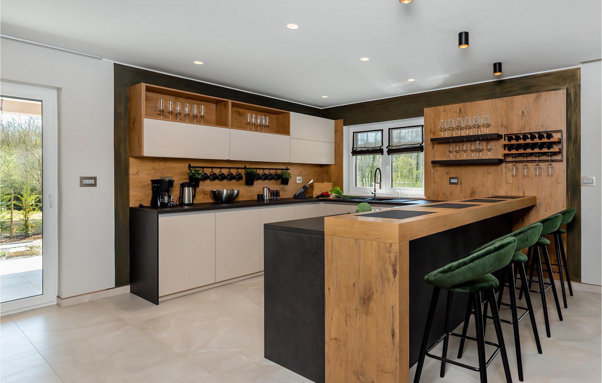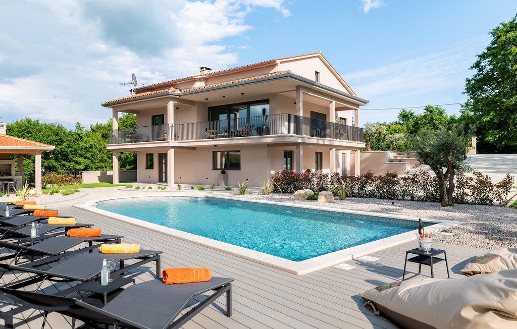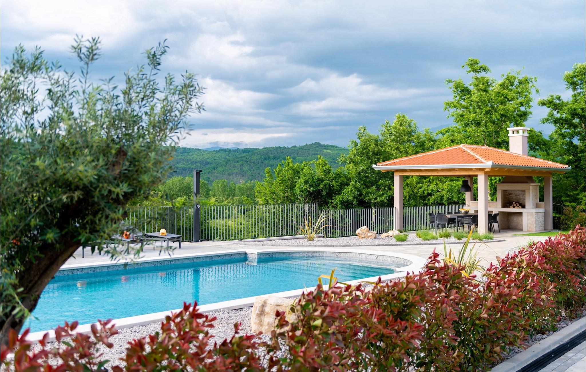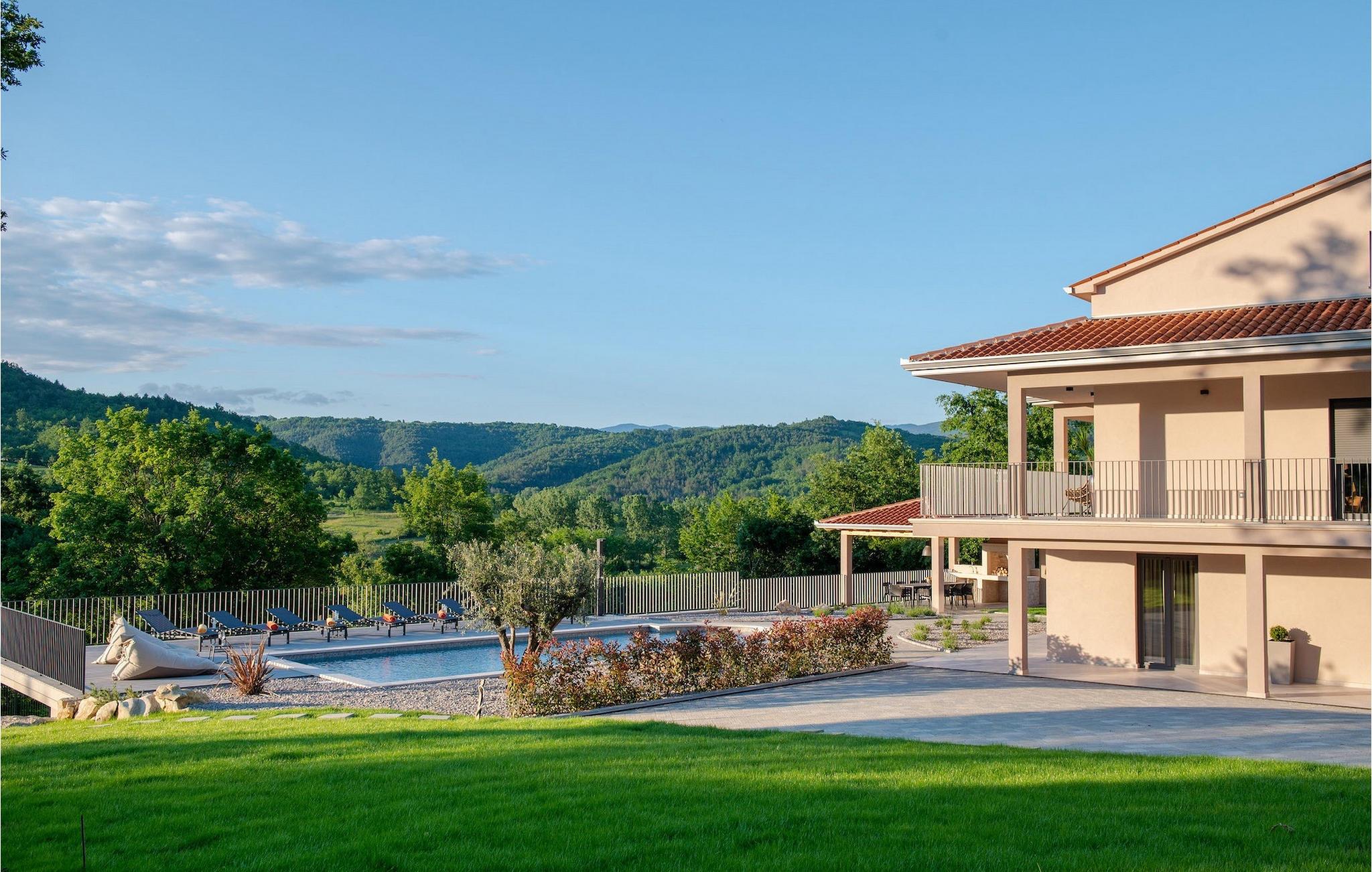 Når du ankommer til villaen, så tag venligst et øjeblik og lad de drømmeagtige omgivelser arbejde på dig. Den fænomenale udsigt over det typiske istriske grønne bakkelandskab vil fortrylle dig. Midt i dette landskab, beliggende på en bakke, troner den smukke Villa Santa Cruz med sin fantastiske 60m2 pool på en enorm ejendom. Nyd din ferie lige her - i den forfriskende pool med udsigt over naturen - og lad tankerne vandre! Nyd en kølig drink, mens du nyder de varme stråler fra Kroatiens sol på en af liggestolene.