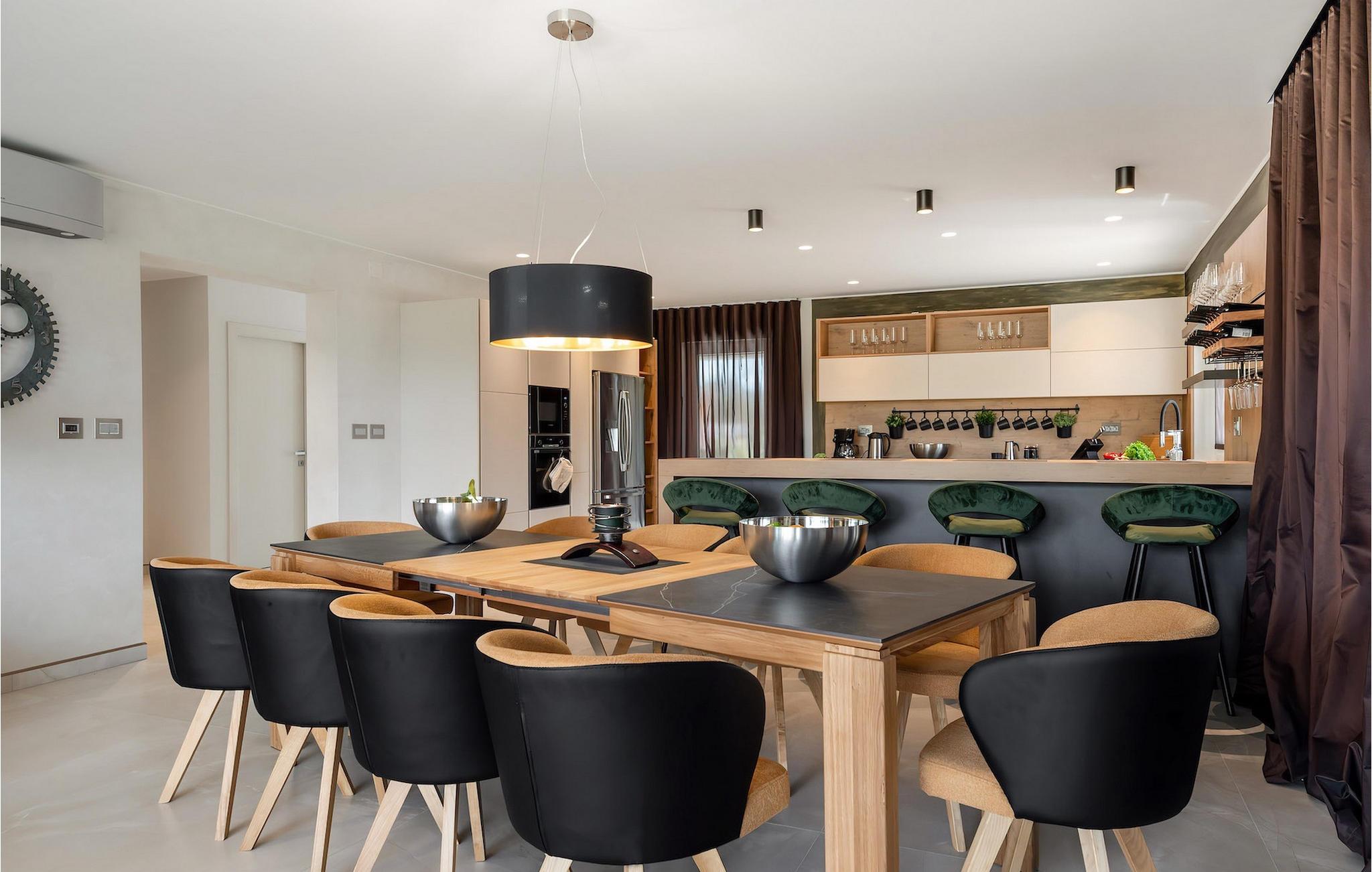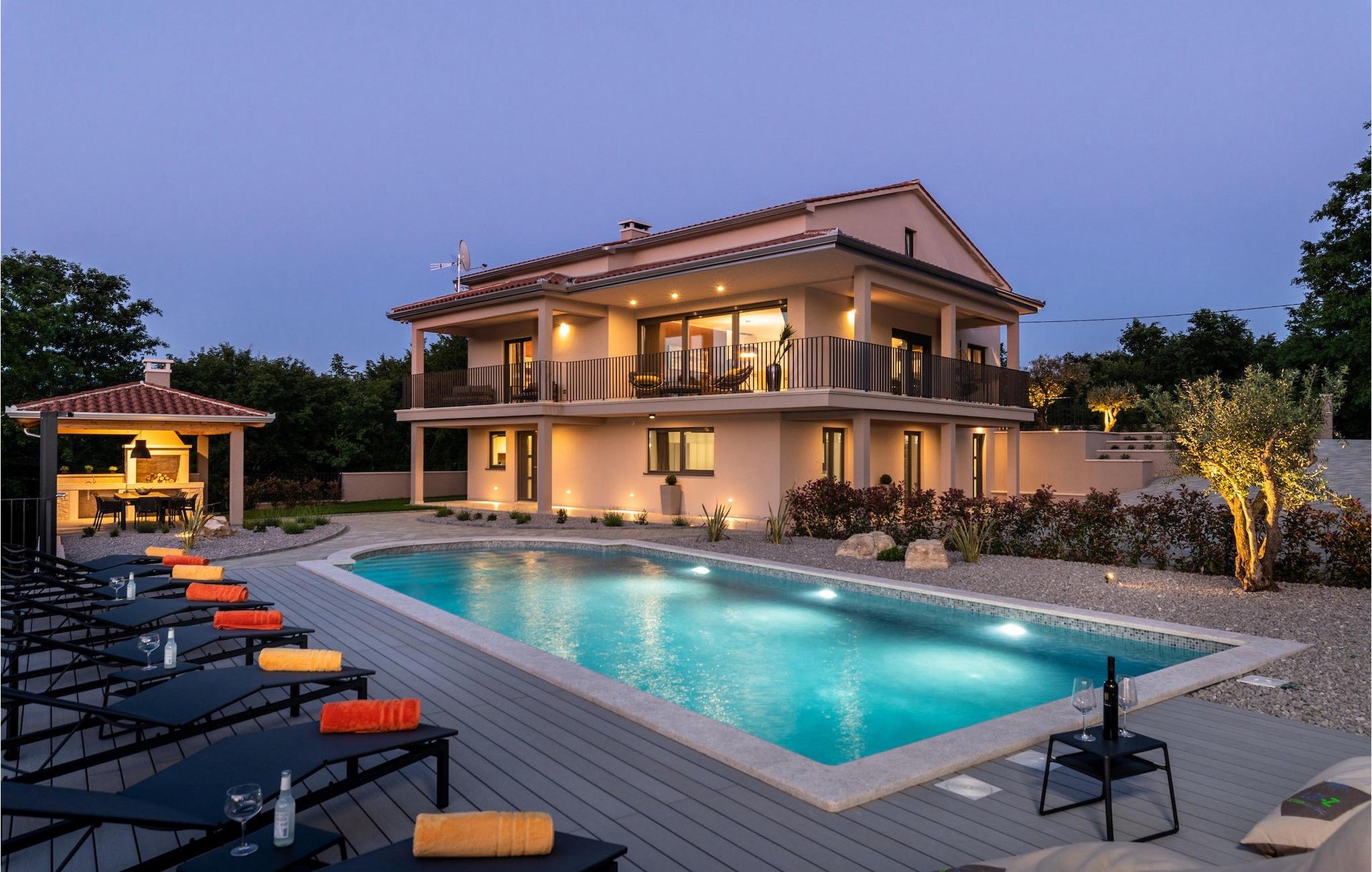 Hvis du alligevel føler lysten til at forlade Villa Santa Cruz og udforske området, er det ikke langt fra de omkringliggende byer og den nærmeste strand. Hvis du ønsker noget action, har du mulighed for at leje KTM motorcykler, quads og e-cykler gennem udlejer mod et tillægsgebyr. Derudover er en privat kok, morgenmad og aftensmad, samt en privat massør til rådighed efter anmodning - kontakt os venligst for yderligere information. Book Villa Santa Cruz, oplev et strejf af luksus og forelsk dig i Istrien - det kaldes ikke "terra magica" for ingenting. Villa Santa Cruz ligger i en lille landsby ved navn Orsanici. Ligesom de fleste landsbyer i Istrien ligger den kun en kort køretur fra den istriske østkyst og garanterer en afslappende og fredelig ferie. Kystbyerne Labin og Rabac tilbyder et fremragende udvalg af caféer og gode restauranter, hvor du kan nyde traditionelle middelhavsretter såsom Kvarner scampi, en af de mest elskede produkter fra Adriaterhavet. Engang en lille fiskerby, i dag er Rabac et velkendt turiststed med storslået bevarede naturskønheder, som sikrede byen titlen "Kvarnerbugtens perle". Labin er en middelalderby beliggende kun 40 km fra Pula, på en bakke lige over Rabac. Byen er et kulturelt centrum i det østlige Istrien, kendt for sine mange kunstgallerier og en unik skulpturpark. Hvis du beslutter dig for at besøge Labin, råder vi dig til at gå en tur gennem de smalle stengader og nyde en kop kaffe med en herlig udsigt, der strækker sig over Rabac og øen Cres. Hav det sjovt med at udforske regionen på cykel eller quad, gå lange ture gennem uberørt natur eller oplev trøffeljagt. Der er så mange ting at se og gøre her - du må hellere starte nu. Vi er sikre på, at du snart vil vende tilbage til det magiske Istrien igen!