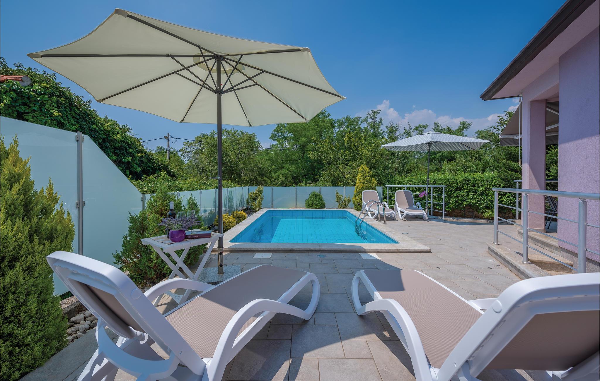 Hyggeligt mindre feriehus i den charmerende lille by Presika. Huset er moderne indrettet med sans for farver og detaljer. Et klimaanlæg sørger for behagelige temperaturer. I den velplejede og indhegnede have er der først og fremmest en pool, men også et legehjørne samt en trækulsgrill. Så kan hele familien nyde udelivet mens maden syder på grillen. Den indbydende pool har modstrømsanlæg, så her kan I rigtig motionere. I naturen der omgiver huset, kan I spadsere dejlige ture. Besøg Labin, hvis gamle bydel nærmest er en kopi af Venedig, med meget smuk arkitektur. Museet er indrettet som en gammel mine med minegange, spændende, også for familiens børn. I er nær halvøens allerbedste strande, de mest berømte findes i badebyen Rabac. I kan svømme, sejle, fiske, surfe og dykke i havet, rigtig oplagt til de der vil på aktivferie.
