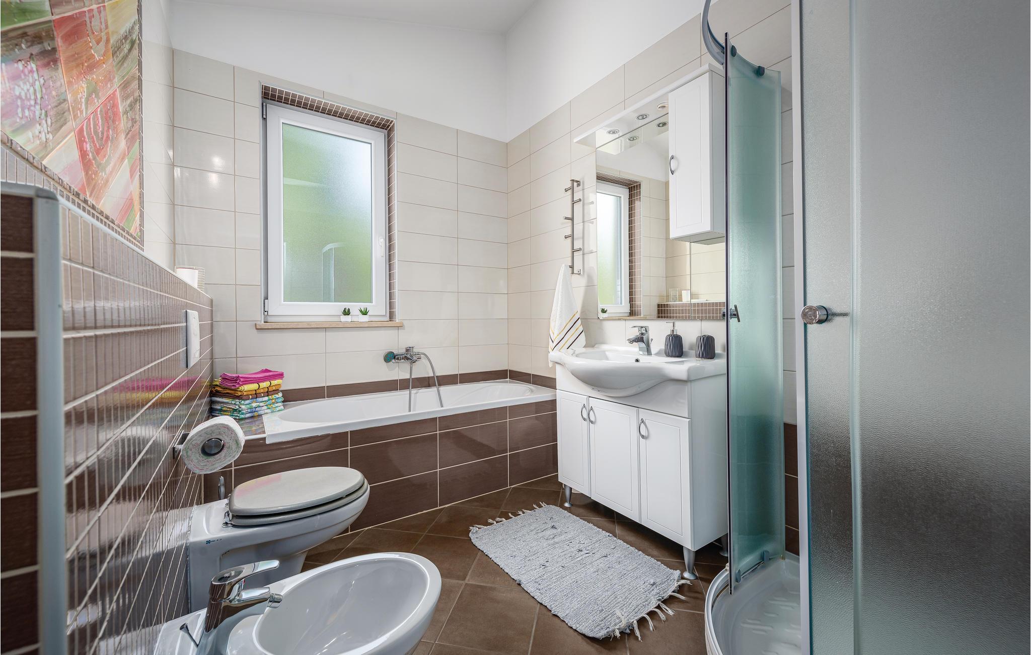 Badeværelse (nr. 1) - WC. Varmt og koldt vand. Bruser og badekar
