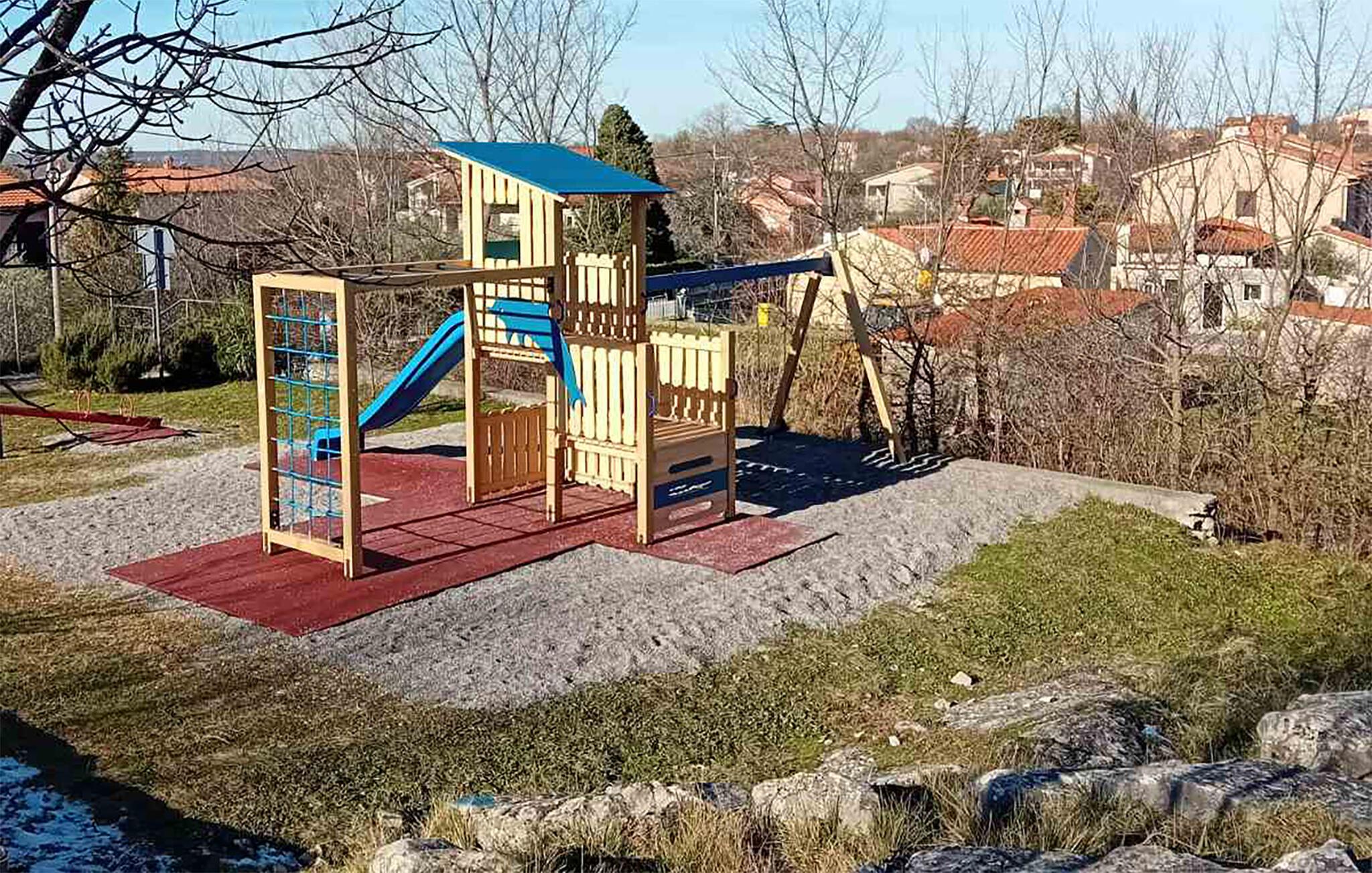 Huset ligger på en lille vej, der løber gennem landsbyen. Herfra har I adgang til en hyggelig offentlig legeplads, hvor I kan tilbringe tid med jeres små.