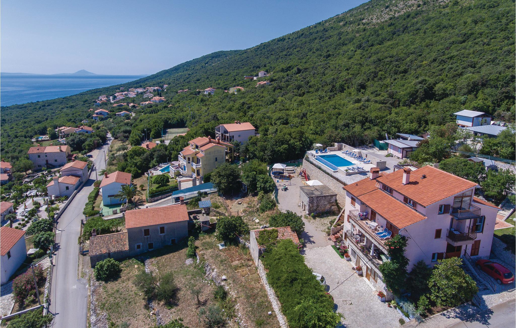 Det tager ca. ti minutter at gå til stranden og havet - eller få minutter kørsel i bil. Her er det oplagt at holde en afslappet ferie, hvor hverdagens udfordringer nemt glemmes i de rolige omgivelser. Hop en tur i den forfriskende fælles pool, hvorfra der er en betagende udsigt over havet og øerne. Besøg den gamle by Labin under ferien, hvor der er en bred vifte af underholdning gennem hele sommeren.
