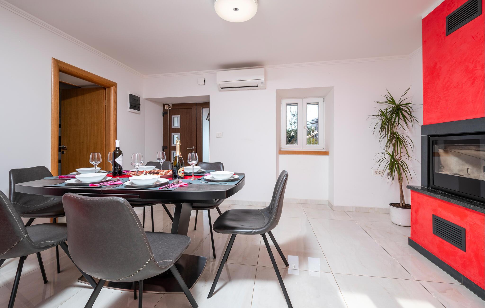 Det er dette traditionelle, men også renoverede og moderne, stenhus i klassisk istrisk stil, der venter jer på ferien. Her kan hele familien se frem til en indbydende indretning med varme farveaccenter, og særligt hyggeligt bliver det om aftenen, når I tænder op i brændeovnen og bare nyder dens gnitren. Der er lagt op til en rigtig strandferie i sol og varme, mens I om aftenen kan tilberede jeres livretter på grillen og nyde dem på den overdækkede terrasse.
