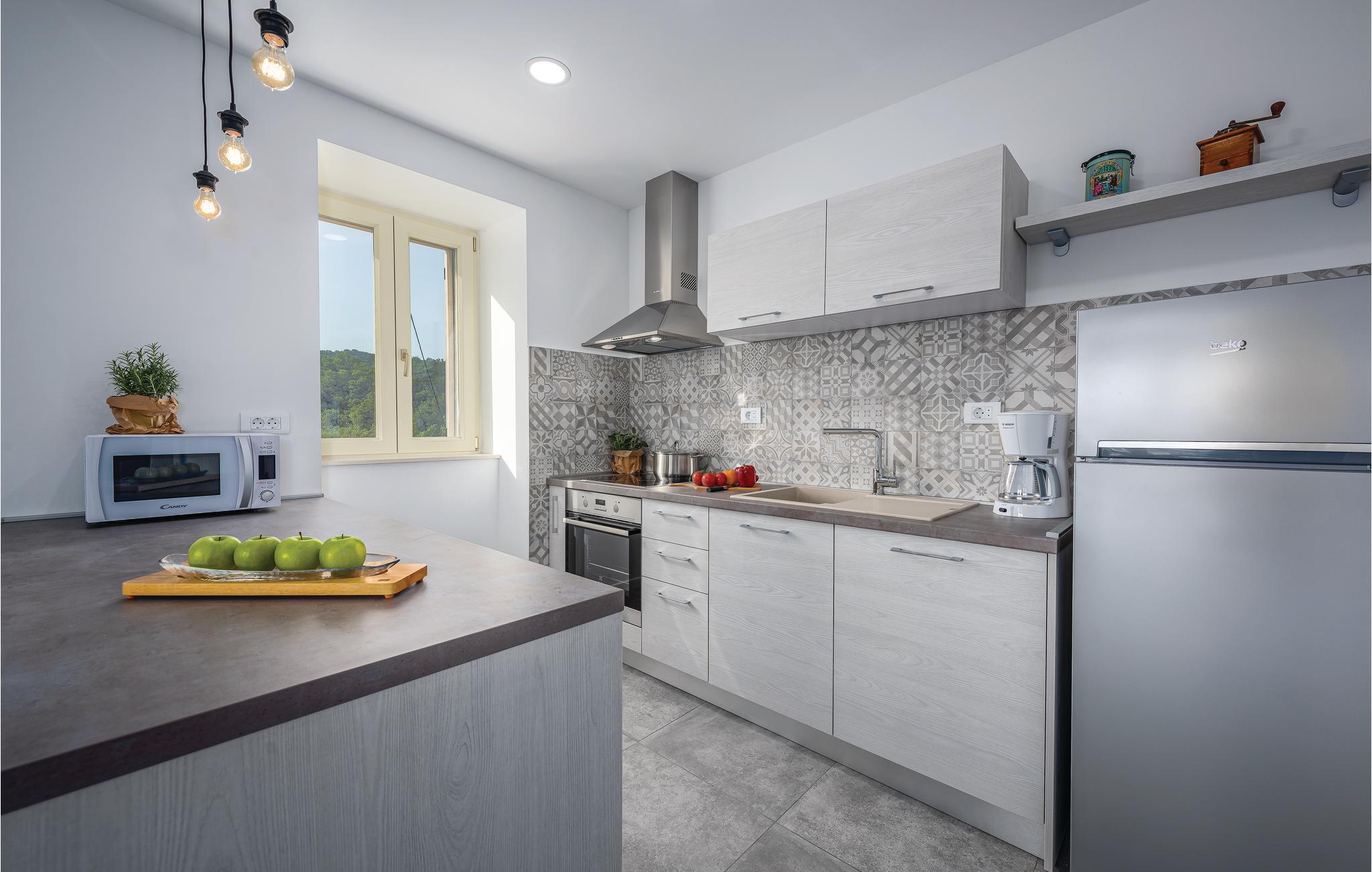 Hold ferie i dette skønne traditionelle feriehus med pool, der helt opdateret til vor moderne tids krav til komfort. Huset ligger i grønne omgivelser, og ikke langt fra to interessante byer: Rabac med sine skønne kiesstrande ud til det krystalklare hav, samt middelalderbyen Labin, med sin rige historiske kulturarv. Nyd at lytte til fuglesangen og den skønne udsigt over Labins gamle bydel, omgivet af grønne bakker, der strækker sig helt ud til havet. Og svøm i overløbspoolen, der ligger foran den overdækkede indbydende terrasse, der forbinder husets indre med haven. Ejer har to både til dagsudflugter, og noget så specielt som en U-båd, hvis I har lyst til at opleve den smukke verden under havet og efter aftale kan I komme gratis med på tur.