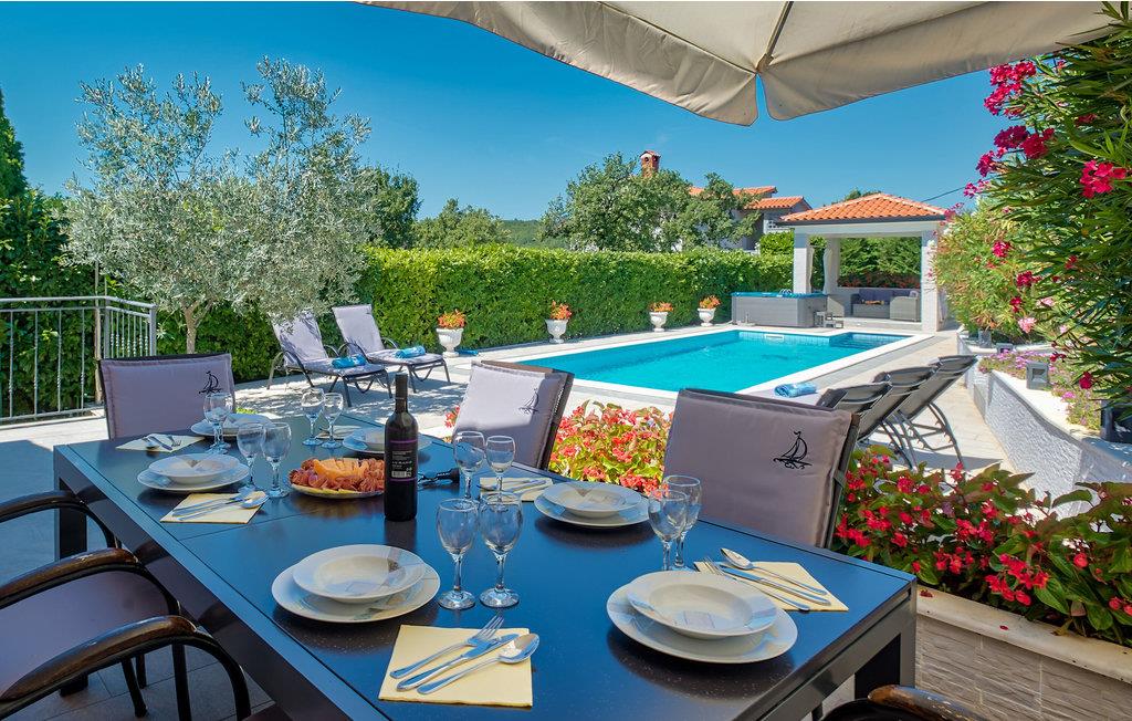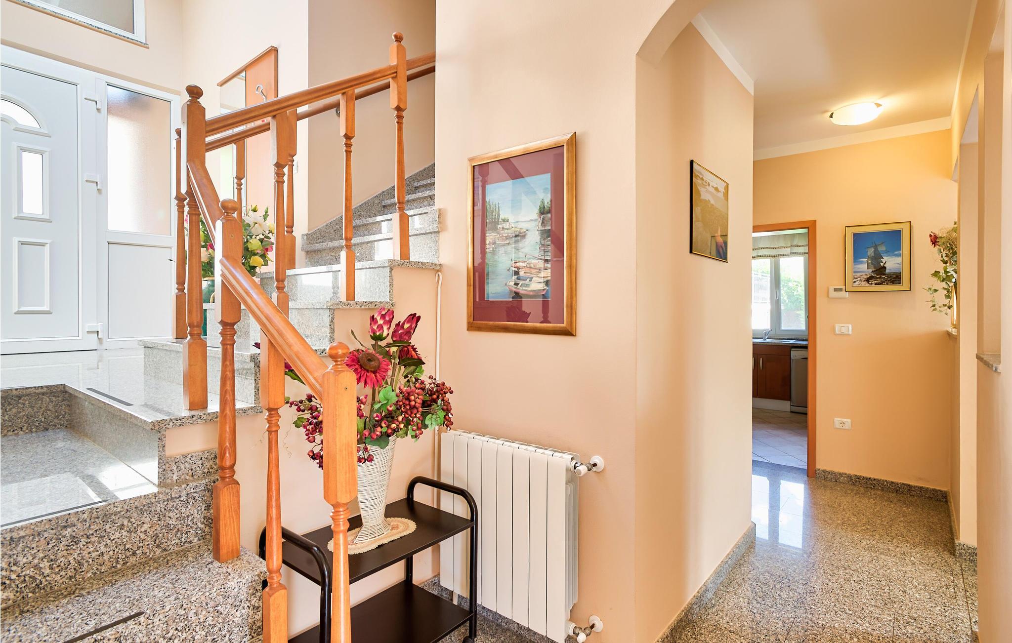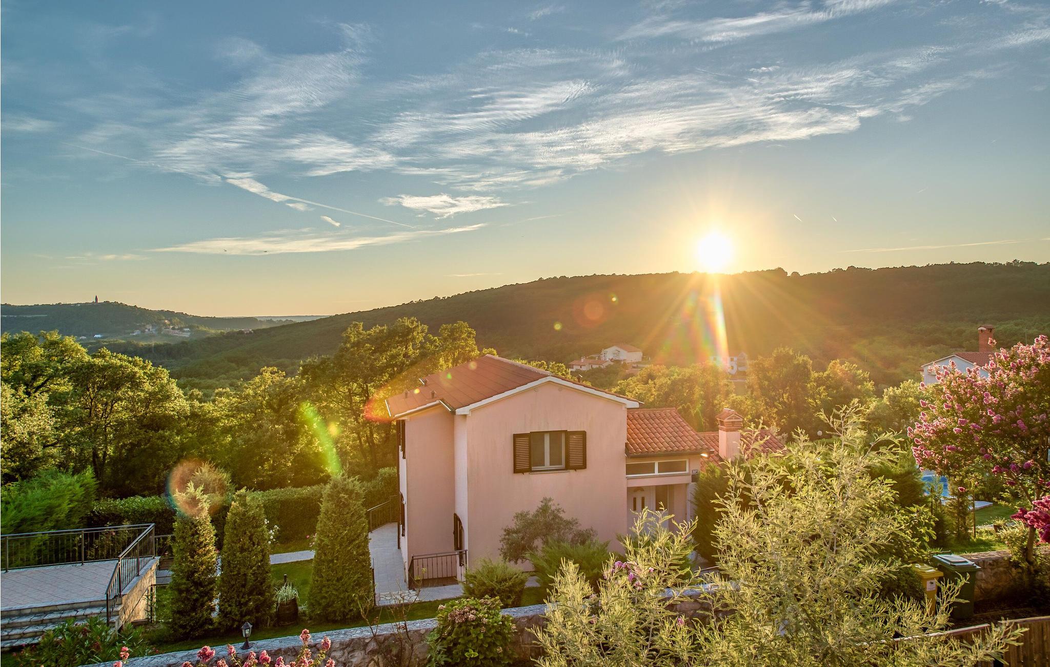 Feriehus beliggende på en bakke i grønne omgivelser, men kun få minutters kørsel til den dejlige by Rabac. Her er en dejlig udsigt over Labins gamle bydel og landskab. Huset er i to etager, med en stejl trappe imellem. Indretningen er moderne og af god kvalitet, og den udendørs swimmingpool bidrager til yderligere komfort og luksus. Nyd feriedagene i dette skønne hus med familien eller vennerne. Prøv de lokale, kulinariske specialiteter, som hører til et særdeles velsmagende køkken. Rabac er med sine strande og interessante natteliv ikke kun afholdt af ungdommen. Laveste loftshøjde 140 cm. Vandsportsentusiaster og gæster, der ankommer med egen båd, vil helt sikkert blive imponeret over de mange flotte bugter, som findes i området. Husets ejer har en cafe, en isbar og en sportsforretning, og her får gæsterne rabat.