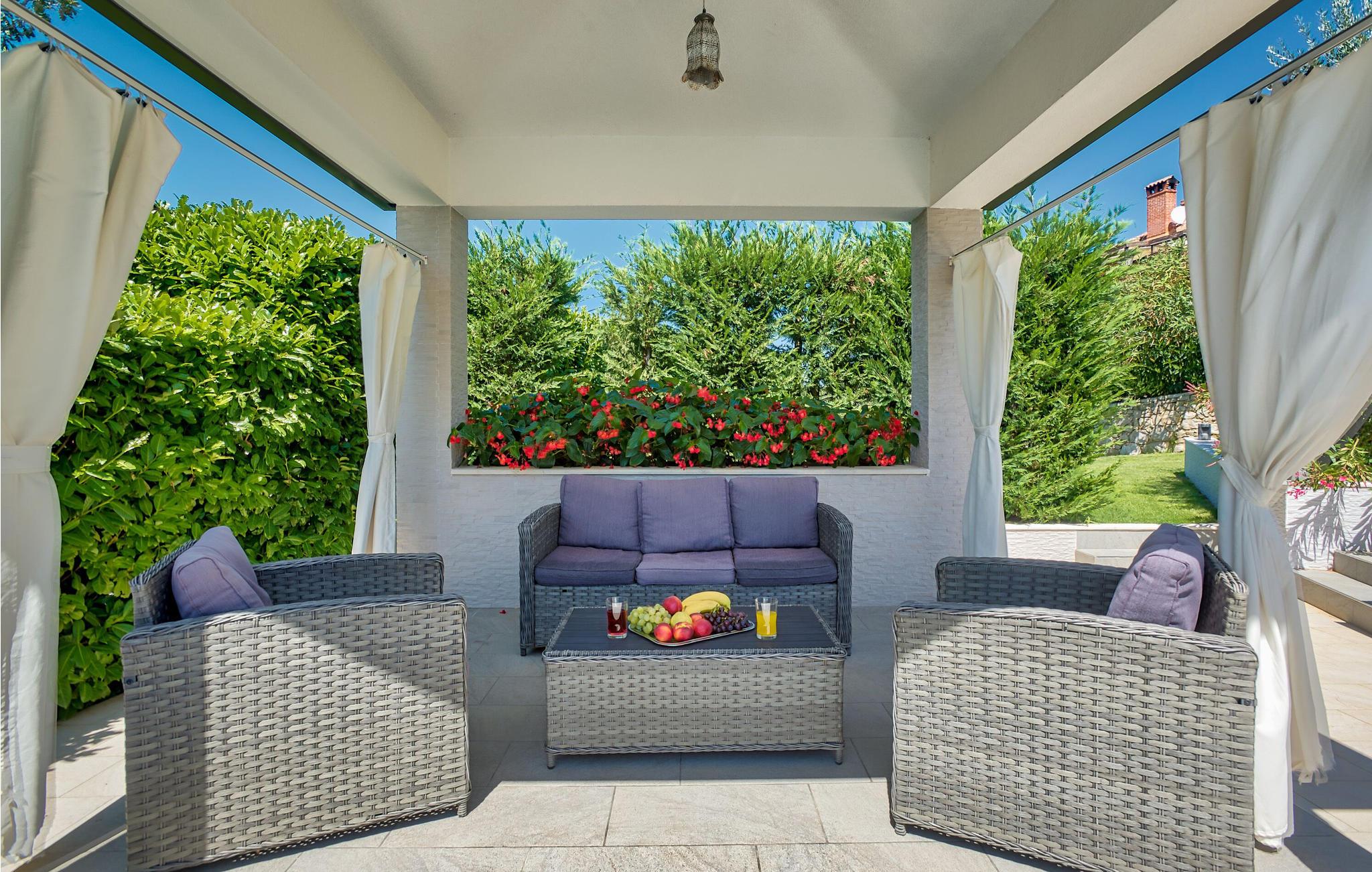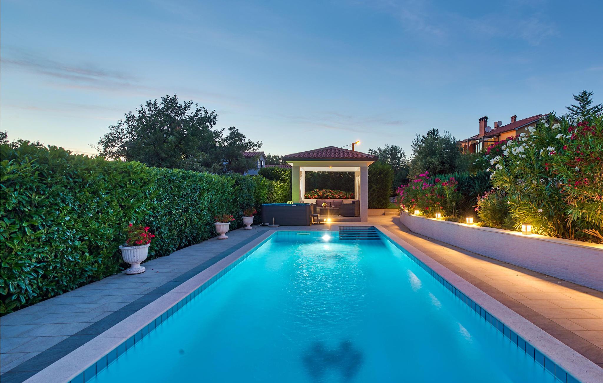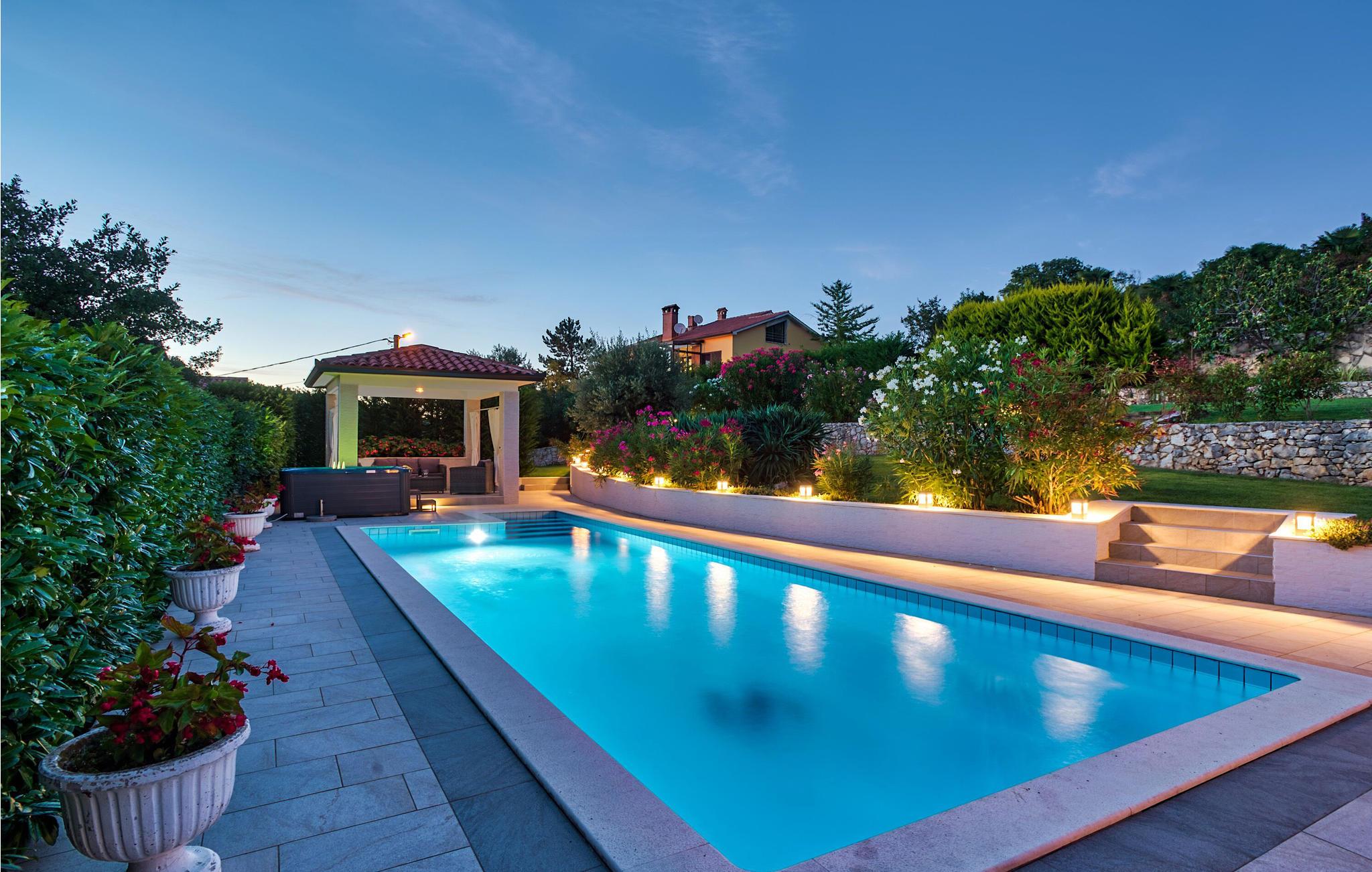 Feriehus beliggende på en bakke i grønne omgivelser, men kun få minutters kørsel til den dejlige by Rabac. Her er en dejlig udsigt over Labins gamle bydel og landskab. Huset er i to etager, med en stejl trappe imellem. Indretningen er moderne og af god kvalitet, og den udendørs swimmingpool bidrager til yderligere komfort og luksus. Nyd feriedagene i dette skønne hus med familien eller vennerne. Prøv de lokale, kulinariske specialiteter, som hører til et særdeles velsmagende køkken. Rabac er med sine strande og interessante natteliv ikke kun afholdt af ungdommen. Laveste loftshøjde 140 cm. Vandsportsentusiaster og gæster, der ankommer med egen båd, vil helt sikkert blive imponeret over de mange flotte bugter, som findes i området. Husets ejer har en cafe, en isbar og en sportsforretning, og her får gæsterne rabat.
