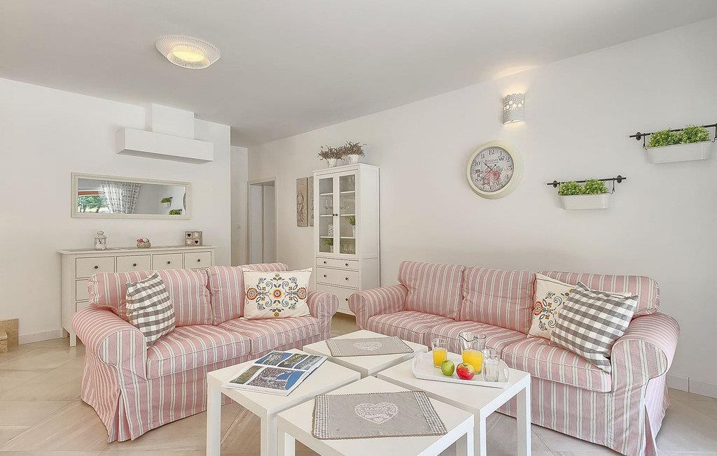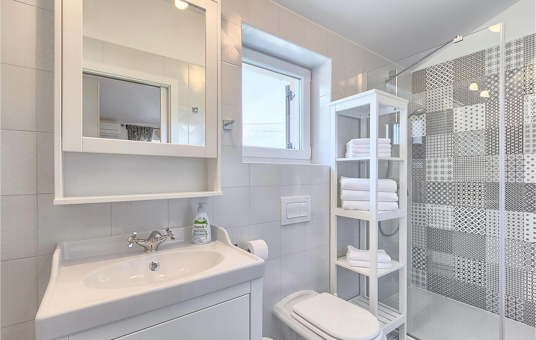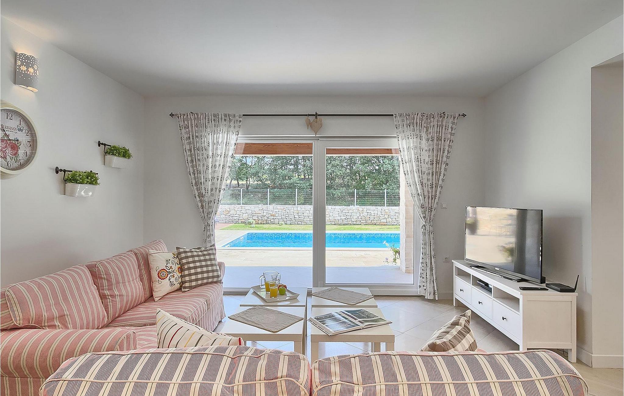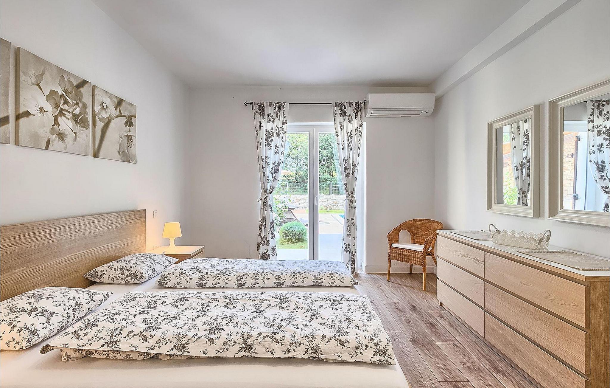 Charmerende villa Natasha er det ideelle valg til en ferie under den varme istriske sol. Ved første øjekast kan man se, at villaen er indrettet med vægt på at skabe en familiær atmosfære. Villaen byder på fire lyse og komfortable soveværelser og kan rumme op til otte gæster. Fra siden af parkeringspladsen kommer du ind på villaens øverste etage, hvor du finder tre soveværelser med aircondition og tre badeværelser. To soveværelser er udstyret med en dobbeltseng hver og har eget badeværelse. Det tredje soveværelse har to enkeltsenge. På øverste etage er der også et tredje, separat badeværelse. I stueetagen af villaen er der et soveværelse med aircondition med direkte adgang til poolen, et badeværelse og en lys stue med et tv, der er forbundet med spisestuen og fuldt udstyret køkken i et åbent rum koncept. Hele rummet har aircondition. Vores yngre gæster vil blive glade for at se, at der er en PlayStation 3 til deres rådighed. Ved siden af huset er der en overdækket terrasse med spisebord. grillelskere vil blive glade for at se det udendørs overdækkede område med kulgrill. I villaens have er der en swimmingpool og liggestole til at slappe af og nyde solen. Du kan også spille dart for en sjov ferie i pausen mellem svømning i den opvarmede pool og afslapning i solen. Ejendommen er fuldt indhegnet og har privat parkering til 3 biler.