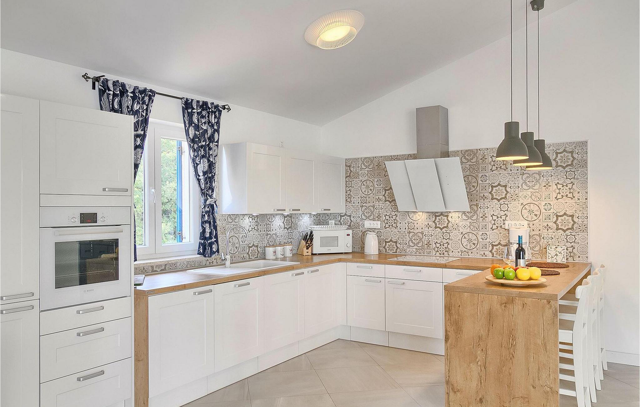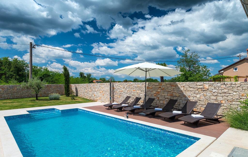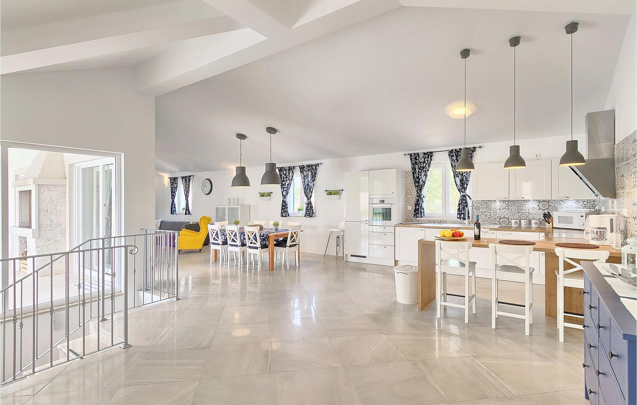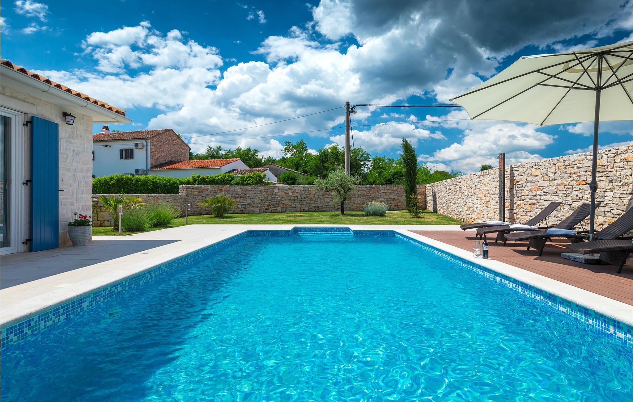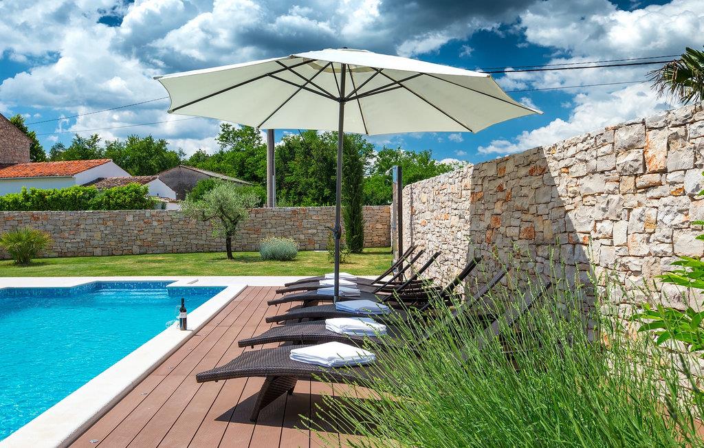 Die schöne und moderne Villa Nada befindet sich im kleinen Dorf Ruzici an den östlichen Küste der istrianischen Halbinsel. Die Villa bietet Platz für bis zu 8 Personen in vier Schlafzimmern. Das Interieur zeichnet sich durch klare Linien aus und besteht aus einem geräumigen Wohn- und Essbereich, einer voll ausgestatteten Küche und vier Schlafzimmern mit eigenem Bad. Drei komfortable und schön dekorierte Schlafzimmer haben ein Doppelbett und ein gemütliches Schlafzimmer hat zwei Einzelbetten. Alles wird in einem sehr warmen Stil mit gut ausgewählten Möbeln gehalten. Der Innenraum ist hell und luftig dank vielen Fenstern und Türen, von denen aus Sie direkten Zugang zur überdachten Terrasse und zum Garten haben. Im Außenbereich steht Ihnen auch ein Grill zur Verfügung, auf dem Sie köstliche Mahlzeiten zubereiten können, die Sie mit Ihrer Familie und Freunden genießen können. Vor der Villa befindet sich ein großer und einladender Pool, an dem Sie die Sonne genießen und sich bei einem kalten und erfrischenden Getränk entspannen können. Wenn Sie Ihren Urlaub gerne aktiv verbringen, stehen Ihnen Fahrräder zur Verfügung, mit denen Sie die Umgebung entdecken und erkunden können. Diese einzigartige Villa ist für Familien und Gruppen geeignet und vermittelt Ihnen das Gefühl, zu Hause zu sein.Genau wie die Mehrheit der istrischen Dörfer, so auch das Dorf Ružici, nur eine kurze Fahrt von der östlichen Küste entfernt, garantiert einen entspannenden und friedlichen Urlaub. Dank der traditionellen Steinhäuser, die von sanften Hügeln, Agrarflächen und Olivenfeldern umgeben sind, stellt das Dorf das idyllische Istrien dar. Wenn Sie die naheliegenden Städte erkunden wollen, gibt es in den Küstenstädten Labin und Rabac eine ausgezeichnete Auswahl an Cafés und guten Restaurants, in denen sie die traditionellen mediterranen Spezialitäten ausprobieren können, wie z.B. die Kvarner-Scampi, eines der beliebtesten Produkte der Adria. Ehemals ein kleines Fischerdorf, heute ist Rabac ein bekannter Urlaubsort. Die unberührte Natur der Stadt ist für den Titel “Die Perle der Kvarner Bucht” verantwortlich. Labin ist eine mittelalterliche Stadt, die nur 40 km von Pula entfernt ist und sich auf einem Hügel oberhalb von Rabac befindet. Im Osten Istriens ist Rabac ein Kulturzentrum, bekannt für zahlreiche Kunstgalerien und einen interessanten Skulpturenpark. Wenn Sie sich entscheiden, Labin zu besuchen, empfehlen wir Ihnen, durch die engen Steinstraßen zu spazieren und Kaffee mit einem unglaublichen Blick auf Rabac und die Insel Cres zu genießen.
