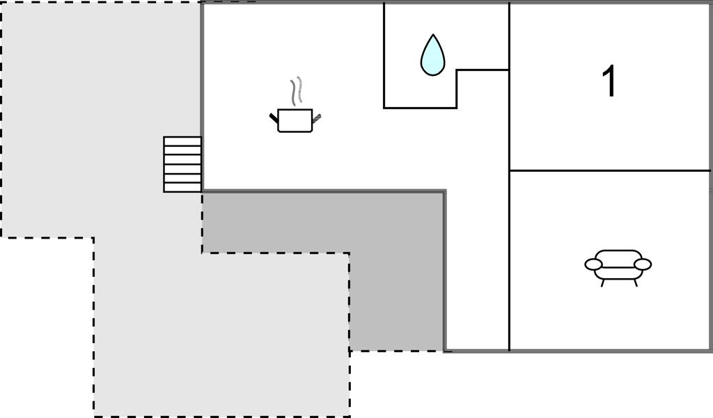 Opholdsstue 17m2 - 2 Sovepladser. (Sofa, madras eller lignende).