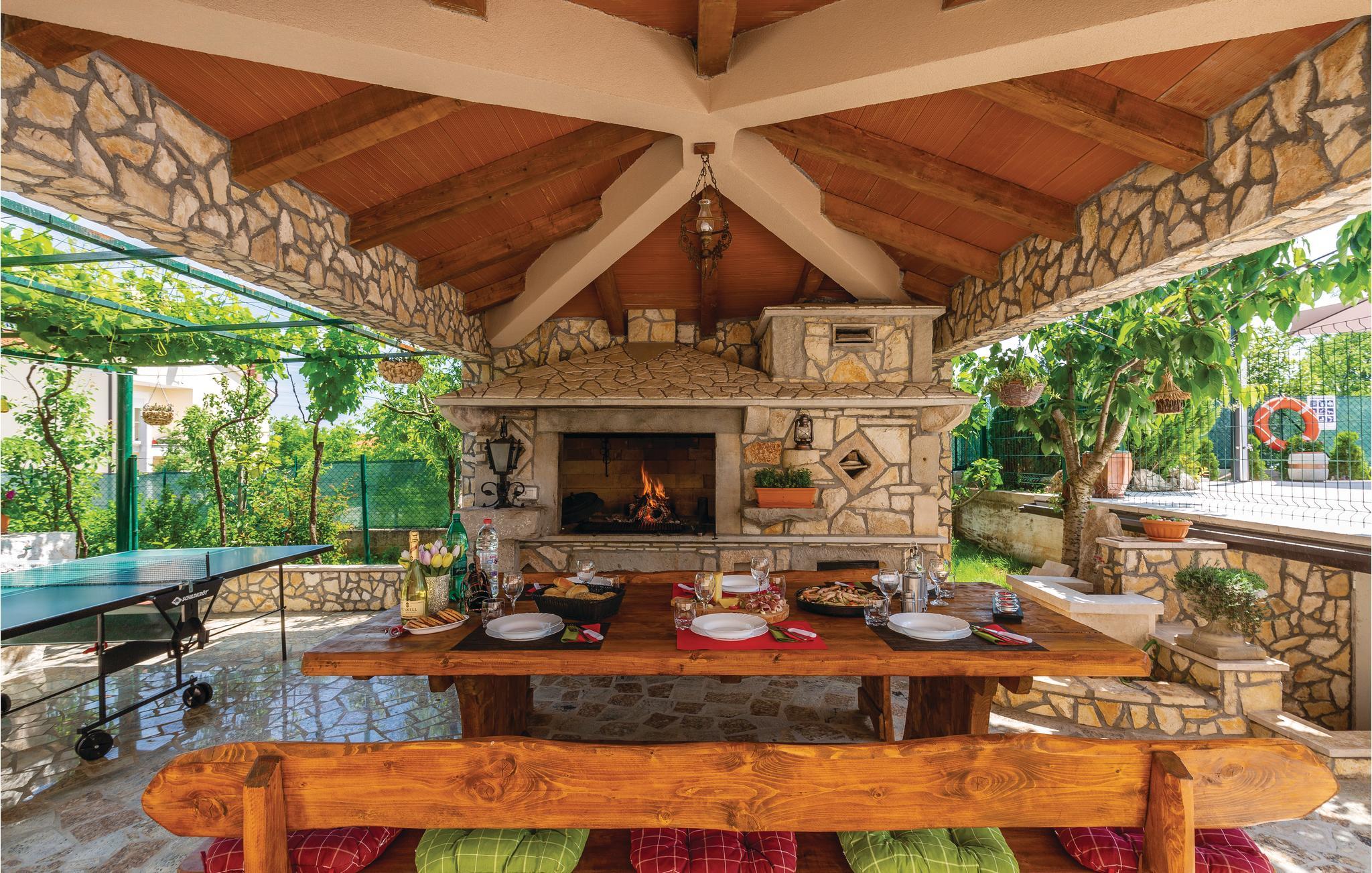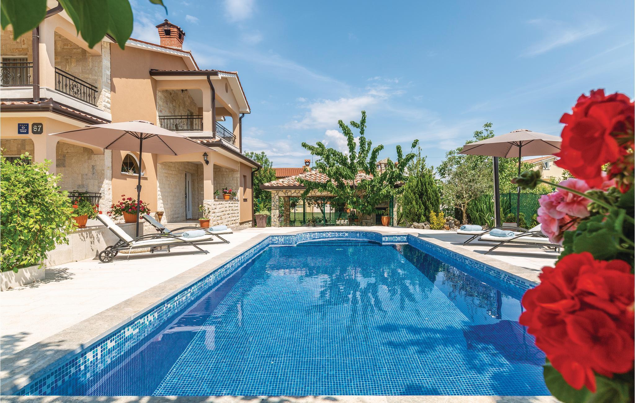 Dette skønne og komfortabelt indrettede feriehus ligger i den lille by Santalezi. I kan hoppe i husets private pool, lige så ofte og lige hvornår I har lyst. I kan også slappe af i den charmerende overdækkede pavillon, der er oplagt til aftener med et godt glas vine i hyggeligt samvær. Besøg den lille ferieby Rabac, med skønne kiesstrande ud til det krystalklare hav, hvor I også kan tage på tur med udflugtsbåd og se kysten fra havsiden. Oplev også de mange former for sommerunderholdning der afholdes i Labin. I bor i et godt udgangspunkt til ture til Pula, Porec og Rovinj.