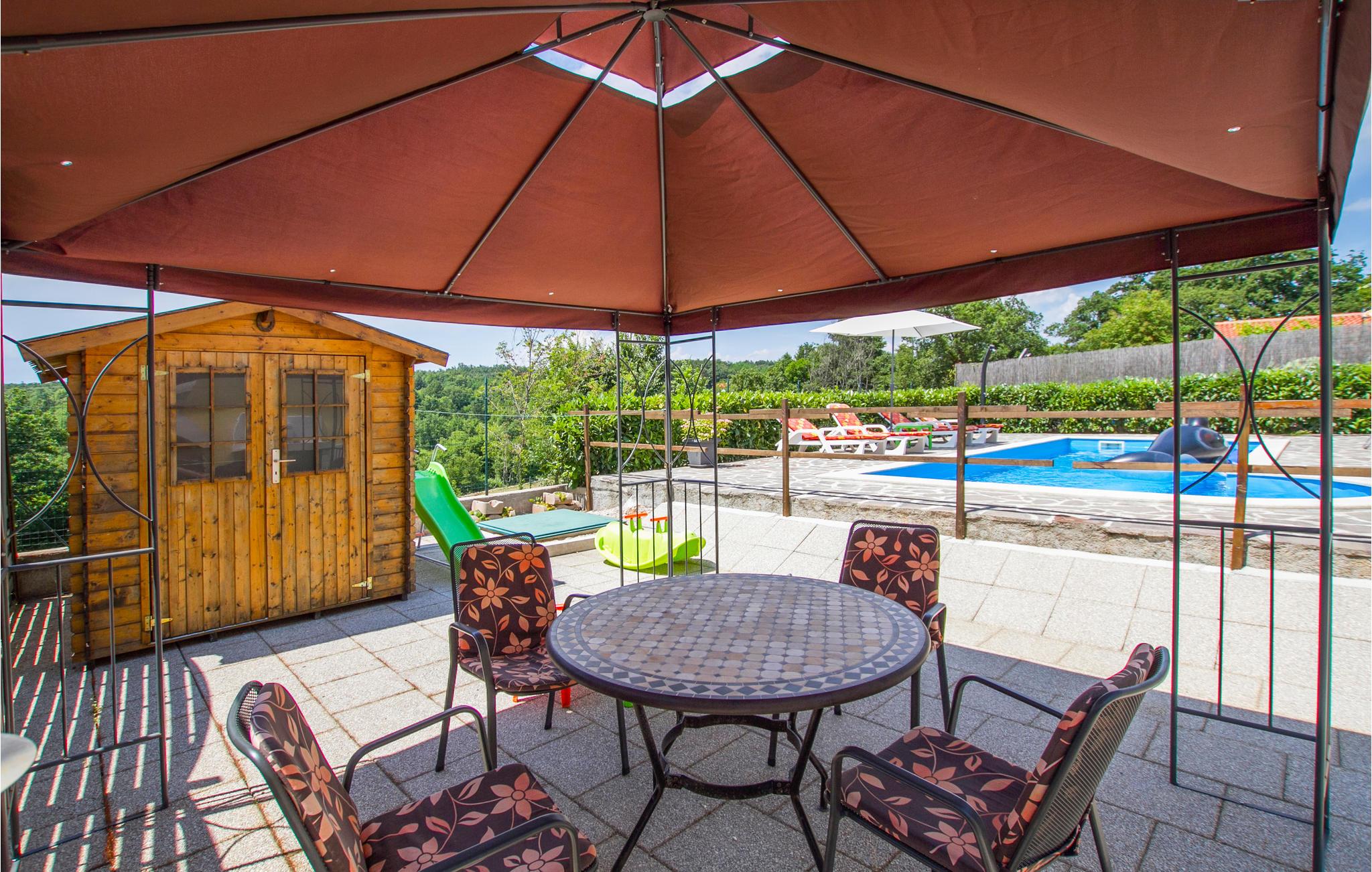 Smukt rækkehus med pool, beliggende i den lille landsby Snašici og tilbyder dig alt, hvad du har brug for til en behagelig ferie. I kælderen er der en opholdsstue med tekøkken og tv med hjemmebiograf. Du kan finde forfriskning fra sommervarmen i poolen med en smukt anlagt solterrasse med liggestole, hvor du kan slappe af med en forfriskende drink. Der er også et udendørs køkken i haven, hvor du kan tilberede dine foretrukne grillretter. Huset er velegnet til to familier eller en gruppe venner, der ønsker at tilbringe deres ferie sammen og lære kendskab til den Istriske halvø.