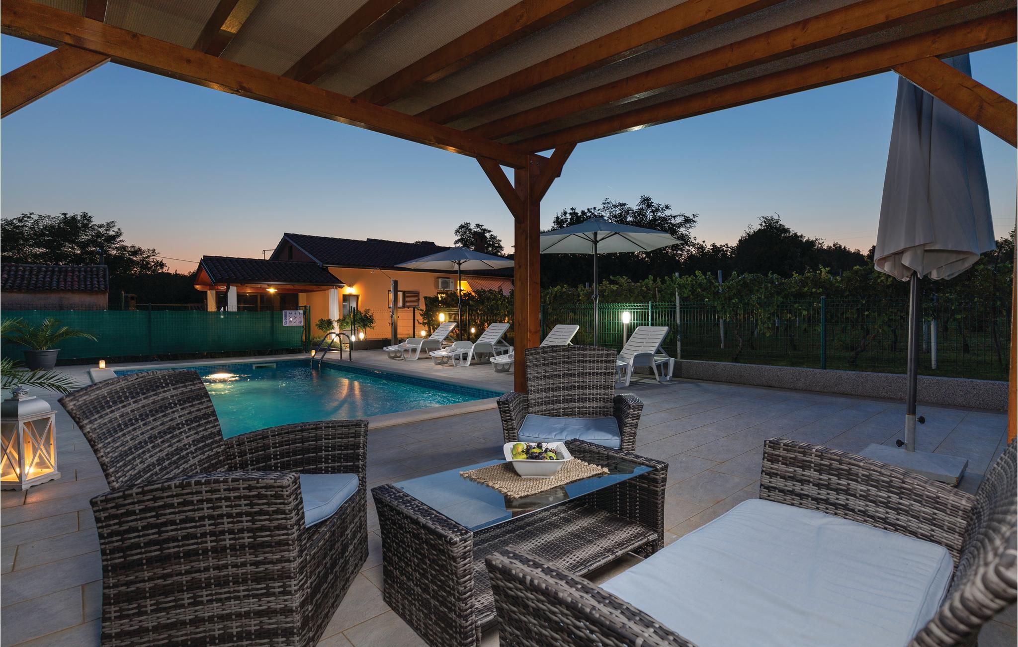 Dette smukke feriehus med pool ligger i landsbyen Topid kun ca. 20 minutters kørsel fra smukke strande. Det er lyst og venligt og har en terrasse og en grill, hvor du kan tilberede lækre retter. Beliggende mellem landsbygaden, vinmarkerne og en eng tilbyder huset masser af plads til hvile og afslapning. På varme sommerdage kan du tage en dukkert i poolen, mens de yngre familiemedlemmer leger ubekymret. Labin er ikke langt væk og tilbyder med sin historiske gamle bydel mange muligheder for shopping, gåtur eller at spise ude.