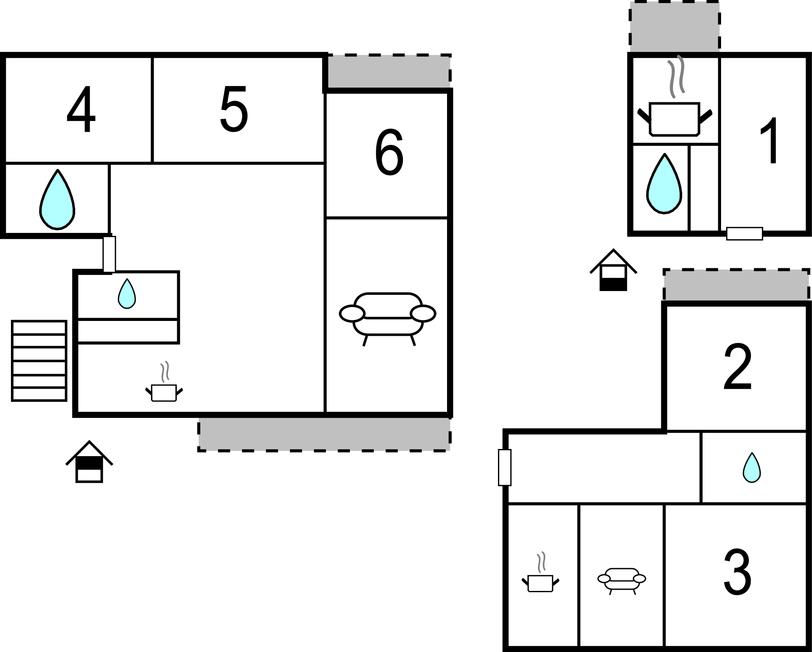 Jeres feriehus byder på ro og afslapning og giver jer mulighed for at koncentrere jer om de væsentlige ting. I huset er der tre lejligheder med egne indgange, to i stueetagen og en på 1. sal. I den ene lejlighed er der plads til 2 personer, i den anden til 4 personer og den på 1. sal er til 6 personer. I hver lejlighed er der både vaske- og opvaskemaskine.