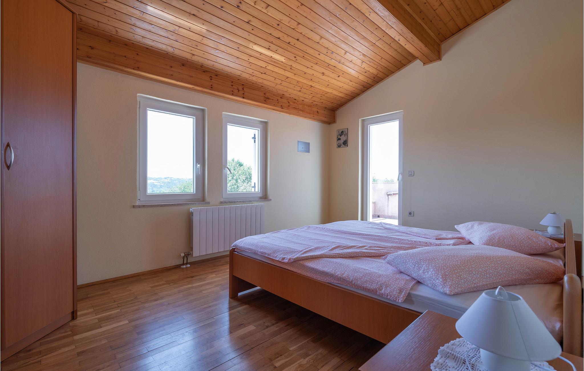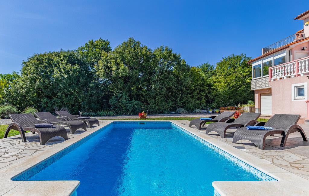 Dette feriehus med pool ligger i Labin, i bydelen Vinez. Det ligger i et skønt område, hvor der er mulighed for masser af privatliv. I kælderen ligger et meget rummeligt, praktisk og veludstyret køkken, der er forbundet med spisestuen og en loggia med glasvæg. I overetagen ligger soverummet der er indrettet med pæne møbler. Etagerne er forbundet med hinanden af en indendørs trætrappe. Fra den store terrasse kan I nyde udsigten over badebassinet og det smukke omkringliggende landskab. En stor, delvis indhegnet have omkranser huset. Det ligger allersidst på vejen, så her kan børnene roligt lege og hygge sig. Inden for en halv times gåtur kommer I til en bakketop, hvorfra I har en fantastisk udsigt over byen Labin. De skønne grusstrande ved Rabac kan nås på få minutters kørsel. Byen er en tidligere fiskerlandsby, og fra havnen kan I komme med på havfisketure samt turistbåde der sejler til bl.a. Dubrovnik, Krka og Venedig.