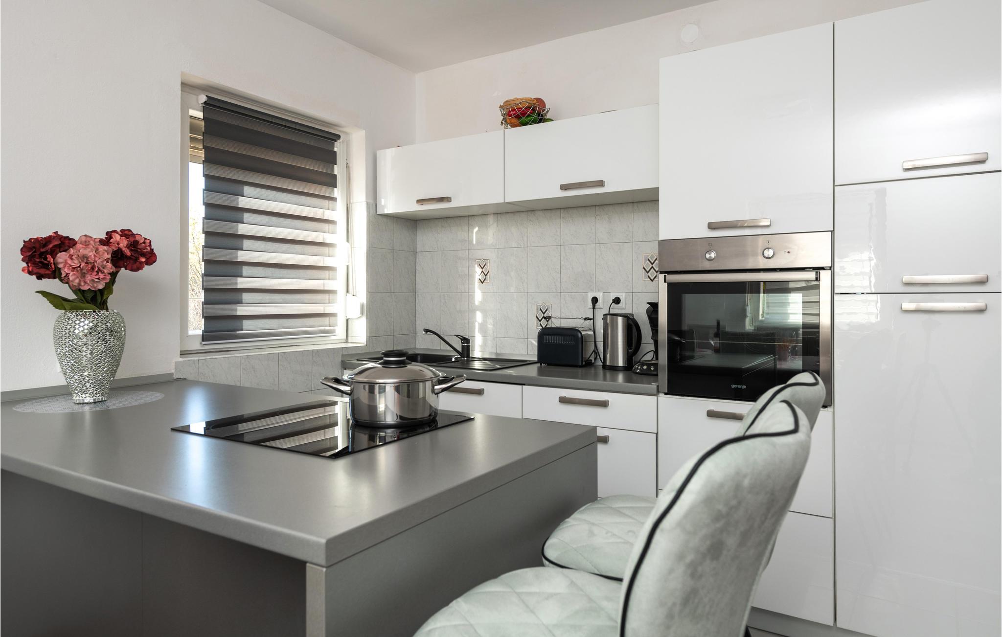 I køkkenet kan du tilberede lækre måltider, hvor du også kan spise, eller hvad med en lækker middag på terrassen med en strålende solnedgang? Der er også gode indkøbsmuligheder og restauranter i byen. Forkæl dig selv med klassisk mad og lokale specialiteter. Med og i dette hus vil du og din familie opleve Kroatien. Der er en swimmingpool i haven, hvor du også kan svømme.