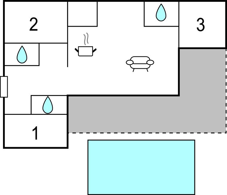 Velkommen til dette indbydende hus, der byder på tre soveværelser, tre badeværelser og en stue med køkken.