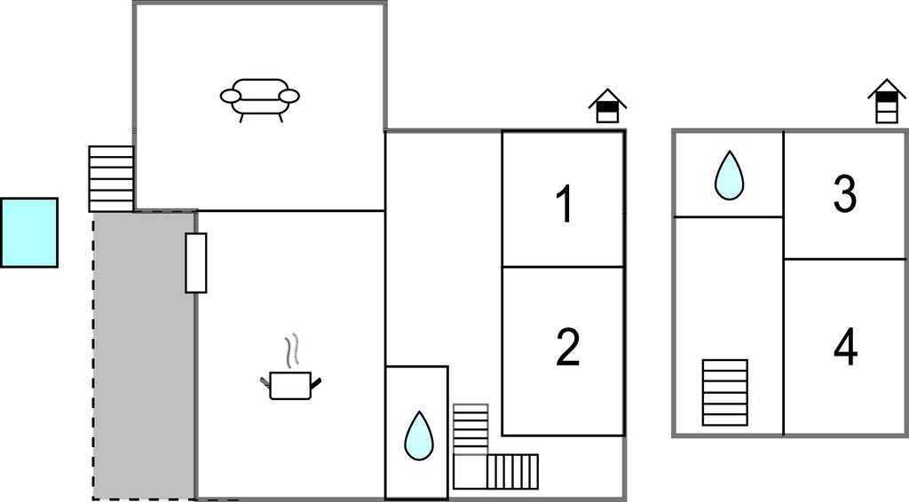 Badeværelse 4m2 (nr. 1) - WC. Varmt og koldt vand. Bruser