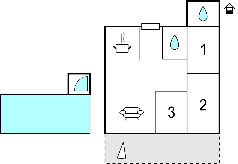 Opholdsstue/køkken - 2 Sovepladser. (Sofa, madras eller lignende).
