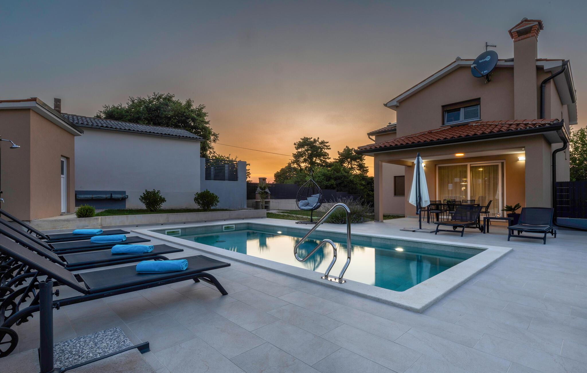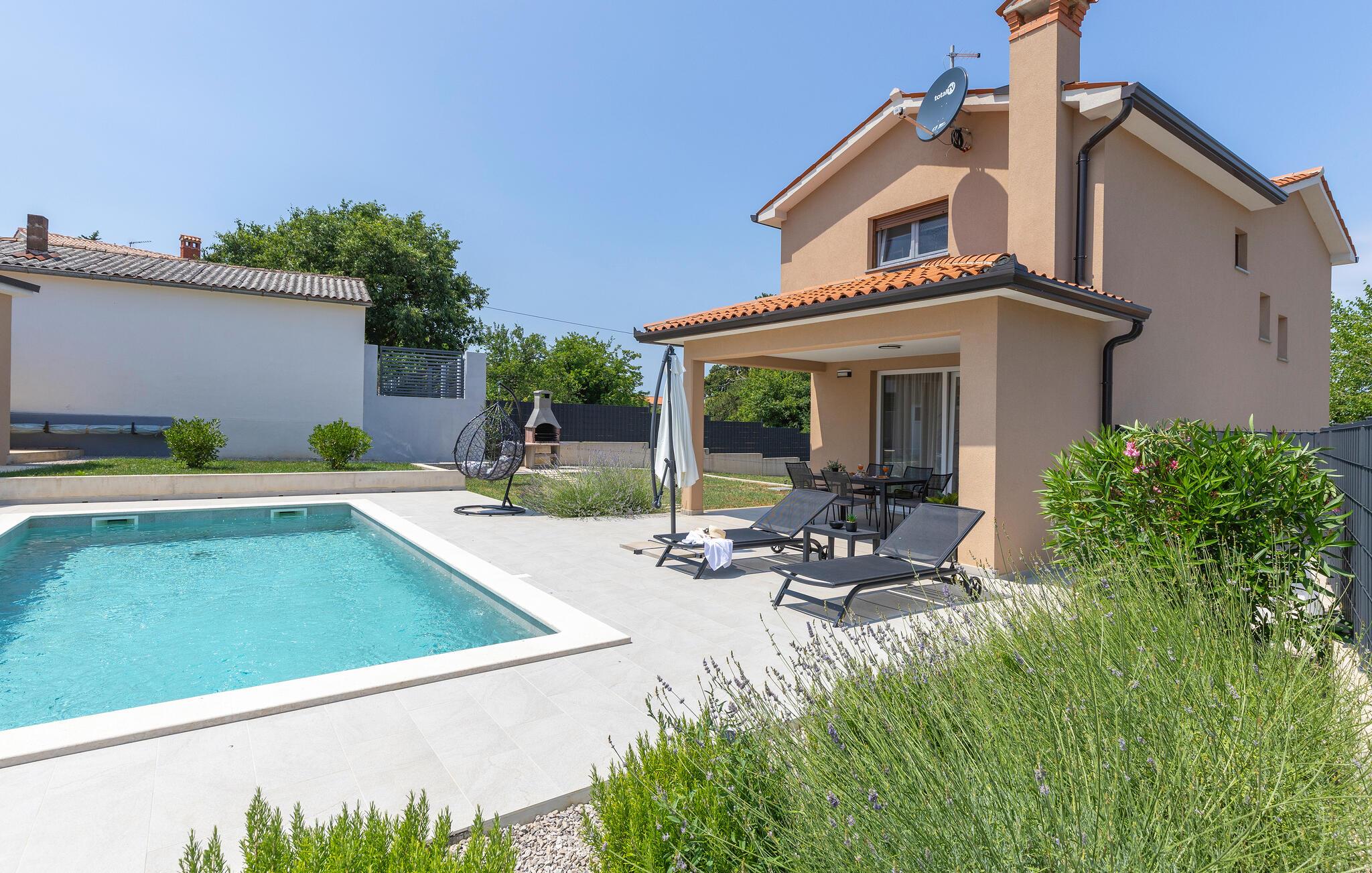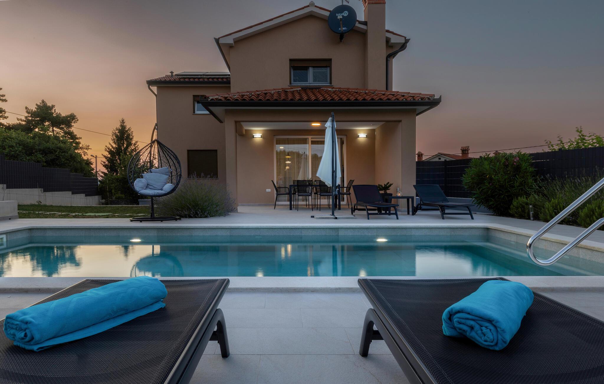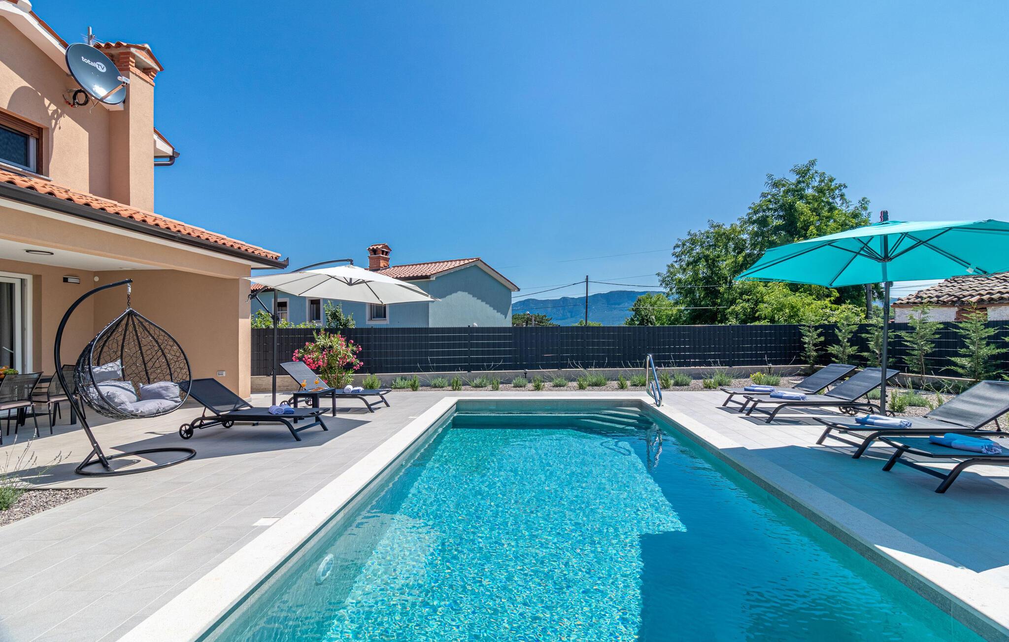 Glæd jer til en vidunderlig ferie i dette smukke, moderne feriehus med swimmingpool i den lille by Boljevici, nær Labin. Her kan I se frem til det komfortable og lyse interiør, der gør lejligheden yderst behagelig at være i. Her kan I slappe af og nyde nogle rolige nætter på første sal og bruge en masse kvalitetstid sammen i stuen og det tilstødende køkken. Herfra kan I gå lige ud på den overdækkede terrasse og ikke mindst poolen. Den smukke udendørs pool er perfekt til at blive kølet dejligt af i sommermånederne. Der er også en grill, hvor I kan tilberede jeres livretter, så se frem til en masse hyggelige timer med god mad ude i det gode vejr.