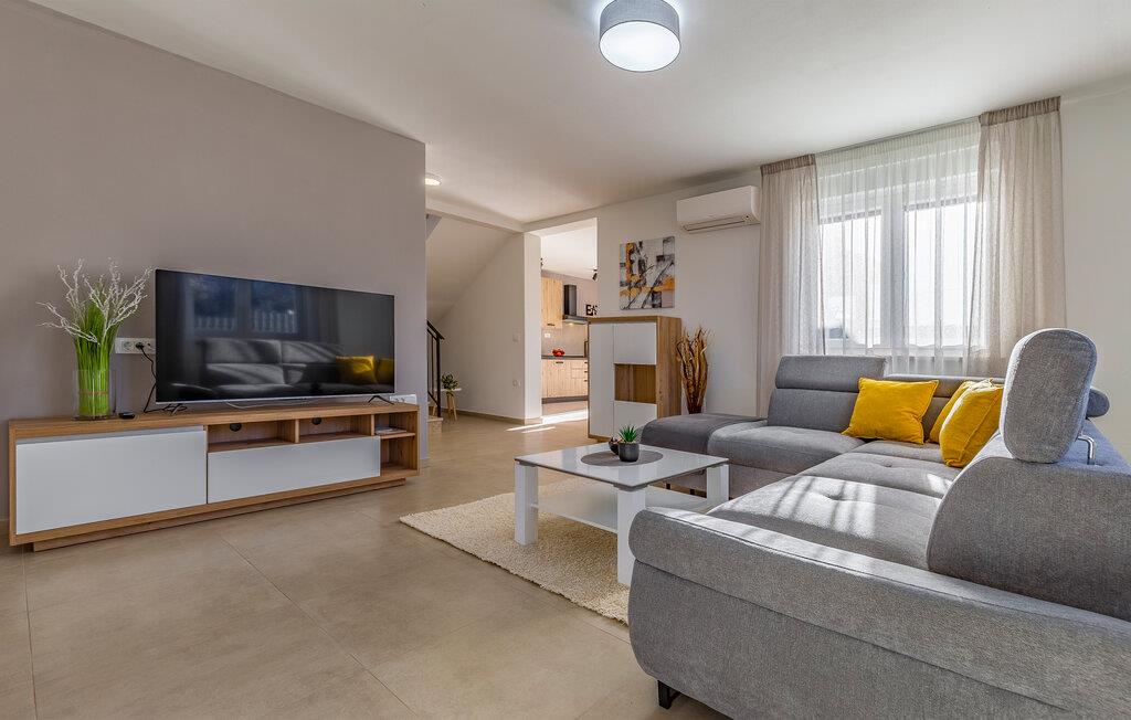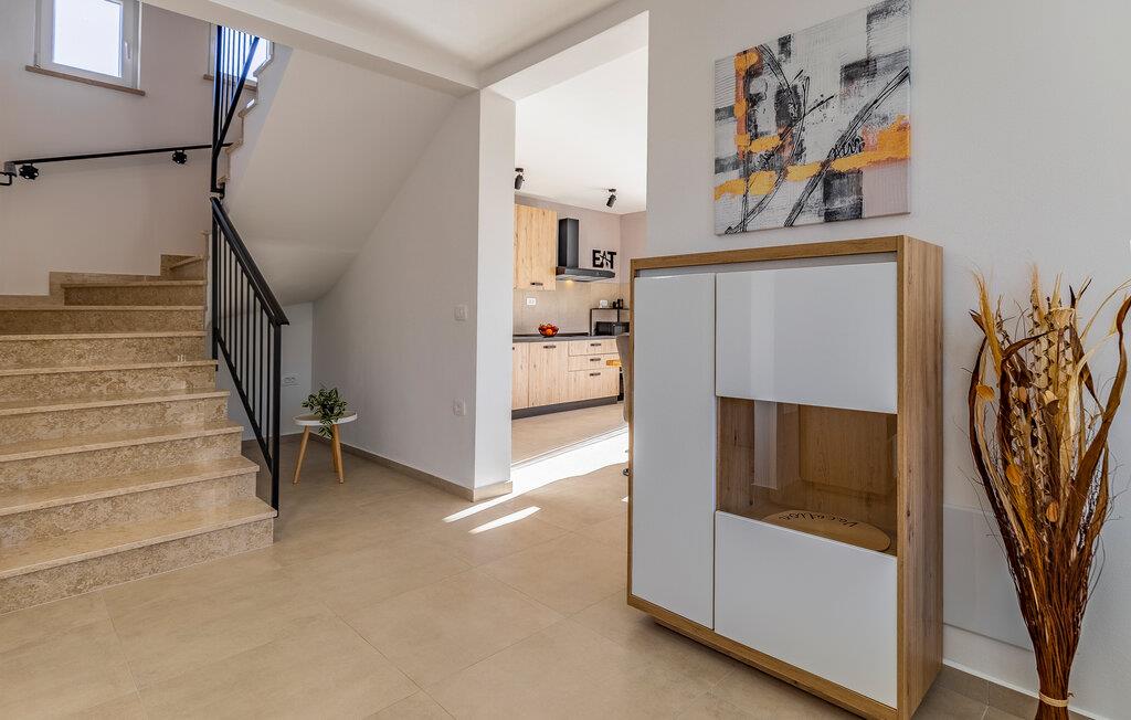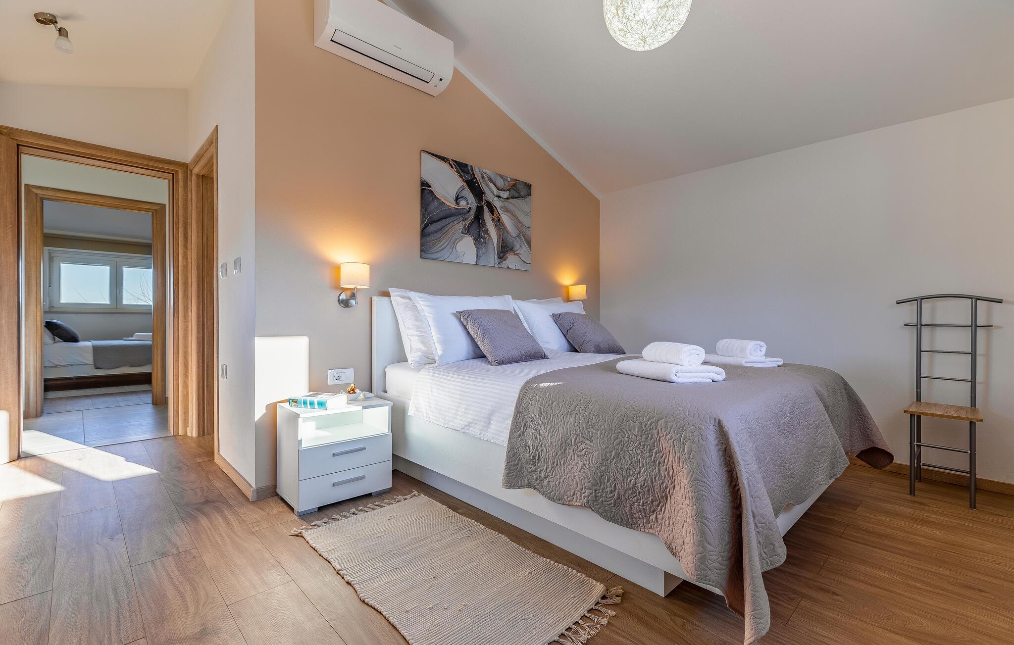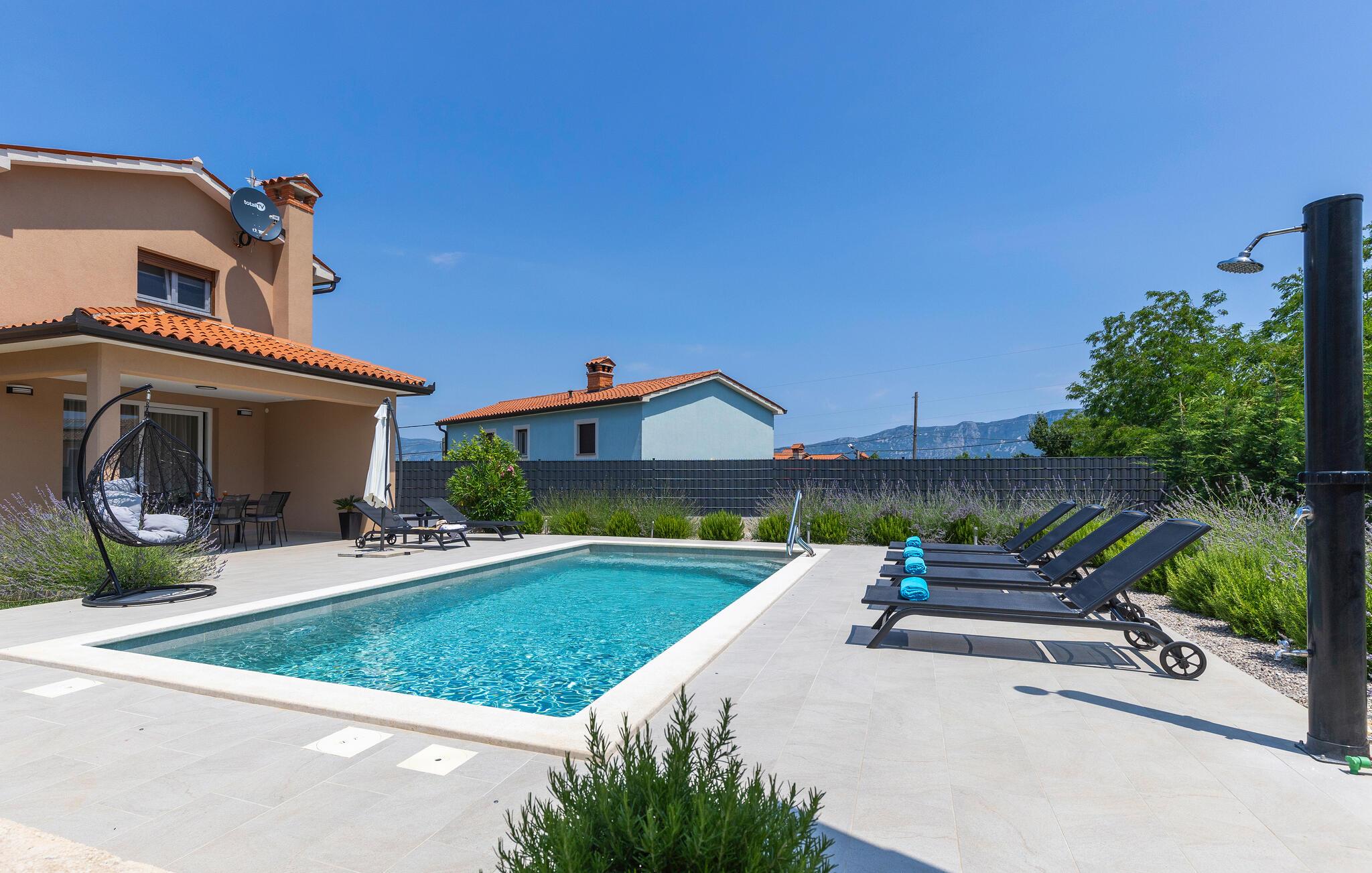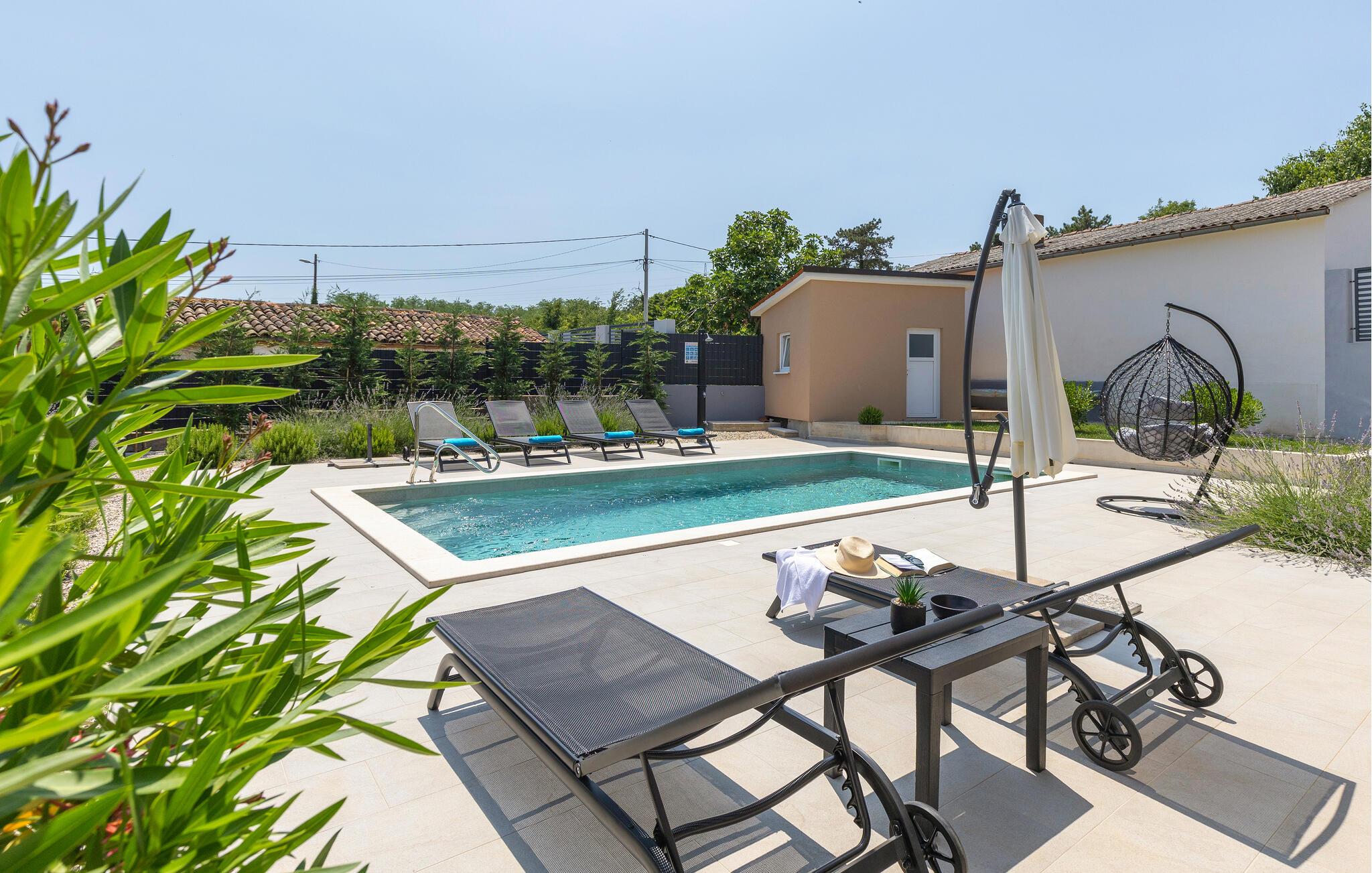 Glæd jer til en vidunderlig ferie i dette smukke, moderne feriehus med swimmingpool i den lille by Boljevici, nær Labin. Her kan I se frem til det komfortable og lyse interiør, der gør lejligheden yderst behagelig at være i. Her kan I slappe af og nyde nogle rolige nætter på første sal og bruge en masse kvalitetstid sammen i stuen og det tilstødende køkken. Herfra kan I gå lige ud på den overdækkede terrasse og ikke mindst poolen. Den smukke udendørs pool er perfekt til at blive kølet dejligt af i sommermånederne. Der er også en grill, hvor I kan tilberede jeres livretter, så se frem til en masse hyggelige timer med god mad ude i det gode vejr.