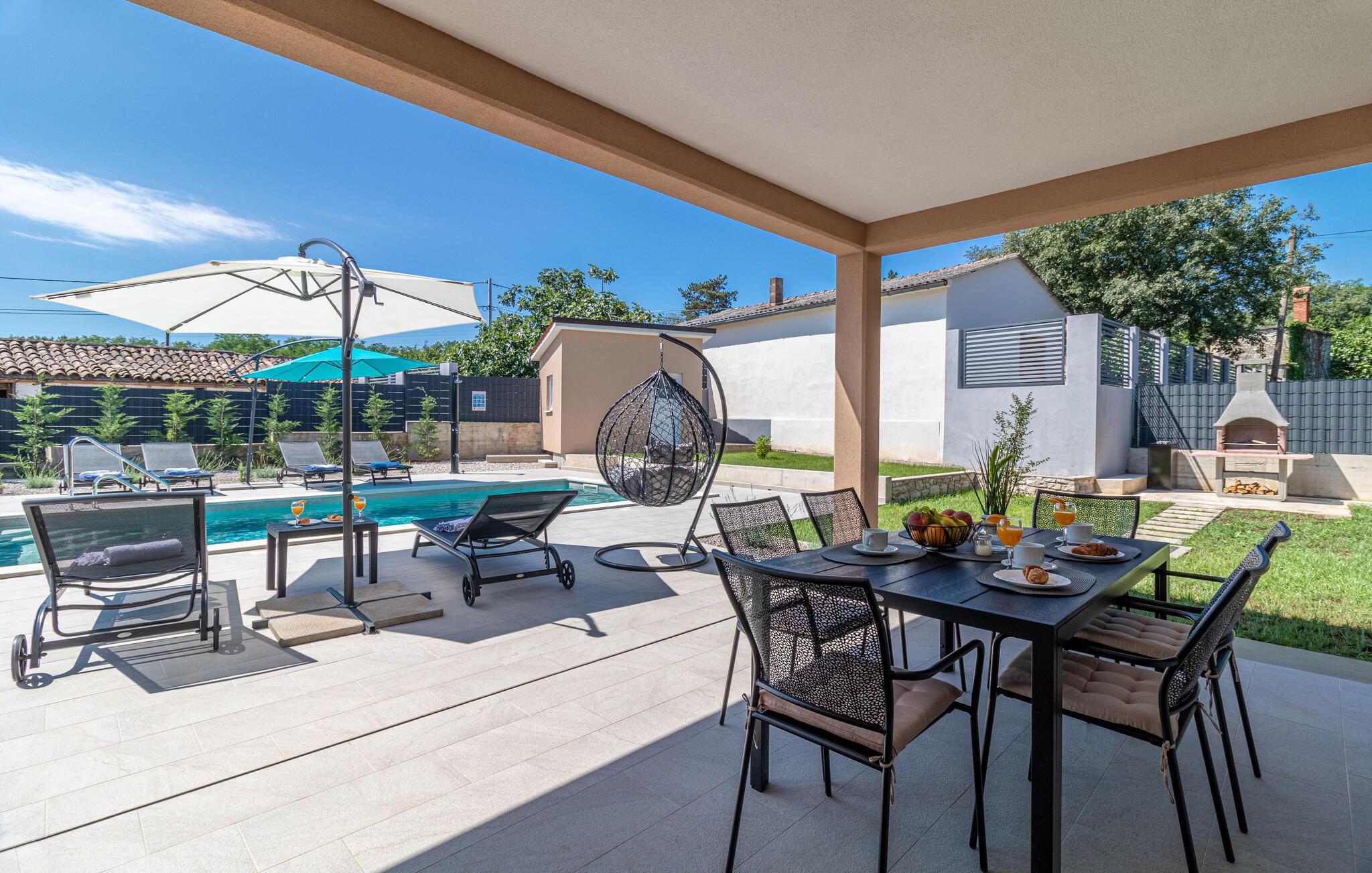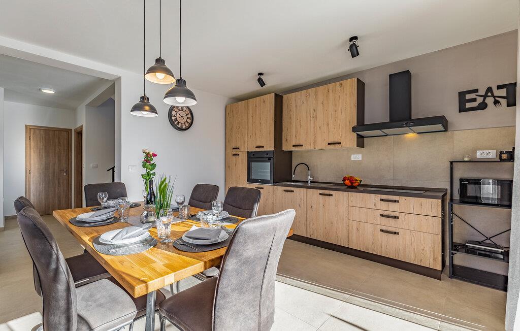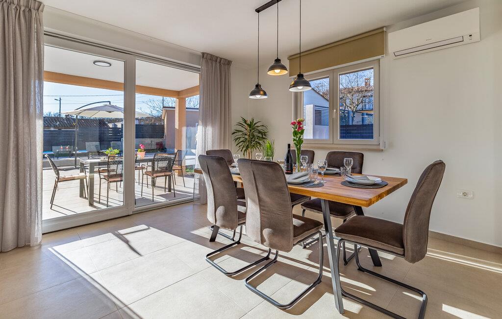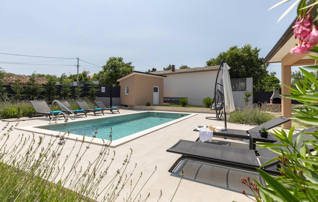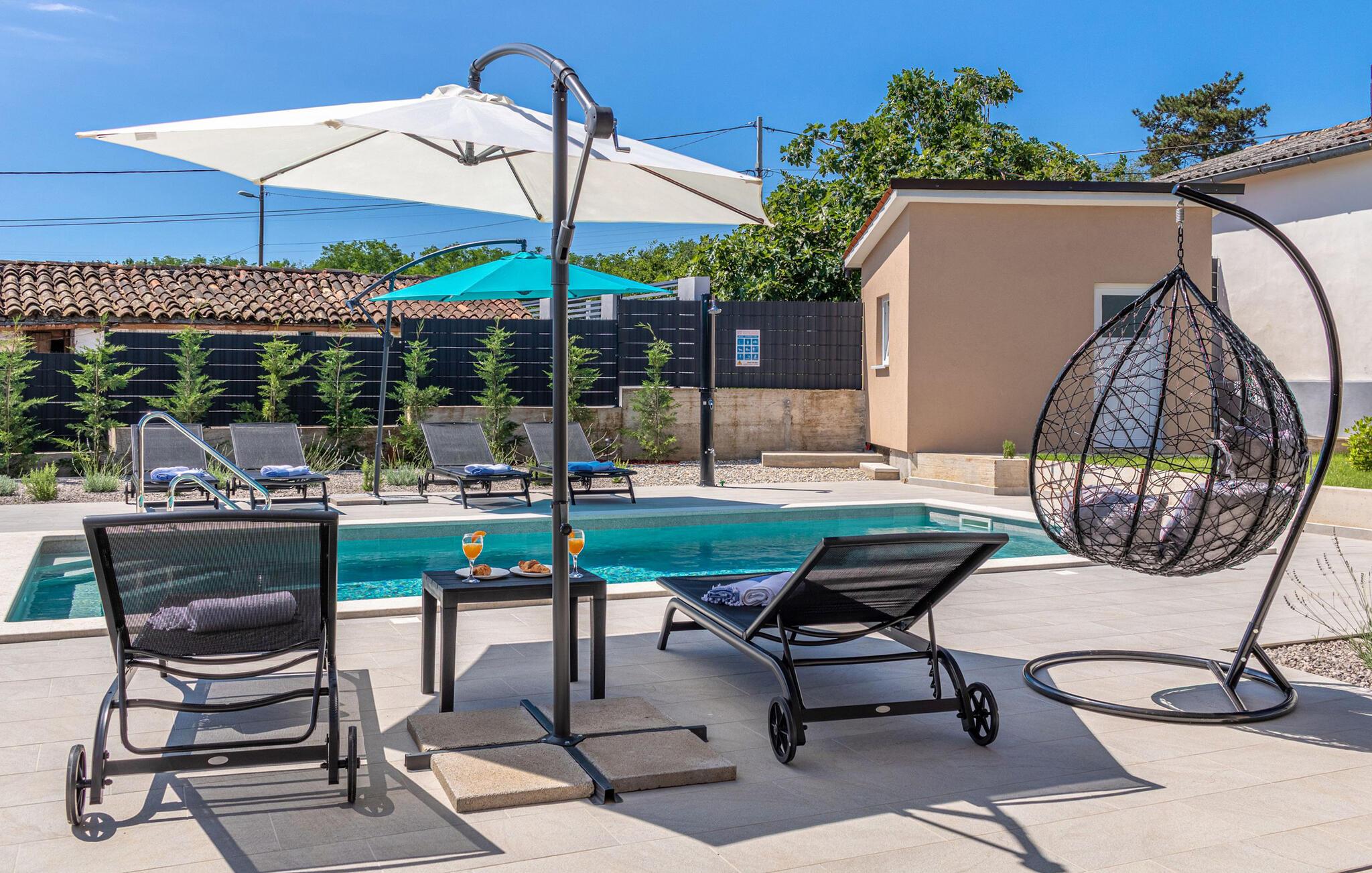 Glæd jer til en vidunderlig ferie i dette smukke, moderne feriehus med swimmingpool i den lille by Boljevici, nær Labin. Her kan I se frem til det komfortable og lyse interiør, der gør lejligheden yderst behagelig at være i. Her kan I slappe af og nyde nogle rolige nætter på første sal og bruge en masse kvalitetstid sammen i stuen og det tilstødende køkken. Herfra kan I gå lige ud på den overdækkede terrasse og ikke mindst poolen. Den smukke udendørs pool er perfekt til at blive kølet dejligt af i sommermånederne. Der er også en grill, hvor I kan tilberede jeres livretter, så se frem til en masse hyggelige timer med god mad ude i det gode vejr.