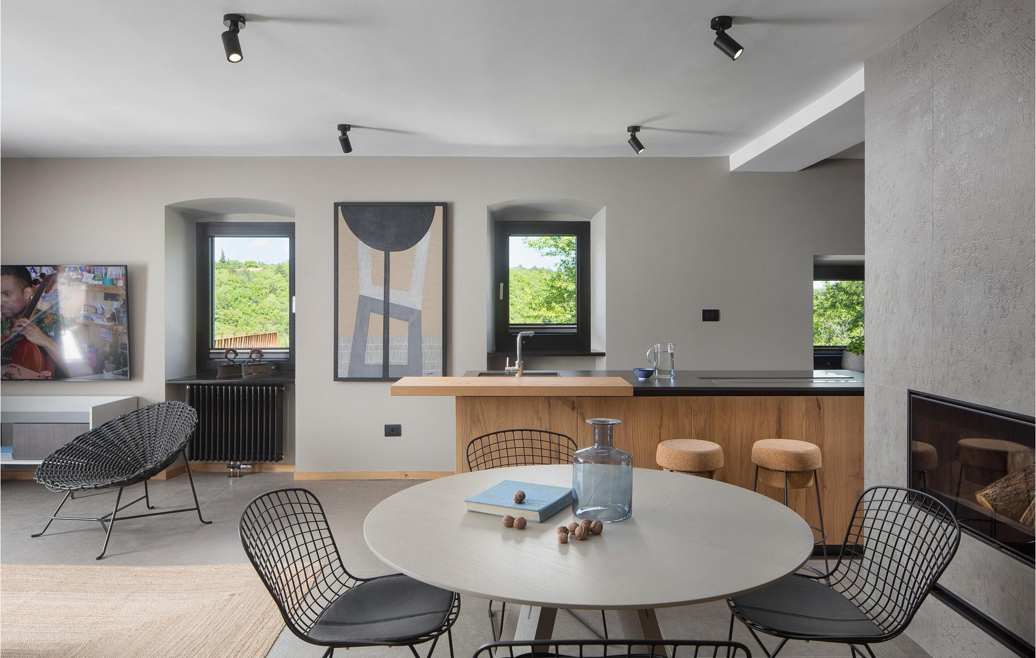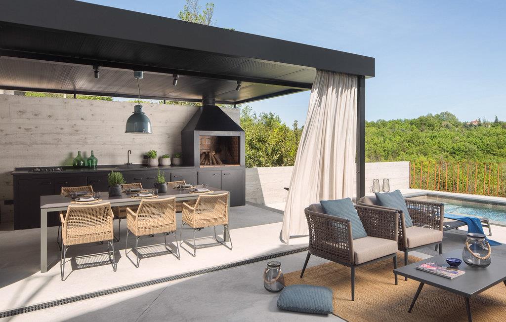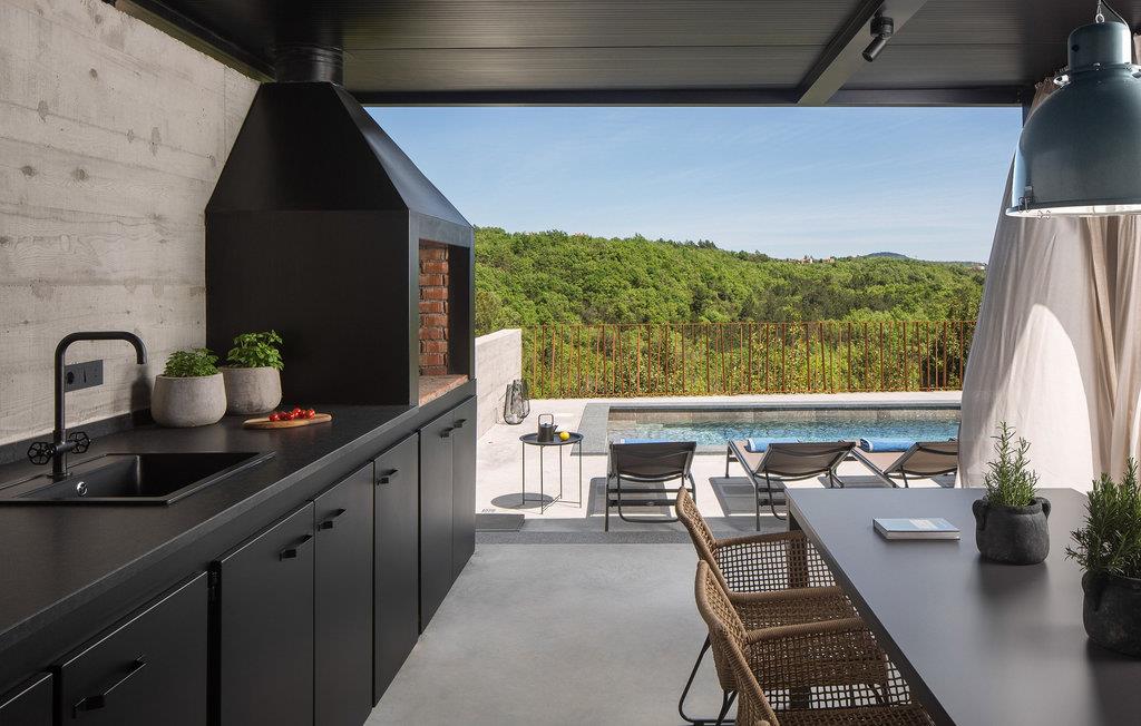 den maleriske landsby Kranjci nær Labin på østkysten af den smukke halvø i Istrien ligger den dejlige Villa Flor. Denne charmerende villa er en sand oase af fred og ro - et ideelt valg for gæster, der ønsker at tilbringe deres ferie væk fra hjemmet omgivet af udsøgt naturlig skønhed og diverse underholdning og aktiviteter i umiddelbar nærhed. På et gulvareal på 120 m² har denne smukke villa to soveværelser, det ene med en komfortabel dobbeltseng og det andet med to enkeltsenge. Begge soveværelser er placeret på øverste etage af villaerne og har en-suite badeværelser, det ene med bruser og det andet med badekar. Der er også et separat toilet i villaen. Den smukke stueetage består af et moderne køkken med topmoderne hårde hvidevarer, hvor gæsterne kan tilberede lækre måltider, en skøn spiseplads og en hyggelig stue med pejs. Fra stuen er der udgang til en rummelig udendørs terrasse med et sommerkøkken, en udendørs kul-/trægrill, en spiseplads og et komfortabelt opholdsområde. På samme terrasse finder gæsterne en smuk opvarmet pool (bredde: 3,2 m, længde: 7,5 m, dybde: 1,4 m), hvorfra de kan nyde en vidunderlig udsigt over den frodige middelhavsvegetation, der breder sig ud strakt foran dem . Det ydre og indre af Villa Flor repræsenterer en vellykket blanding af den traditionelle istriske ånd, manifesteret i brugen af sten og træ som bygge- og dekorative materialer, og moderne detaljer, minimalisme og dæmpede grå og beige toner.Villaens indre er rigt i naturligt lys takket være de store og talrige vinduer, hvilket skaber en luftig, hyggelig og varm atmosfære, der får gæsterne til at føle sig afslappede, som om de var i deres eget hjem. Grunden til Villa Flor strækker sig over 327 m² og er omgivet af en stenmur på tre sider, mens siden af villaen er omkranset af en smuk hæk. Den smukt anlagte indre gårdhave med komfortable siddepladser indbyder til at slappe af i den friske luft på milde sommeraftener. Vælg Villa Flor til din næste ferie og lad dig fortrylle af Istriens utallige charme. Lej en cykel og udforsk, hvad området har at byde på og dets kulturelle og naturlige skønheder. Engager dig med gæstfrie lokale, der med glæde vil dele historien, interessante skikke og levevis på denne farverige halvø. Besøg middelalderbyen Labin, der ligger på en bakke over turistbyen Rabac. Labins ekstremt rige kulturelle og arkitektoniske arv afspejles i de fortryllende bygninger, skulpturer og kaffebarer spredt ud over den gamle bydel. Her finder du små, elegante butikker, kunststudier, smukke udsigter og romantik på hver tur. Gå heller ikke glip af muligheden for at besøge Rabac, der bærer navnet "Adriaterhavets perle" og er kendt for sin smukke natur, småstensstrande og krystalklare hav. Tilbring en uforglemmelig ferie i Villa Flor i Istrien, som du vil huske for evigt! * Poolopvarmning er gratis i april, maj, juni, september og oktober. For reservationer foretaget i andre perioder end ovenstående: Poolen kan opvarmes efter anmodning, og der kan forekomme ekstra gebyrer. Kæledyr er tilladt på denne ejendom efter ejerens skøn eller mod et gebyr.