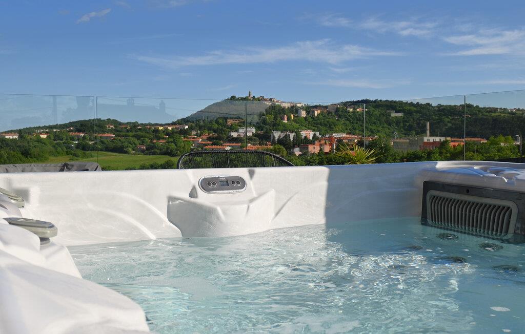 Der er en ekstra seng i kælderen. Værelset på første sal har direkte adgang til den udendørs terrasse, hvorfra I kan nyde det udendørs spabad til fem personer.