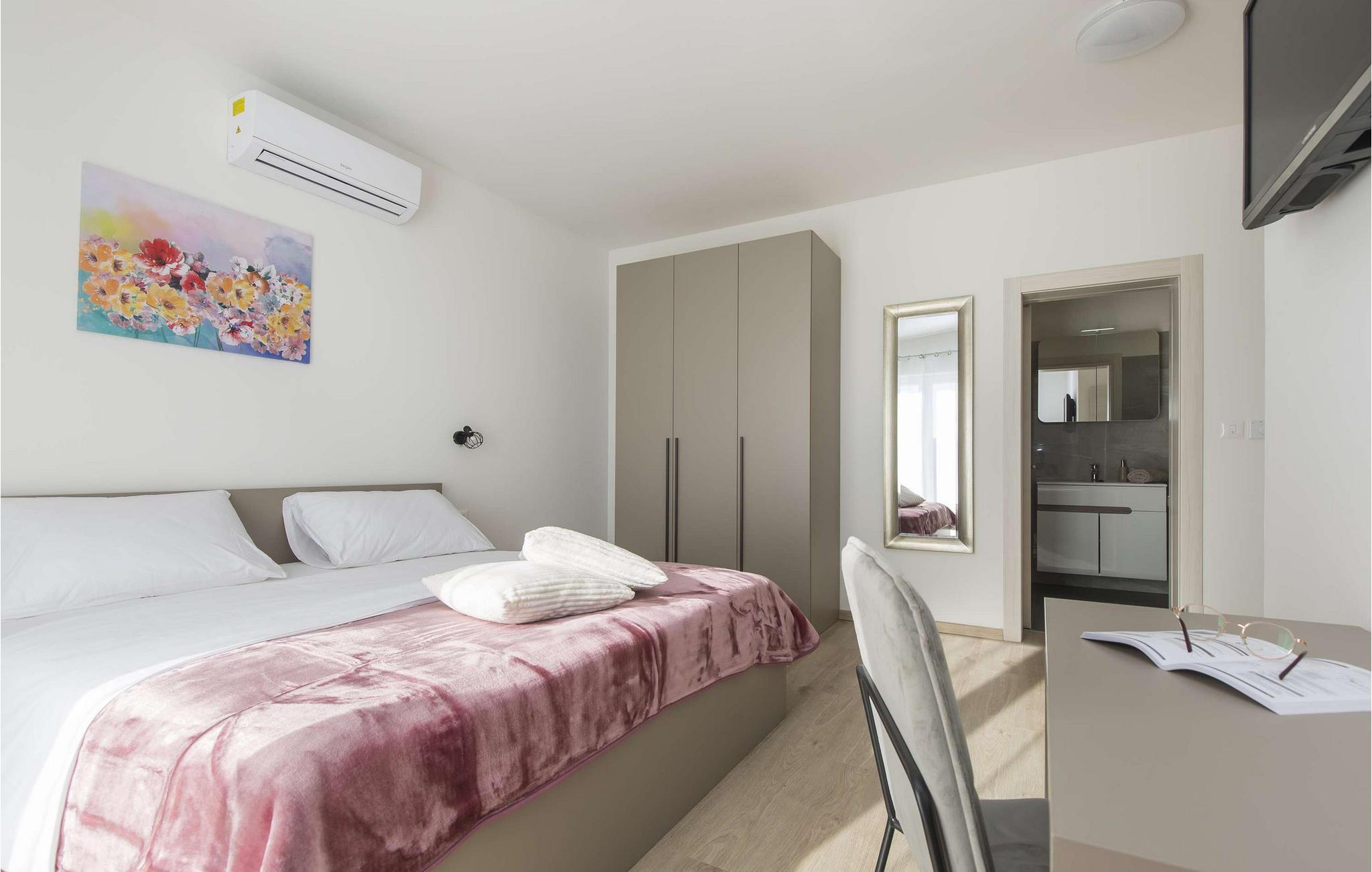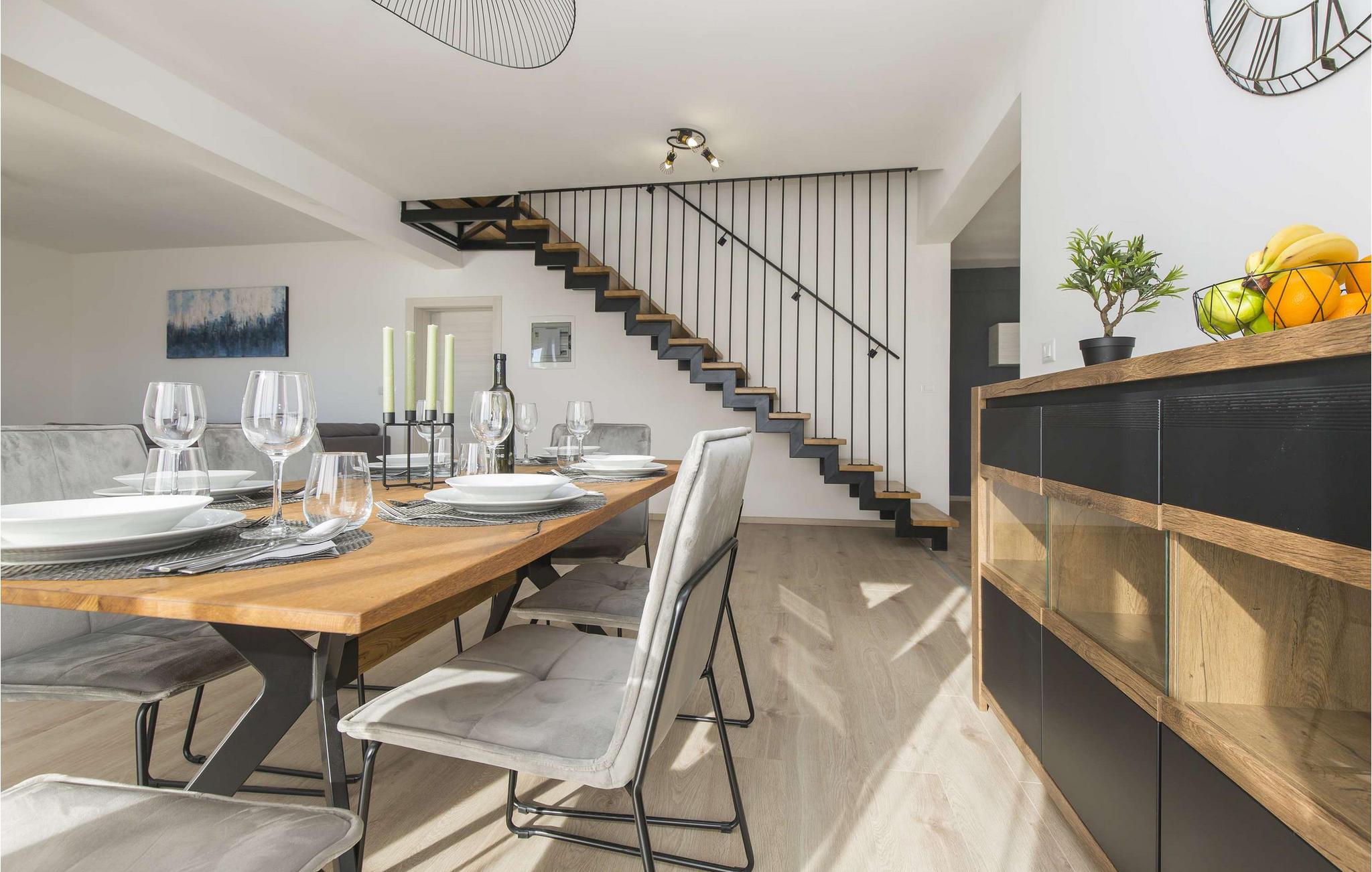 Beliggende i Istrien, i byen Labin, er Villa Megi Istra klar til at tilbyde det bedste af det bedste og alt hvad du behøver for en ideel og eventyrlig ferie! Når du kommer til Villa Megi Istra, vil du lære smukke Istrien at kende gennem et rigt gastronomisk udbud og smukt, fredeligt landskab. Bygget i 2023 i en moderne arkitektonisk stil, er denne moderne skønhed klar til at åbne sine døre for maksimalt 6 gæster, der tilbyder 157 m2 boligareal. Samtidig er de komfortabelt indkvarteret i 3 soveværelser med dobbeltsenge (200x180) på øverste etage. Hvert soveværelse har sit eget badeværelse med bruser. I stueetagen er der et fuldt udstyret køkken med vinkøleskab, hvor du kan tilberede lækre måltider til venner og familie og smage dem i spisestuen med et spisebord med plads til 6 personer. I stuen er der en hjørnesofa, ideel til eftermiddagshvil og til at se tv. Fra stuen har du direkte udgang til den udendørs terrasse, hvor du bliver mødt af et overdækket udendørs spisebord med siddepladser. Den 40,5 meter store og 1,5 meter dybe swimmingpool giver en behagelig forfriskning. På solbadeområdet ved siden af poolen står 6 liggestole til din rådighed, hvor du kan hvile krop og sind helt. Der er også en udendørs kul- eller brændegrill på terrassen. Som ekstra indhold byder villaen på 1 separat toilet, vaskemaskine og strygejern. Villa Megi Istra er helt indhegnet og tilbyder 3 parkeringspladser udenfor gården. Attraktioner og lokale aktiviteter inden for rækkevidde omfatter vinture eller olivenolieture, vandsport, cykling, dykning, golf eller besøg af byer og historiske monumenter. Istrien er fuld af skjulte skatte, og Labin er bestemt en af dem. Du får mulighed for at smage det gastronomiske tilbud, der vil blæse dit sind med god prosciutto, ost og trøfler. Gå heller ikke glip af at smage en dråbe olivenolie og prisvindende istriske vine som Teran eller Merlot. Labin har en smuk bymidte omgivet af befæstninger med talrige bevarede paladser og kulturelle monumenter, der kombinerer fortid og nutid på en usædvanlig måde. Du kan spise frokost eller middag på restauranter eller pizzeriaer, hvor du kan spise gode kager og drikke kaffe i skyggen af den smukke terrasse på den centrale plads i den gamle bydel i Labin. Velkommen til Villa Megi Istra! Bemærk venligst, at denne ejendom ikke accepterer ungdomsgrupper eller polterabends. En ungdomsgruppe i denne ejendom består af personer under 30 år. Book ikke denne ejendom, hvis du er en ungdomsgruppe eller polterabend, da din reservation vil blive afvist efter reservationen, hvilket også kan være tilfældet ved ankomst til overnatningsstedet eller under dit ophold, og du vil ikke modtage en refusion.