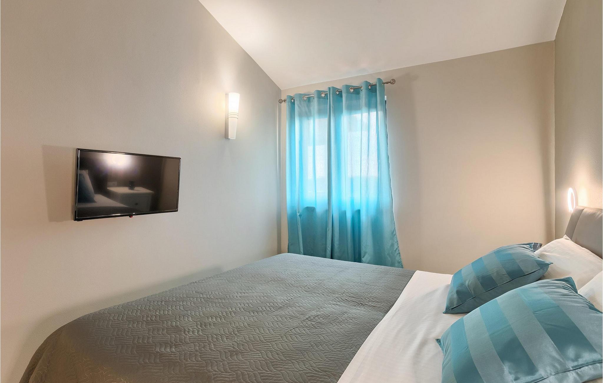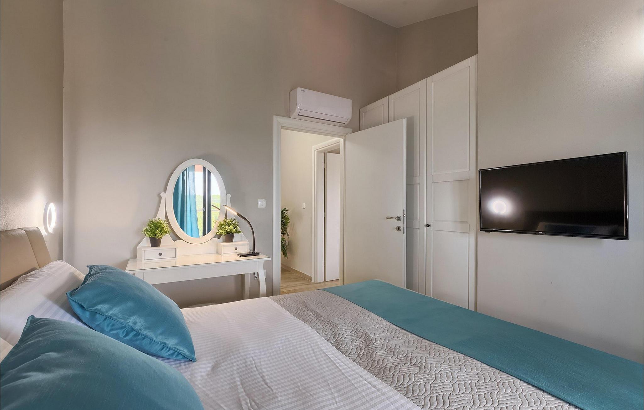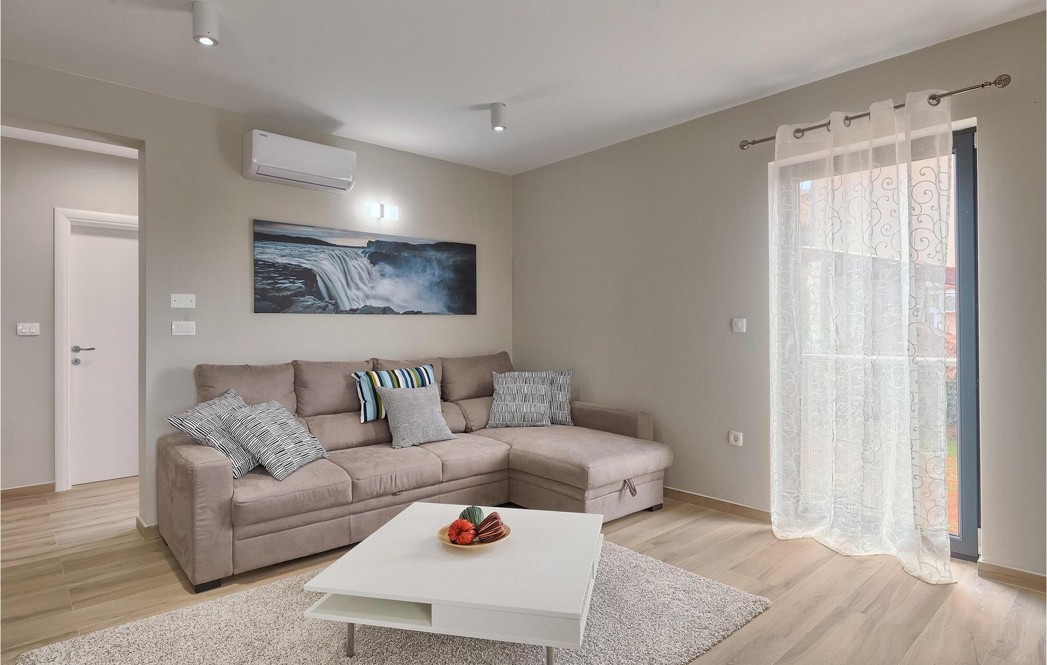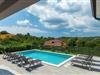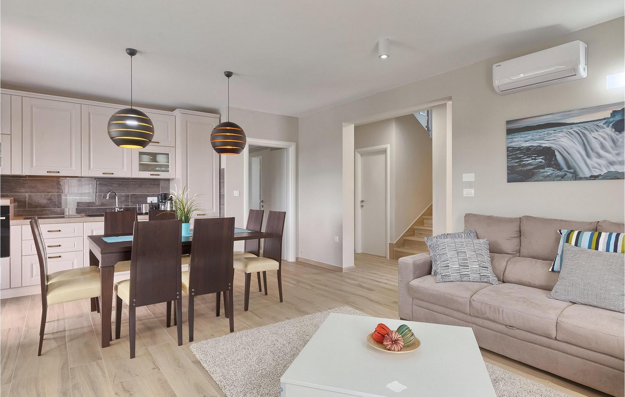Den moderne villa Fiolla med privat pool ligger i den lille istriske by Labin og er et ideelt valg til en ferie væk fra byens stress og jag. Villaen ligger på en grund på 600 kvadratmeter og har i alt plads til 8 gæster. Når du træder ind i villaen, vil du straks føle dig godt tilpas takket være de lyse toner, som villaen er indrettet i. Stueetagen af villaen består af et åbent rum med stue, spisestue og fuldt udstyret køkken, toilet, soveværelse og et badeværelse. Fra spisestuen kan I gå gennem skydedøren ud på terrassen og nyde udsigten over villaens omgivelser. På første sal er de resterende 3 soveværelser og to badeværelser. Alle soveværelser er dobbeltværelser, har tv og aircondition, og det ene har en sovesofa.