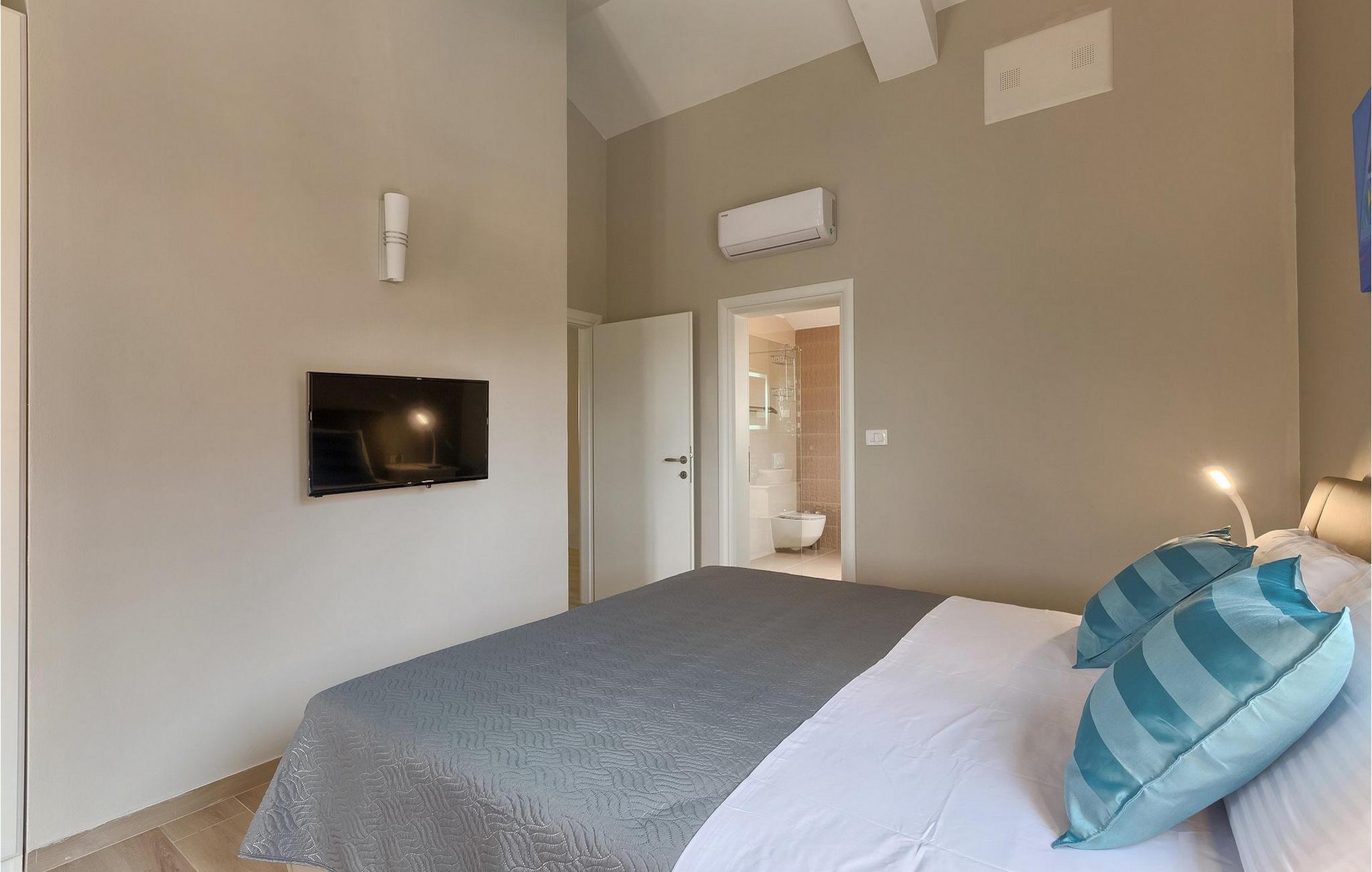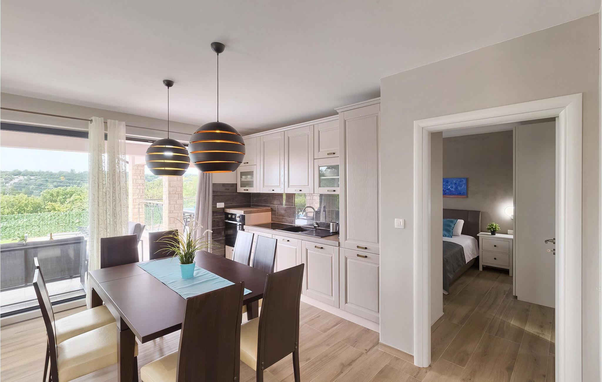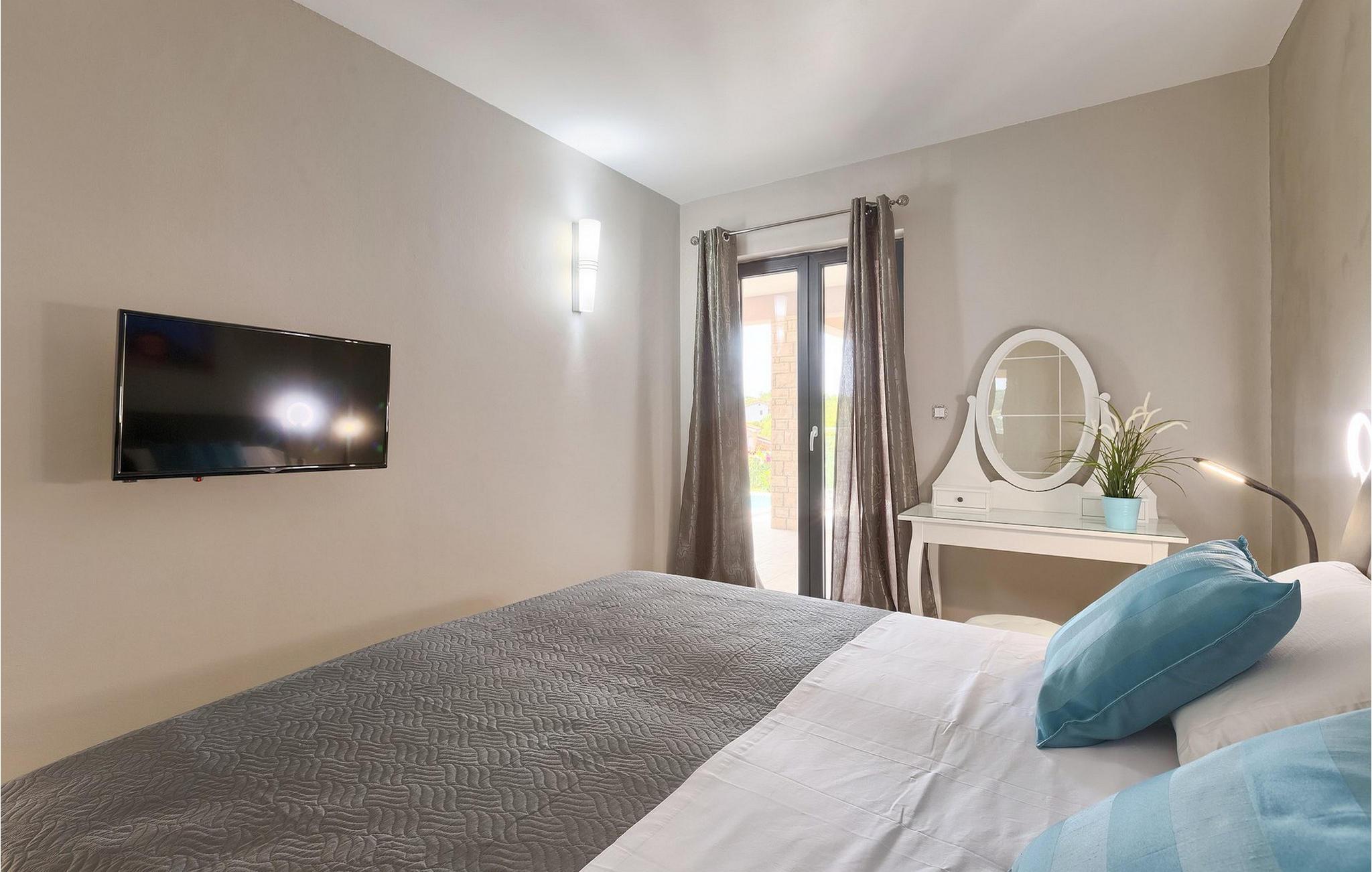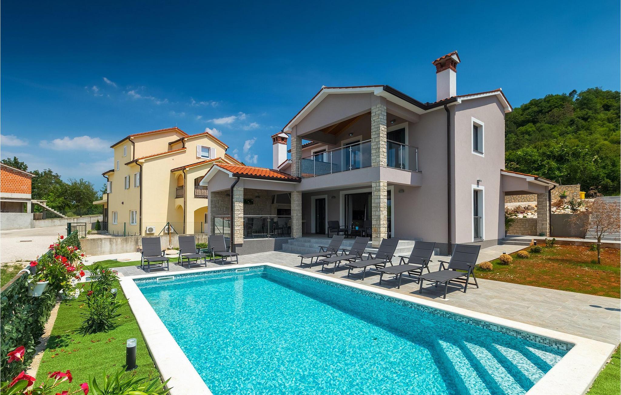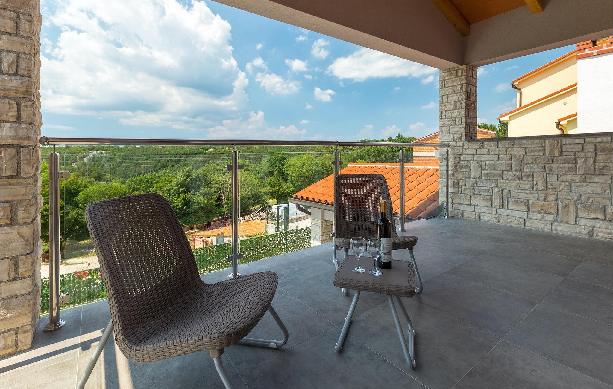 Den overdækkede terrasse med spisebord er ideel til udendørs spisning, hvilket er særligt rart i sommermånederne. Herfra har du udsigt til poolen, hvorom der er liggestole. Vi er sikre på, at du vil nyde at tilbringe tid her, nyde solen og svømme. Der er også en grill til rådighed for villaens gæster, hvor du hurtigt kan tilberede et lækkert måltid :) Denne smukke villa tilbyder en god base, hvorfra du kan udforske denne uspolerede region, og er nedsænket i det herlige, bølgende istriske landskab, men kun en stenkast fra Adriaterhavets smaragdblå vand og afsondrede naturlige strande. Den gamle bydel Labin ligger på den østlige side af halvøen Istrien, omkring 40 km fra Pula og 60 km fra Rijeka. Det er et sted rigt på atelier og det ideelle sted at nyde kunst på hvert trin gennem byen. Rabac, en tidligere fiskerby, er stedet, hvor du kan finde gode strande og restauranter.
