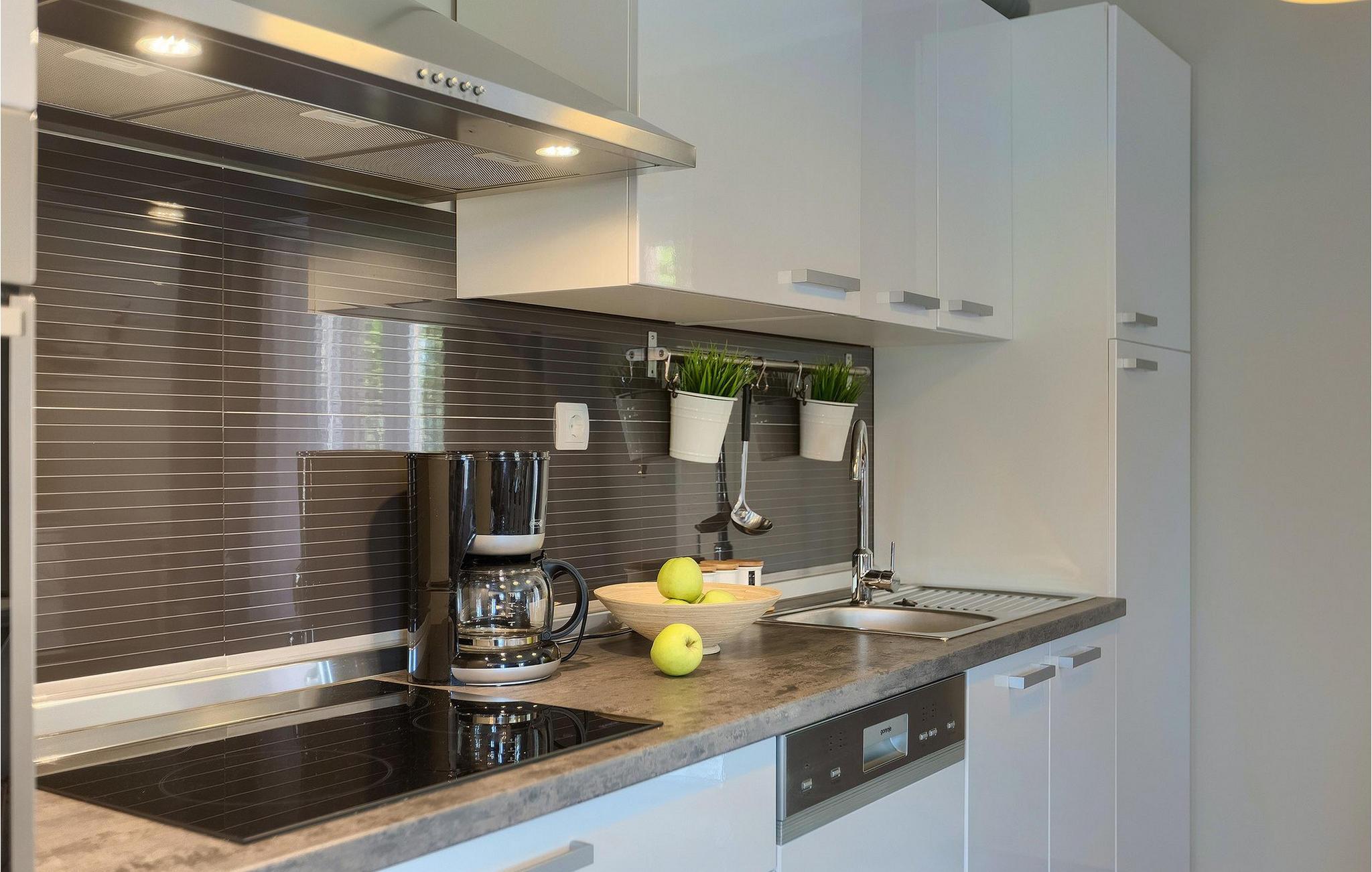Der er også en grill, hvor du kan tilberede et lækkert måltid og servere det i det fælles udendørs køkken med et rummeligt spisebord.