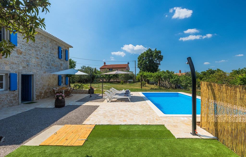 Drømmer du om en afslappende ferie midt i smukke naturomgivelser, kan Villa Laura Ripenda være lige hvad du har brug for. Villaen ligger i en lille landsby i Istrien, mens de første strande ved det smukke Adriaterhav kun ligger 3 km fra villaen. Villa Laura Ripenda er moderne indrettet indvendigt, mens dens traditionelle charme på den anden side er blevet bevaret. Denne dejlige villa har 2 soveværelser med dobbeltsenge, hver med eget badeværelse, beliggende på 1. sal. I stueetagen er der en stue, der er luftig, med masser af lys centreret på en stor glassten med udsigt over haven og poolen. Nyd at spise din aftensmad på den overdækkede terrasse og tilbered lækre grillmåltider. Der er en stor privat pool, hvor du kan bruge tid på at slikke det varme solskin. Lavet kun til en ferie, vil denne smukke villa Laura Ripenda sætte dig i en afslappet istrisk stemning! Book din villa til tiden. Den smukke villa Laura Ripenda ligger i den lille istriske by Ripenda Kras, ikke langt fra byerne Labin og Rabac. Kun 3 km fra villaen ligger den første strand, men Istrien byder på en håndfuld andre smukke strande langs kysten. Rabac byder på en række smukke stenstrande, der er blandt de bedste strande i Istrien. En bred vifte af vandsport tilbydes her. Vi anbefaler en romantisk gåtur langs promenaden langs kysten. Hvis du vil til større byer, foreslår vi et besøg i den historiske by Pula og en rundvisning i Pula Arena samt andre værdifulde seværdigheder. Vi anbefaler klart, at du tager på en heldagstur til Ucka Nature Park eller Brijuni National Park.