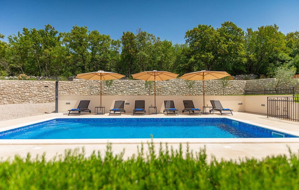 Den private swimmingpool er foran villaen og rundt om den er der liggestole, hvor du kan hvile dig efter at have svømmet i poolen eller nyde solens stråler.
