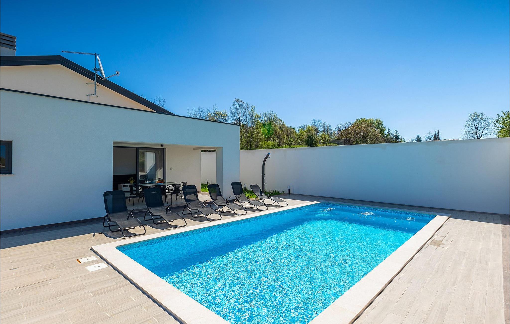 Den rummelige stue og spisestue med et fuldt udstyret køkken er lyse og luftige på grund af de store glasflader, og de har også direkte adgang til terrassen med den forfriskende private pool og hyggelige liggestole. Et spisebord til al fresco spisning og en gasgrill er også på terrassen. Villa Mila Zartinj er perfekt skabt til en afslappende ferie med dine kære. De nærmeste butikker, restauranter og caféer ligger i Labin, mens en kort køretur er nødvendig for at nå og opdage dejlige strande.Villa Mila Zartinj er opkaldt efter den samme navngivne lille landsby i Istrien, kun ca. 4 km væk fra Labin. Labin er en lille by på en bakketop og også det historiske og administrative centrum i det østlige Istrien. Området er perfekt for historie- og kunstentusiaster, men byder også på restauranter og barer med fremragende lokale produkter. Labins badeby er Rabac, engang en fiskerby og i dag et populært turistmål kendt for sine smukke stenstrande. Under dit ophold bør du også besøge små maleriske middelalderbyer i det centrale Istrien. Ikke langt væk, men bestemt en dagstur værd!
