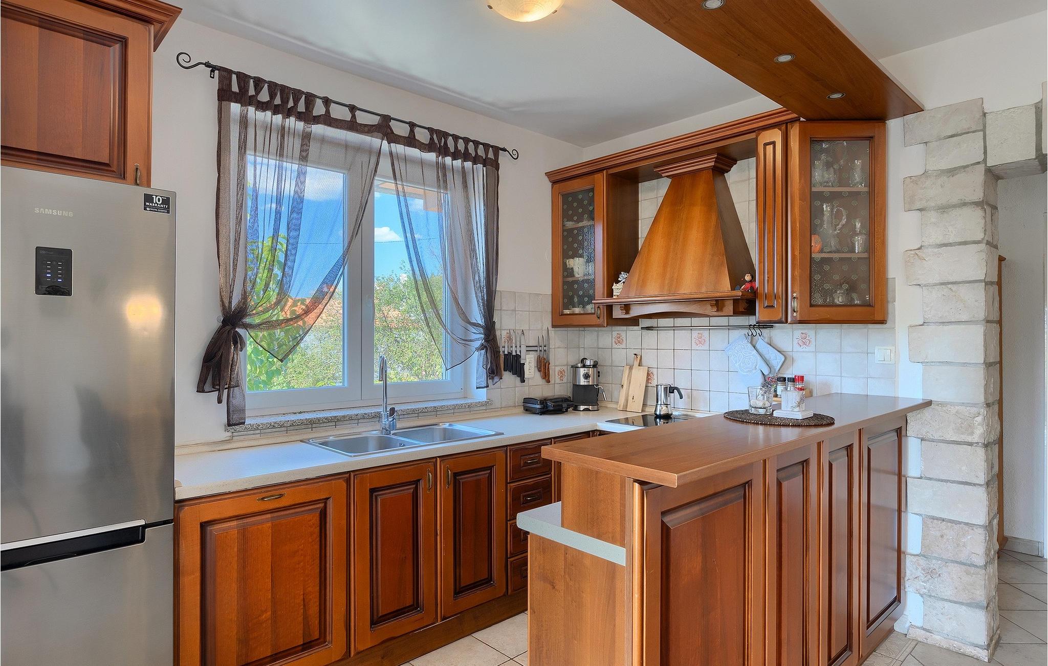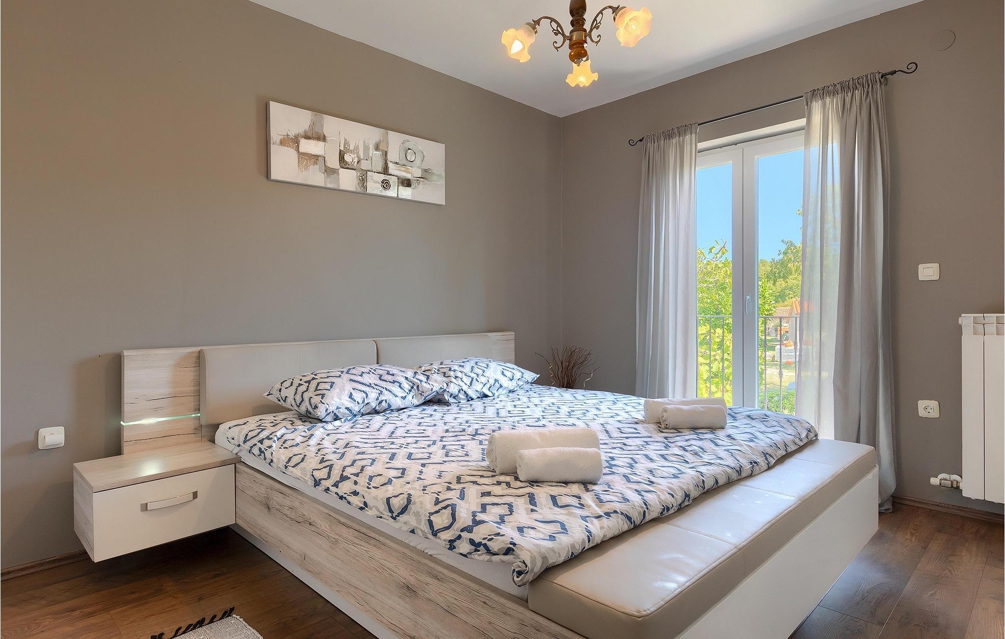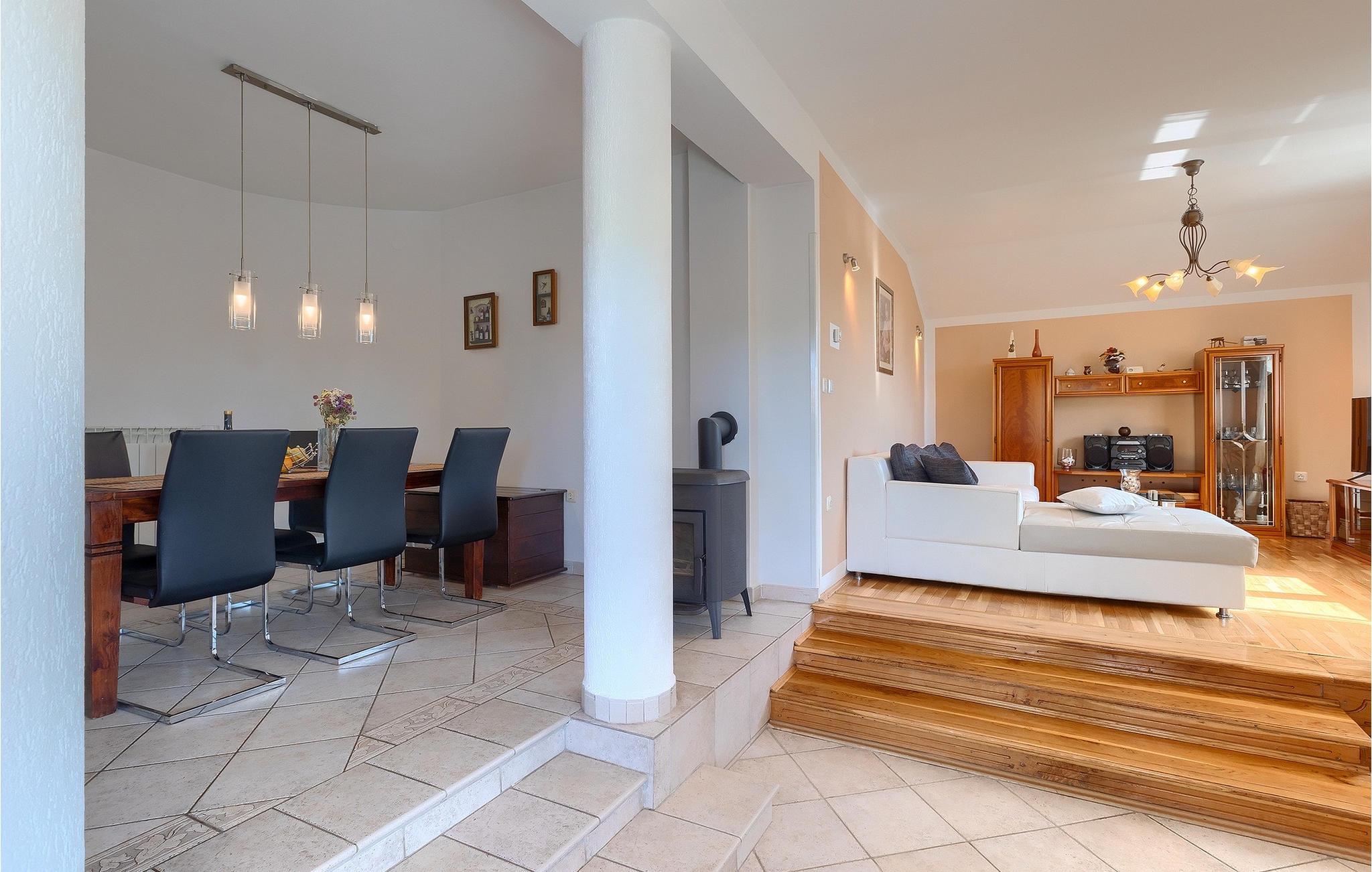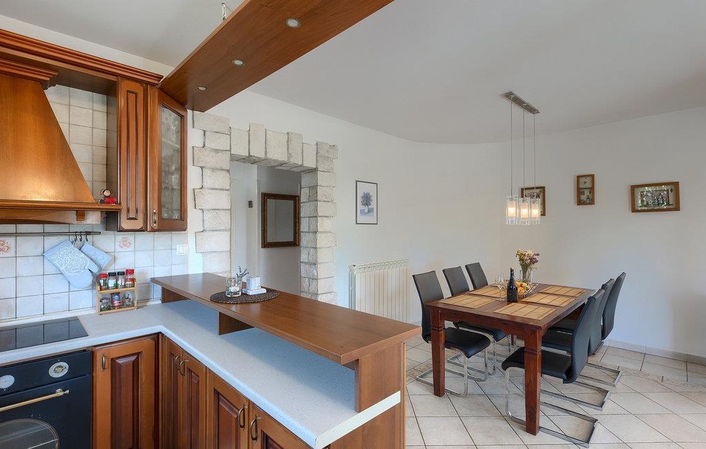 En traditionel taverna med pejs og badeværelse er tilgængelig i villaens stueetage. Værtshuset inviterer dig til at nyde mad og drikkevarer, så munter dine kære op med retter tilberedt under ovnen ("ispod peke"). Ovenpå er der 3 soveværelser, et badeværelse, køkken og spisestue samt en overdækket terrasse, hvor du kan slappe af og finde lidt skygge, mens du ser på den smukke natur. Køkkenet er fuldt udstyret, så du kan tilberede dine yndlingsretter eller lokale specialiteter.