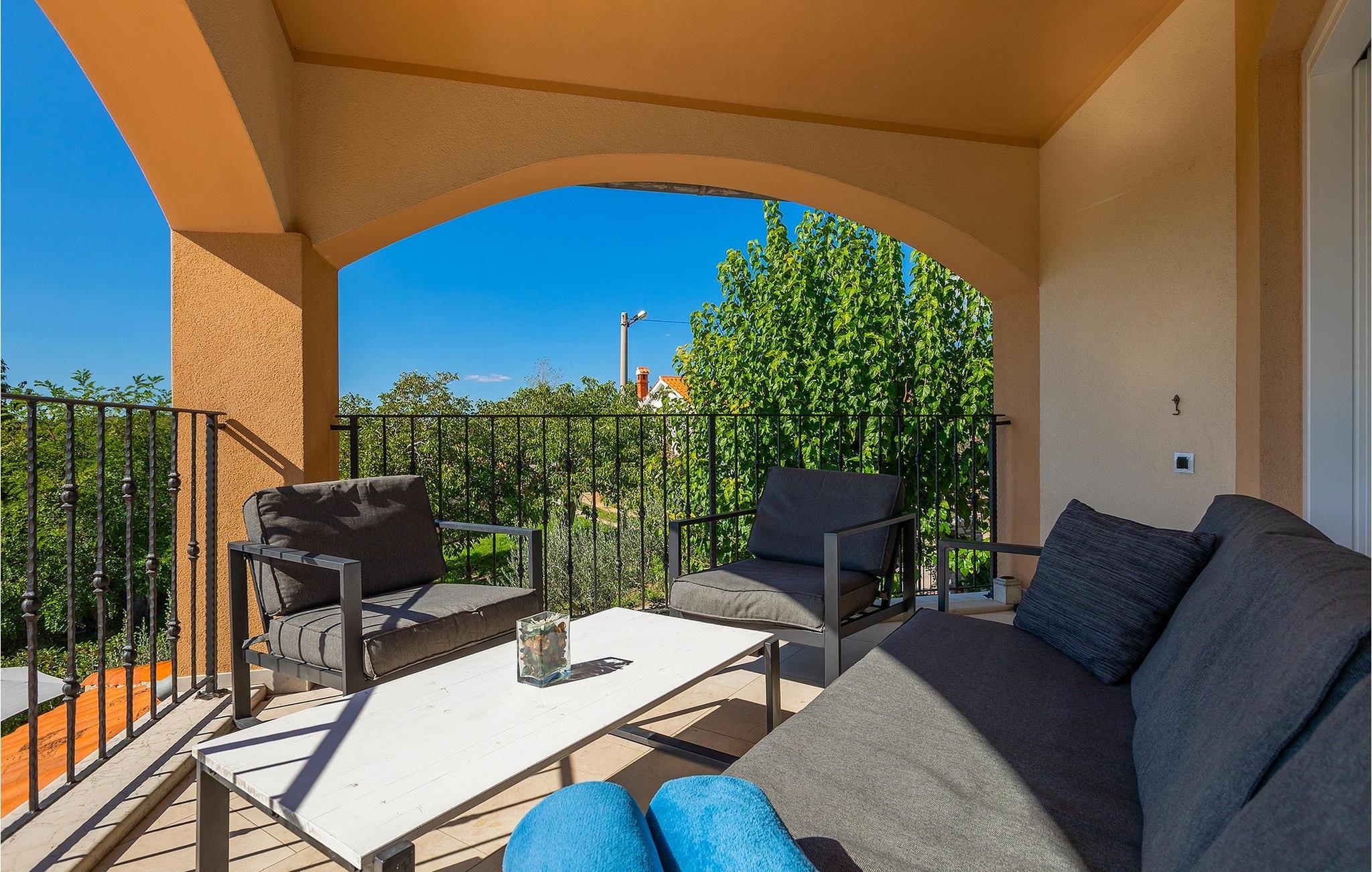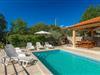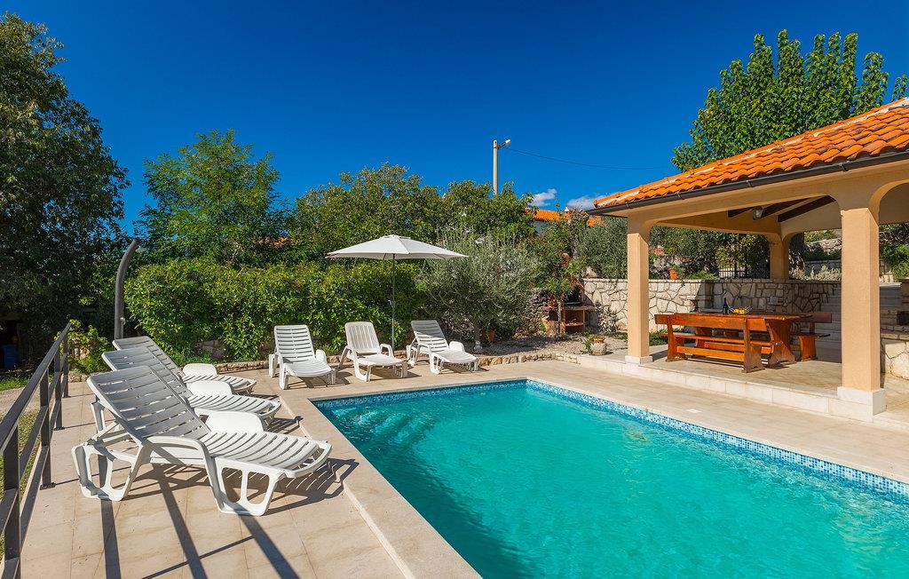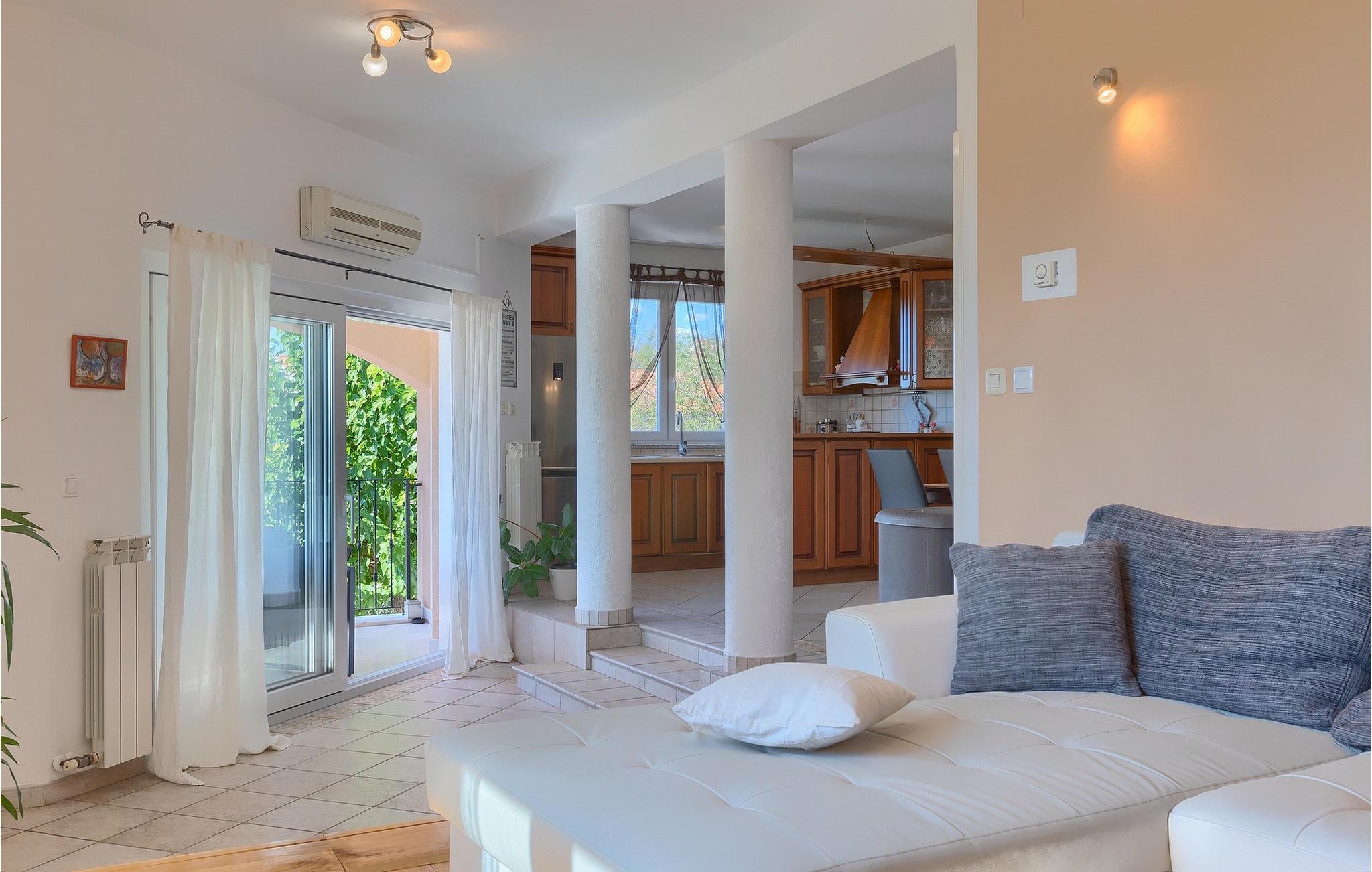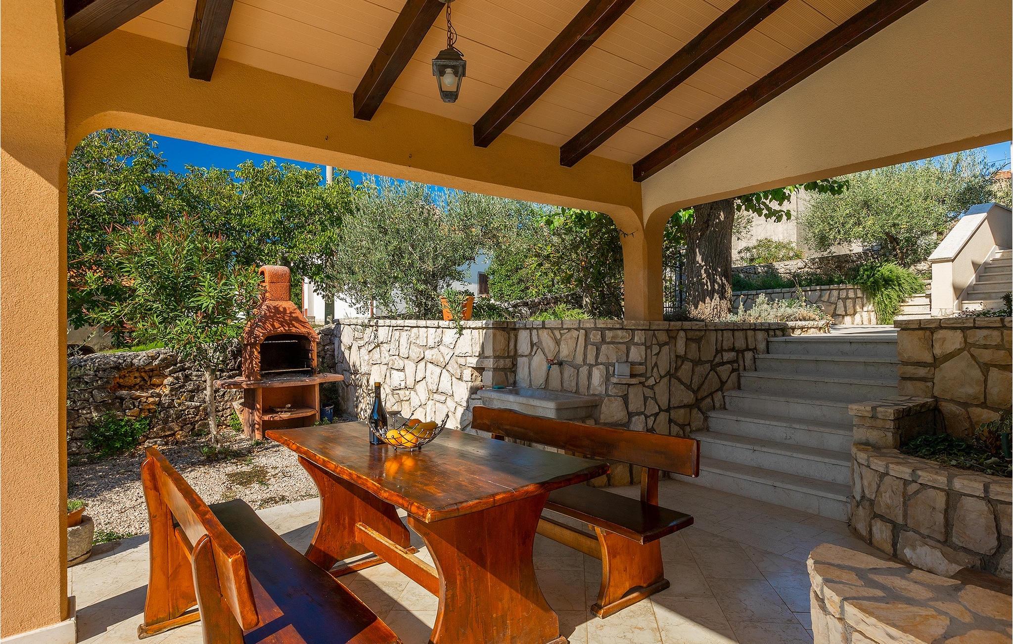 En traditionel taverna med pejs og badeværelse er tilgængelig i villaens stueetage. Værtshuset inviterer dig til at nyde mad og drikkevarer, så munter dine kære op med retter tilberedt under ovnen ("ispod peke"). Ovenpå er der 3 soveværelser, et badeværelse, køkken og spisestue samt en overdækket terrasse, hvor du kan slappe af og finde lidt skygge, mens du ser på den smukke natur. Køkkenet er fuldt udstyret, så du kan tilberede dine yndlingsretter eller lokale specialiteter.