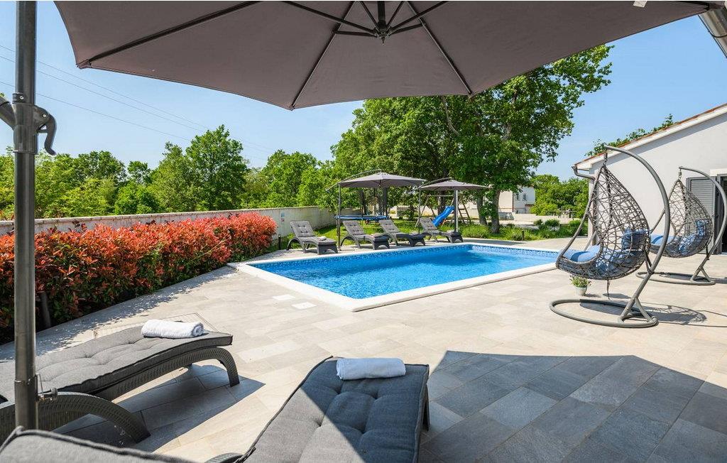Villa Nela er et smukt, fuldstændig renoveret hus beliggende i Becici, kun 3,5 km fra Labin og 8 km fra strandene i Rabac. Det er et ideelt sted for en ferie, fordi gæsterne vil nyde freden og roen, og alligevel kun skal bruge 10 minutters kørsel til byens centrum med alle bekvemmeligheder. Villa Nela er beliggende på en 3000 kvm fuldt indhegnet have og tilbyder sine gæster: en udendørs pool på 32 kvm, en fuldt udstyret værtshus på 70 kvm med et sommerkøkken og pejs, separat toilet, overdækket terrasse med udendørs spisebord, 6 liggestole, en legeplads og tre parkeringspladser. Villa Nela breder sig over 100 kvm og kan rumme 6 til 8 personer. Elegant indrettet stue, spisestue og moderne køkken har udgang til terrasse og er forbundet med solterrasse og pool, mens den anden del af huset har tre soveværelser, hver med dobbeltseng, aircondition og satellit-tv og to af dem med privat bad/toilet og et separat bad/toilet på gangen. Bemærk venligst, at denne ejendom ikke accepterer ungdomsgrupper eller polterabends. En ungdomsgruppe på denne ejendom er en gruppe bestående af personer på 26 år eller derunder. Book ikke denne ejendom, hvis du er en ungdomsgruppe eller et polterabend, da din reservation vil blive afvist efter booking, hvilket kan omfatte ved ankomst til ejendommen eller under dit ophold, og du vil ikke blive refunderet.