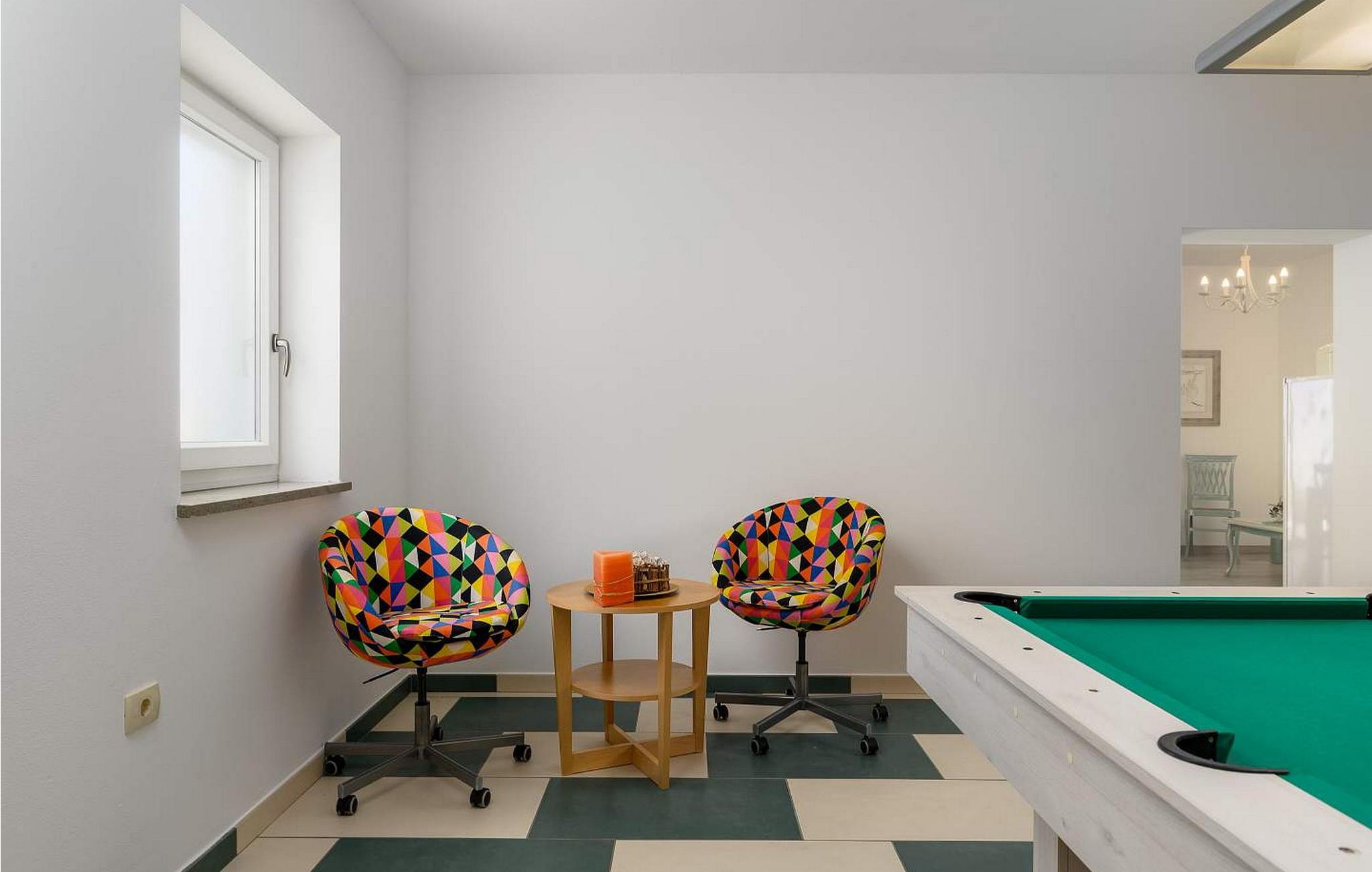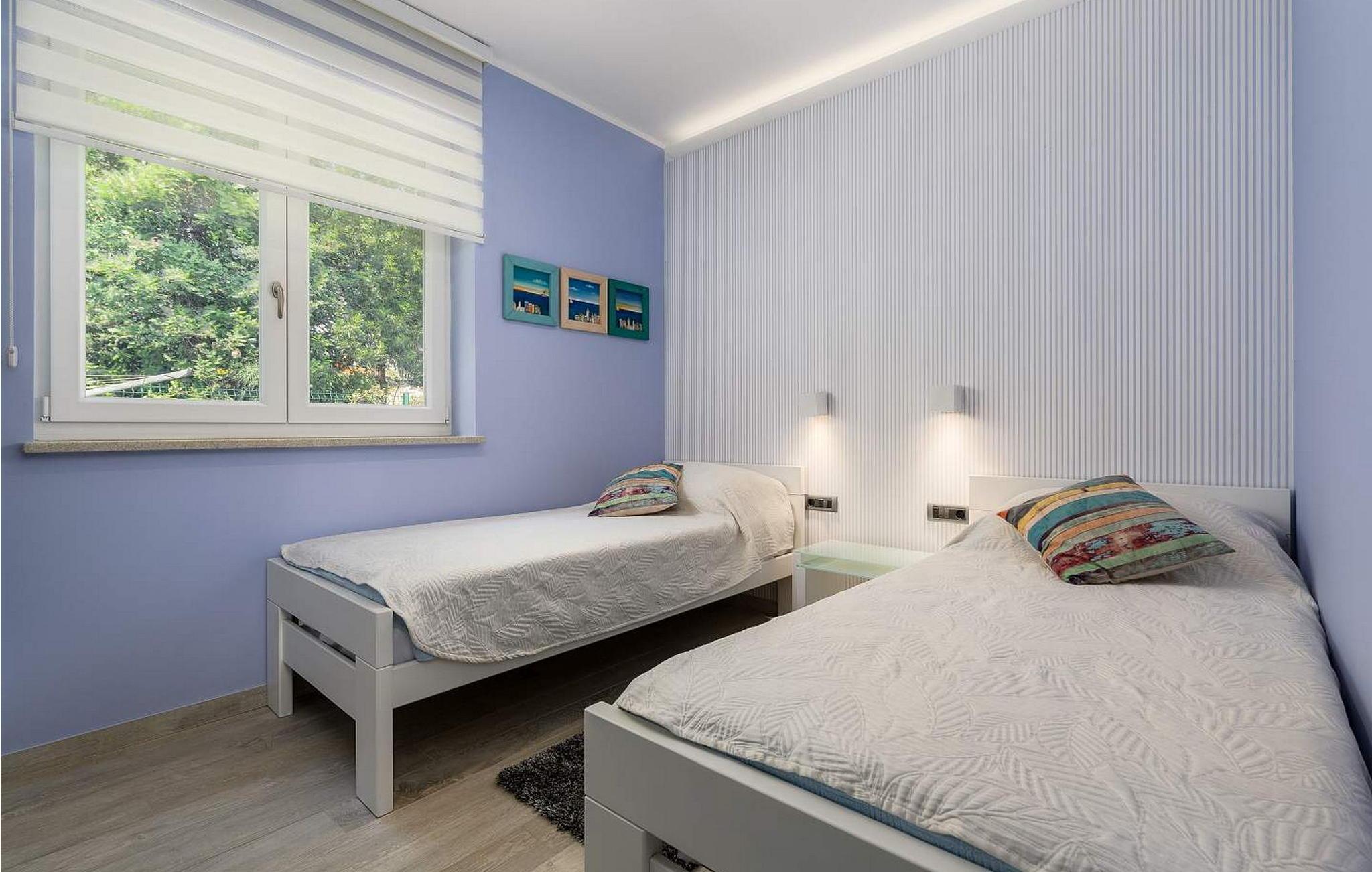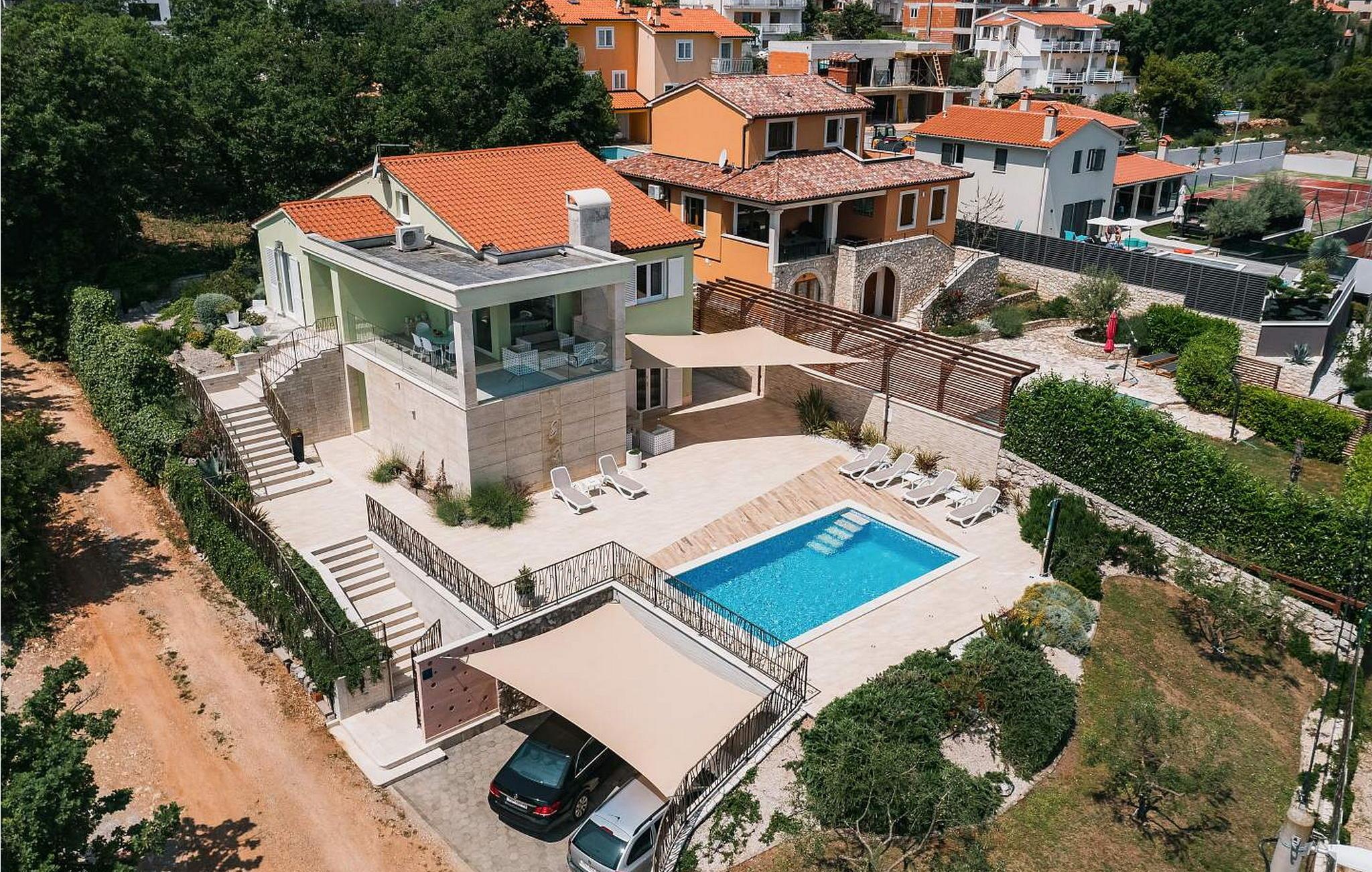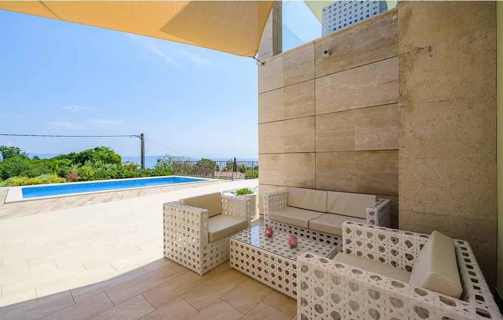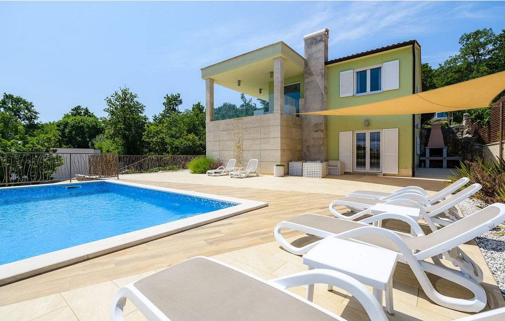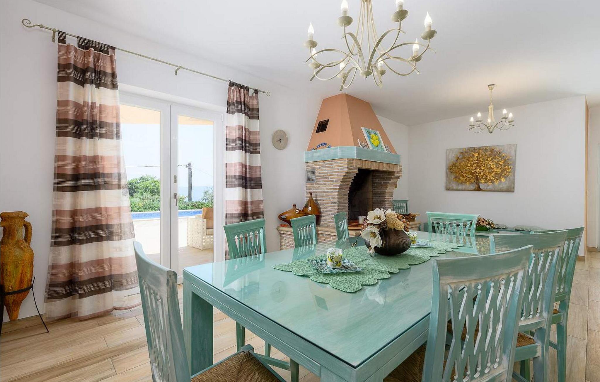 Villa Luce med udsigt over Kvarnerbugten ligger i landsbyen Drenje og kun 1 km fra havet. Husets beliggenhed giver gæsterne en vidunderlig udsigt over havet og øerne. Den nærmeste (vilde) strand ligger 15 minutters gang væk og er kun egnet for voksne. Der er en børnevenlig strand i landsbyen Ravni, ca. 3 km væk. Gæsterne har en 28 kvm stor swimmingpool, liggestole og siddepladser til deres rådighed. Villa Luce har en overflade på 200 kvm. Boligen ligger på første sal og består af stue, fuldt udstyret køkken, to soveværelser med dobbeltsenge, et af dem med eget badeværelse, et soveværelse med to enkeltsenge og et badeværelse på gangen. I husets stueetage er et lukket sommerkøkken, et badeværelse og et fitnessrum. Bemærk venligst, at denne ejendom ikke accepterer ungdomsgrupper eller polterabends. En ungdomsgruppe på denne ejendom er en gruppe bestående af personer på 26 år eller derunder. Book ikke denne ejendom, hvis du er en ungdomsgruppe eller et polterabend, da din reservation vil blive afvist efter booking, hvilket kan omfatte ved ankomst til ejendommen eller under dit ophold, og du vil ikke blive refunderet.