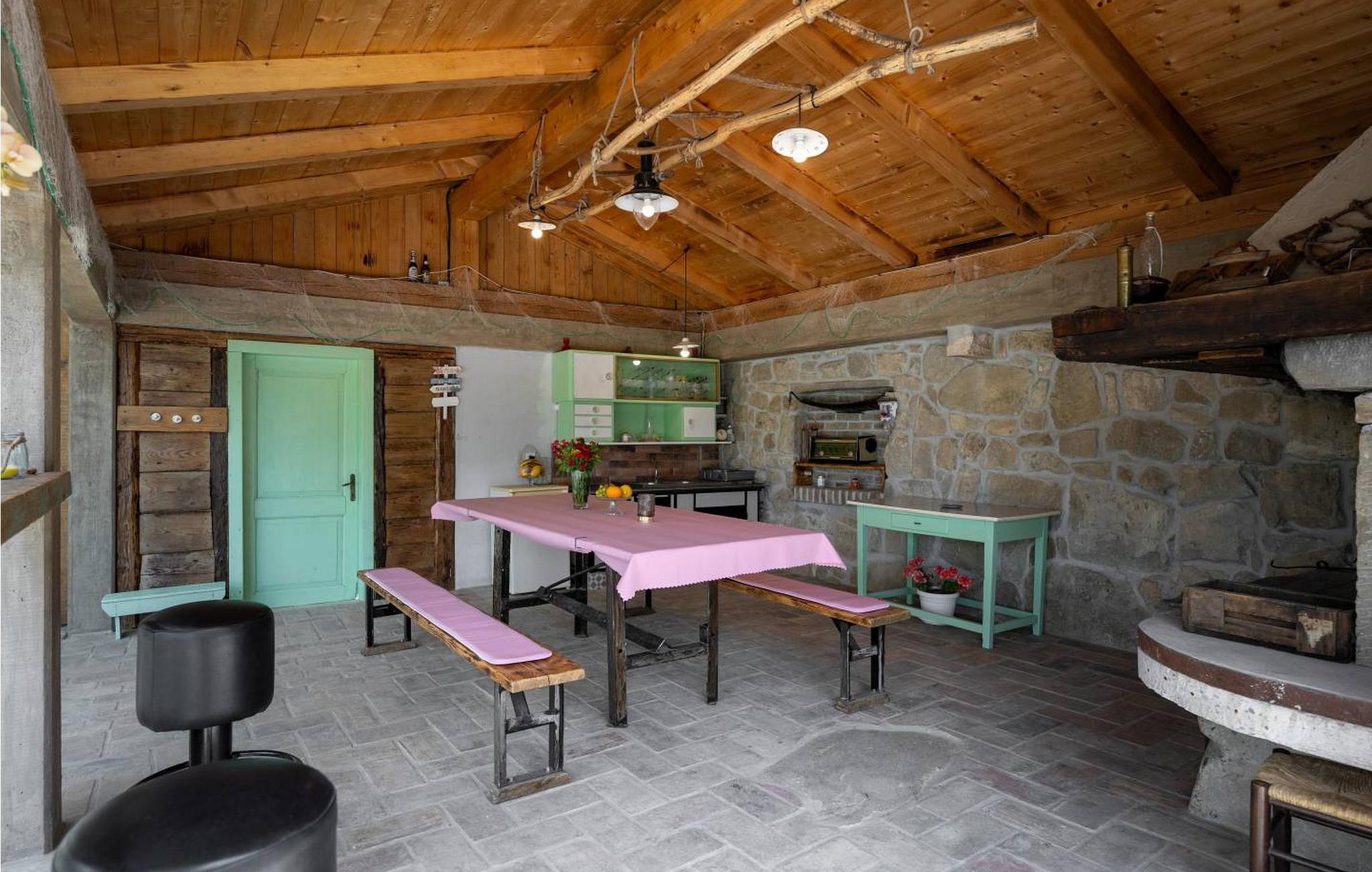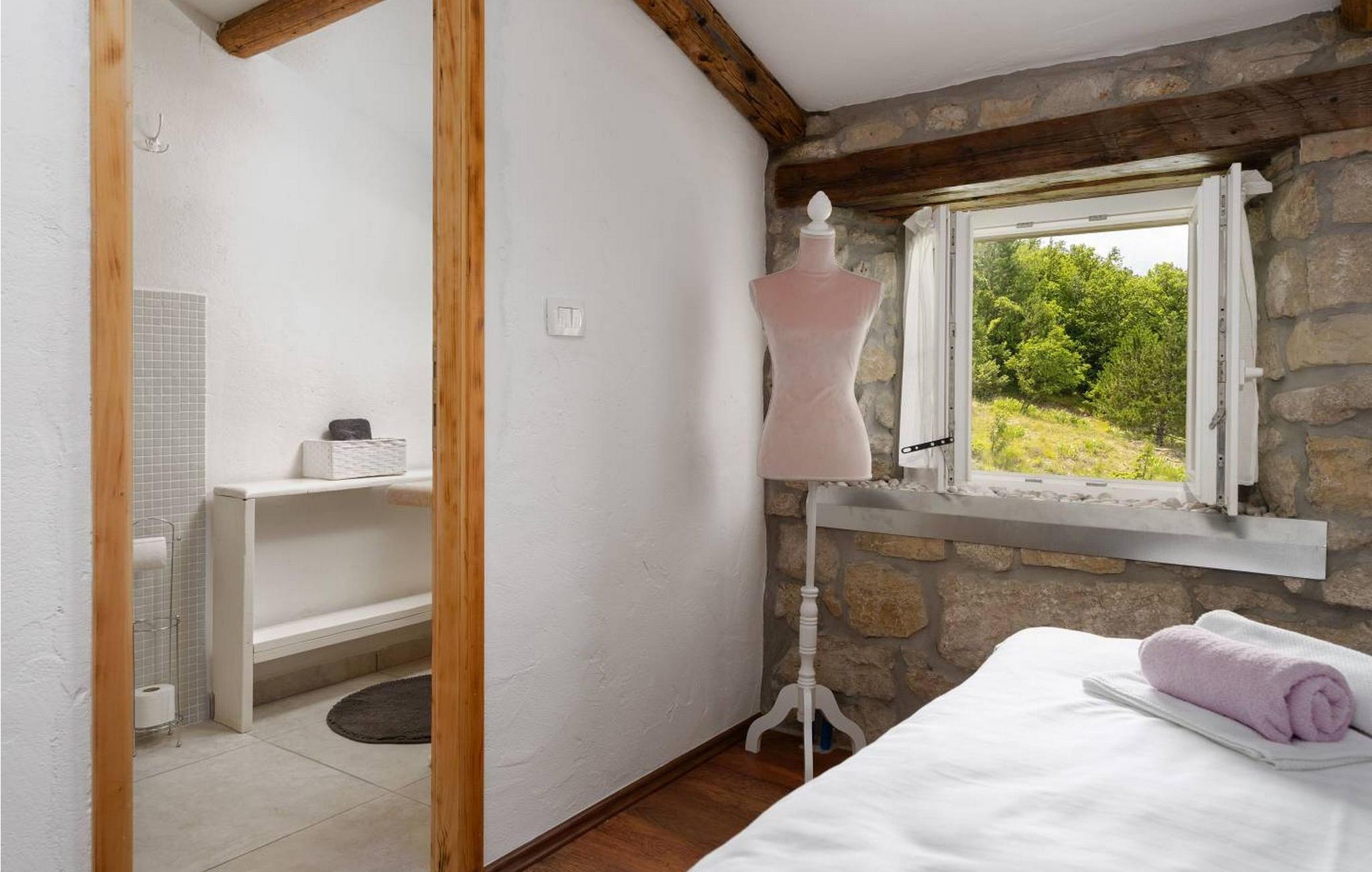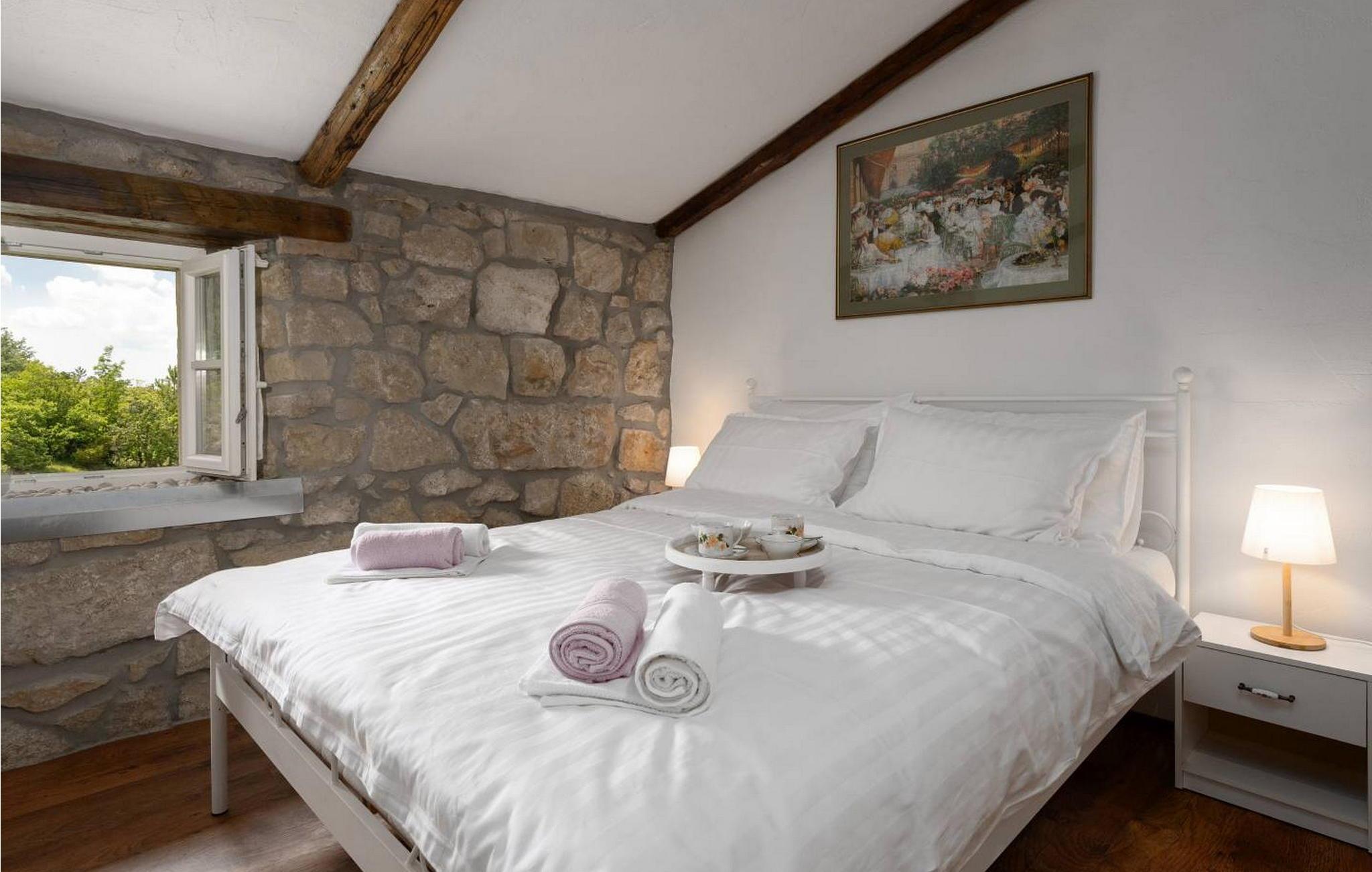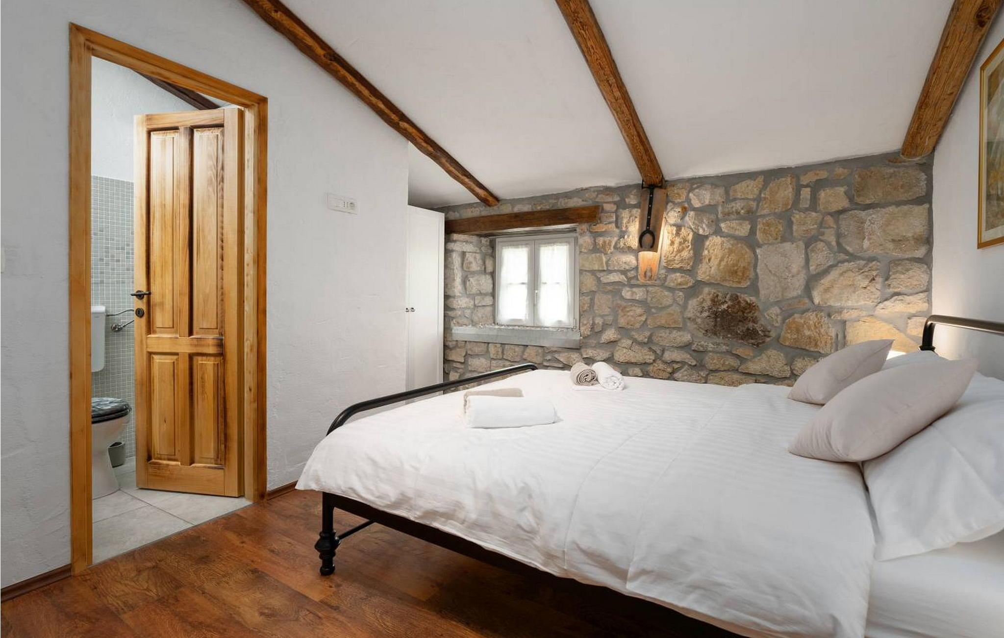 Casa Zamarija er et feriehus til 7 personer med swimmingpool i en meget rolig beliggenhed nær Labin. Dette hus er et typisk istrisk stenhus, renoveret med en masse opmærksomhed og kreativitet, og hver detalje er et rigtigt lille kunstværk. Labin ligger kun 3 km derfra, mens Rabac og talrige velholdte strande ligger 6 km derfra. I den rummelige have kan gæsterne nyde en swimmingpool med hydromassage og børnebassin, liggestole til solbadning, et overdækket sommerkøkken med brændeovn, en udendørs bruser og flere parkeringspladser. Huset er omgivet af grønne områder og er ideelt til en afslappende ferie i absolut fred. Casa Zamarija består af en stueetage, hvor der er en stue, en spisestue, et fuldt udstyret køkken og et badeværelse. På husets første sal er der tre soveværelser med hvert sit badeværelse. Klimaanlægget til værelserne på første sal er placeret på gangen. To værelser har en dobbeltseng og et værelse har tre senge. Bemærk venligst, at denne ejendom ikke accepterer ungdomsgrupper eller polterabends. En ungdomsgruppe på denne ejendom er en gruppe bestående af personer på 26 år eller derunder. Book ikke denne ejendom, hvis du er en ungdomsgruppe eller et polterabend, da din reservation vil blive afvist efter booking, hvilket kan omfatte ved ankomst til ejendommen eller under dit ophold, og du vil ikke blive refunderet.